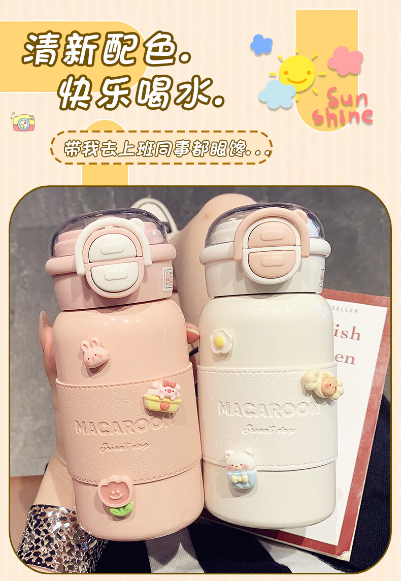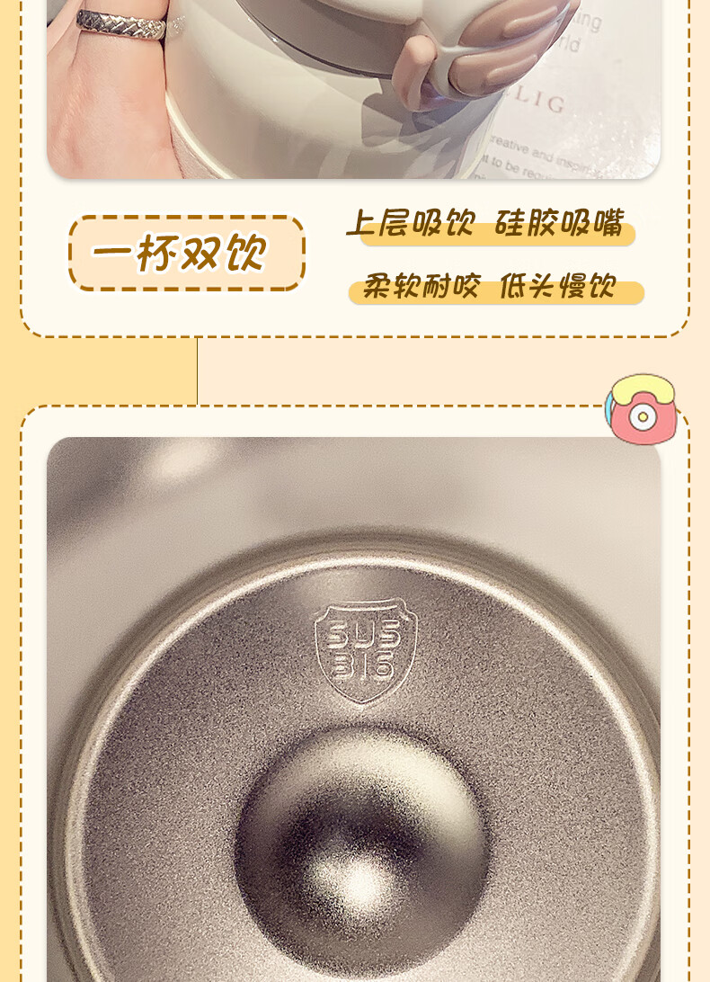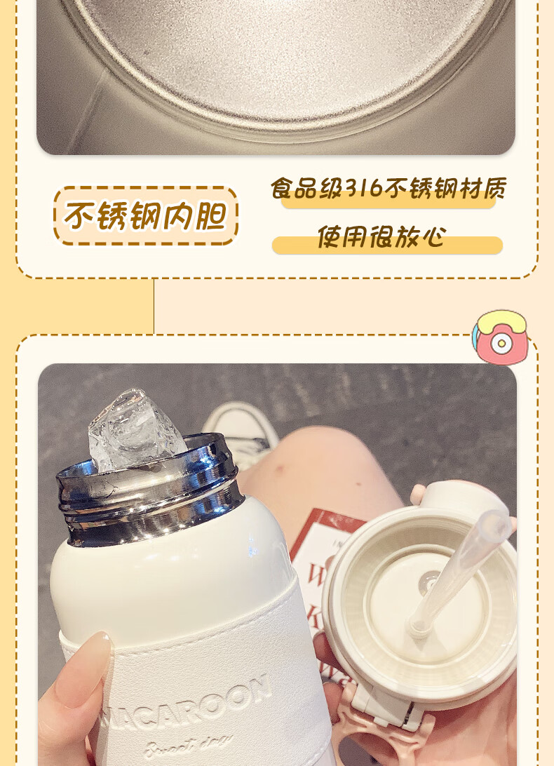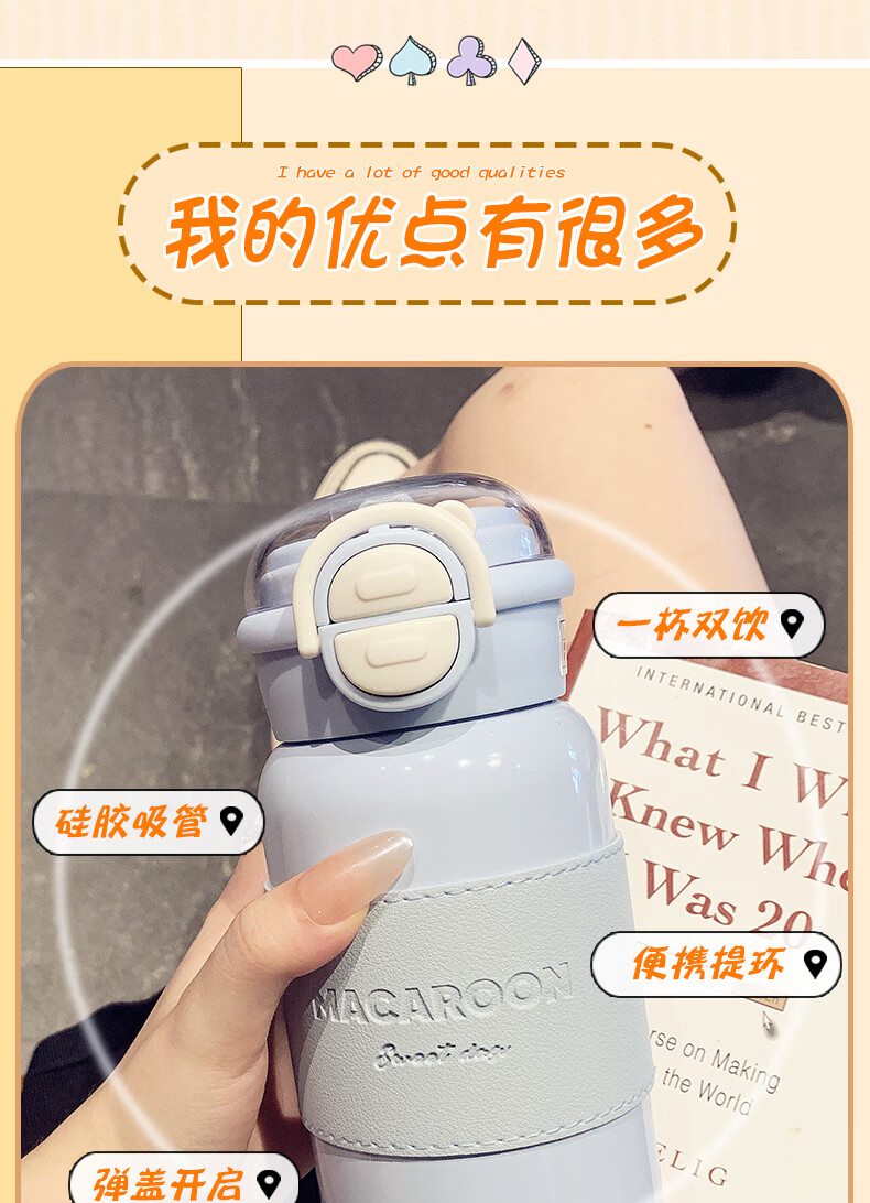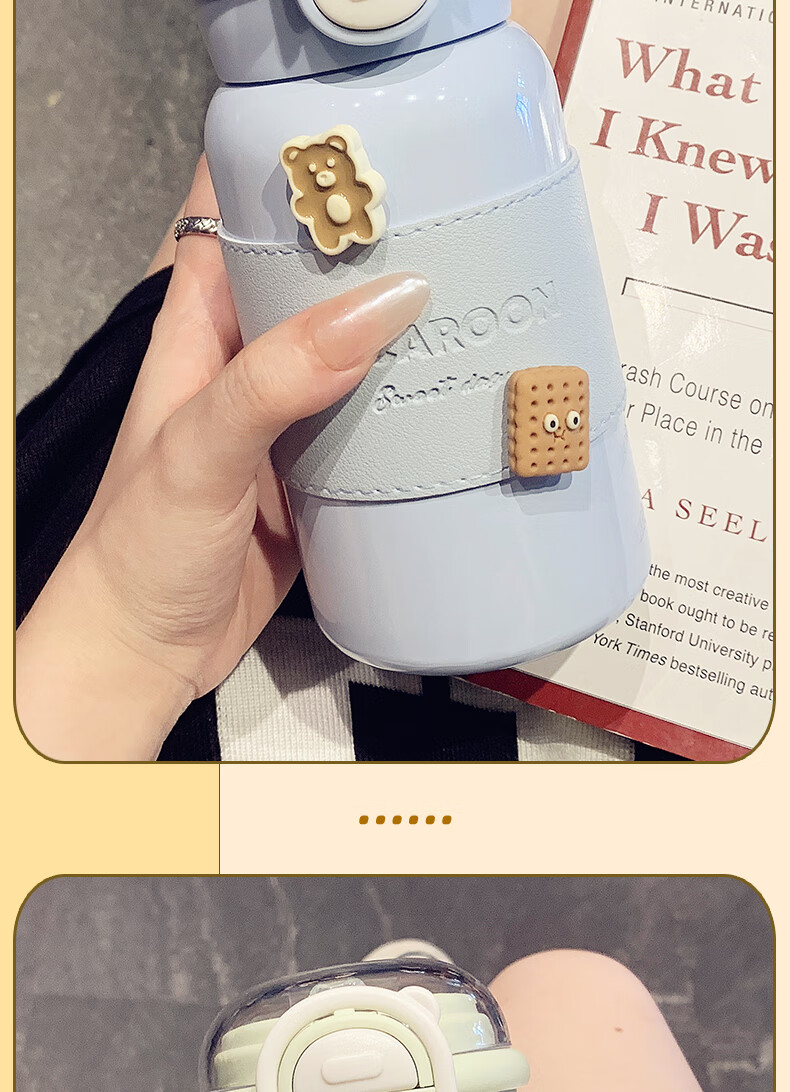 膳魔师(THERMOS)简约316保温杯女生带吸管高颜值双饮水杯2026新款学生便携随行杯 蓝色500ml-送10颗随机公仔贴+吸管刷+杯刷
