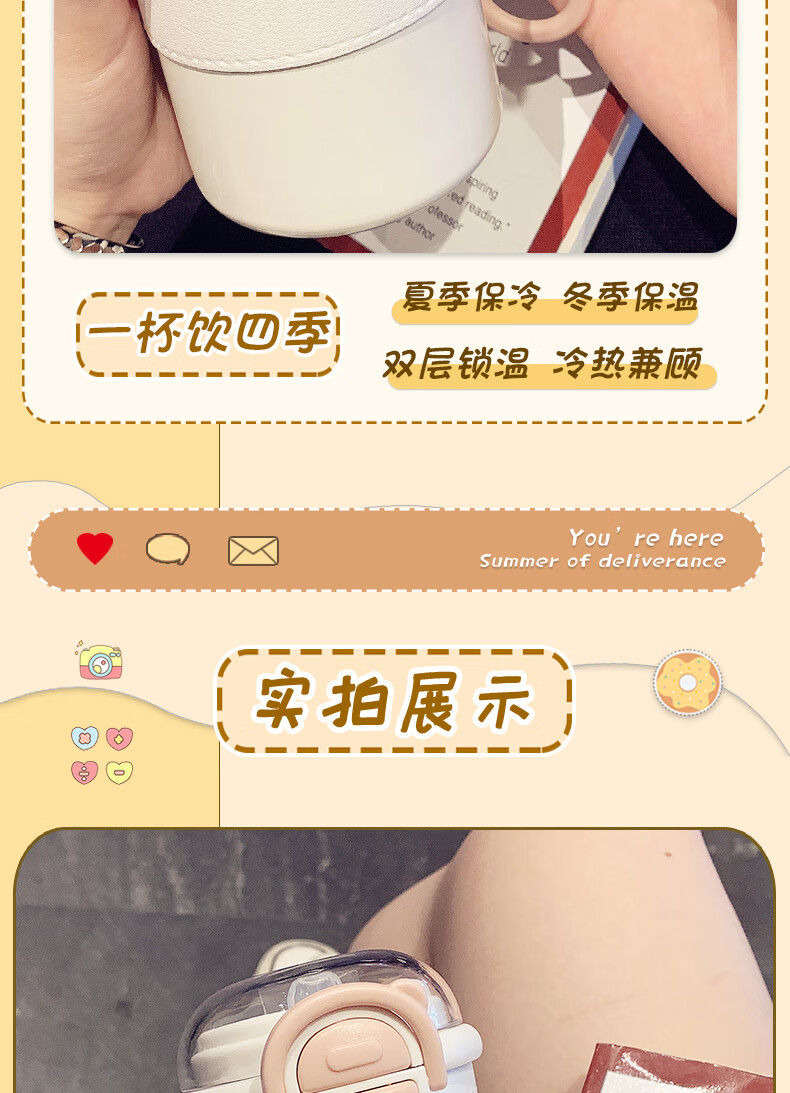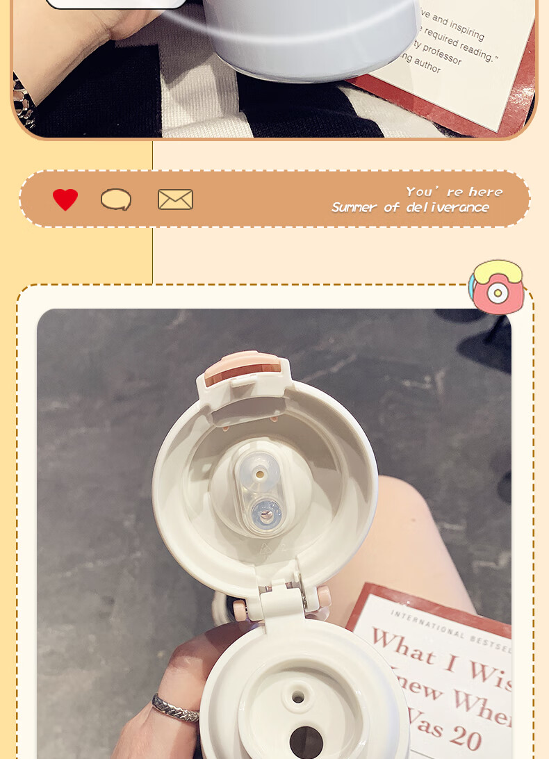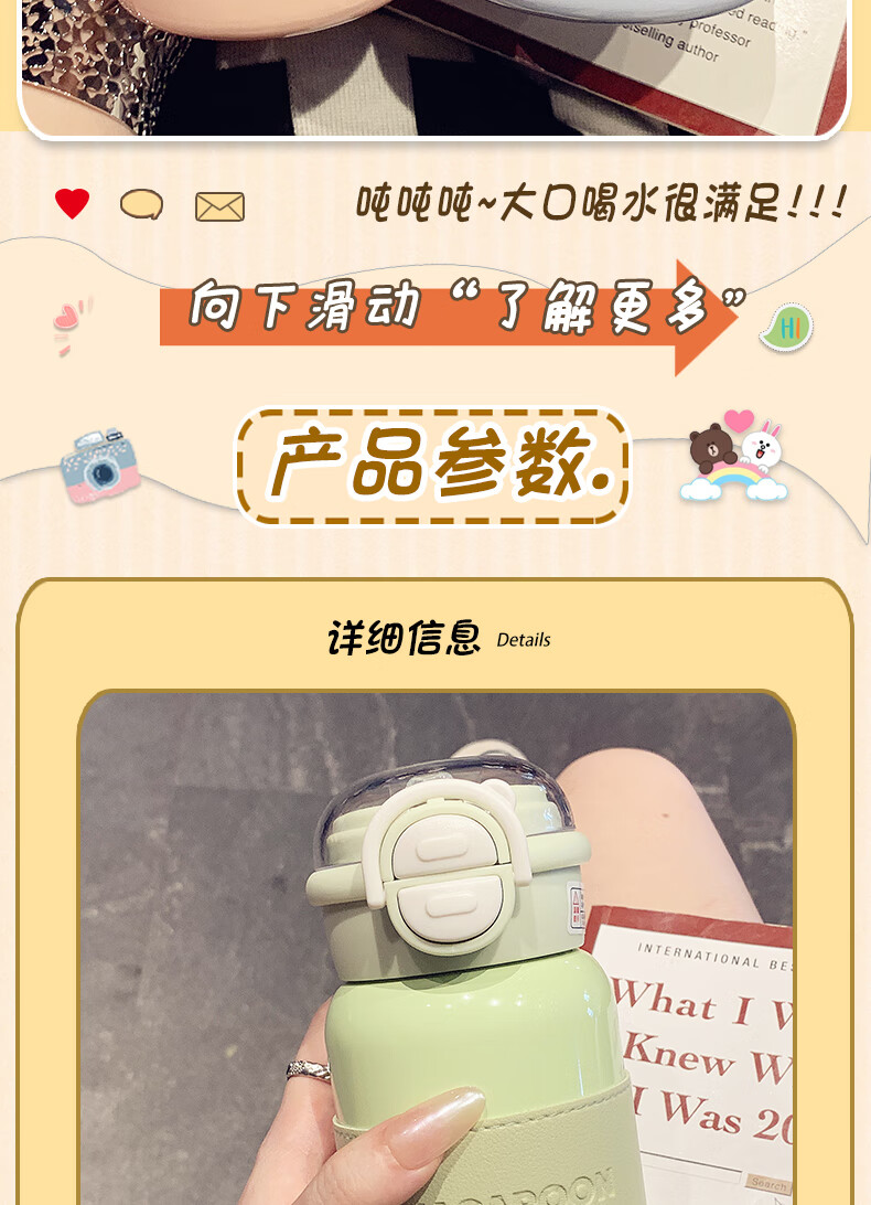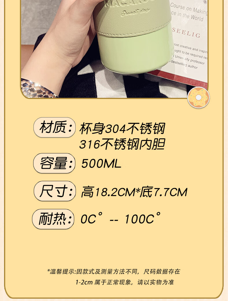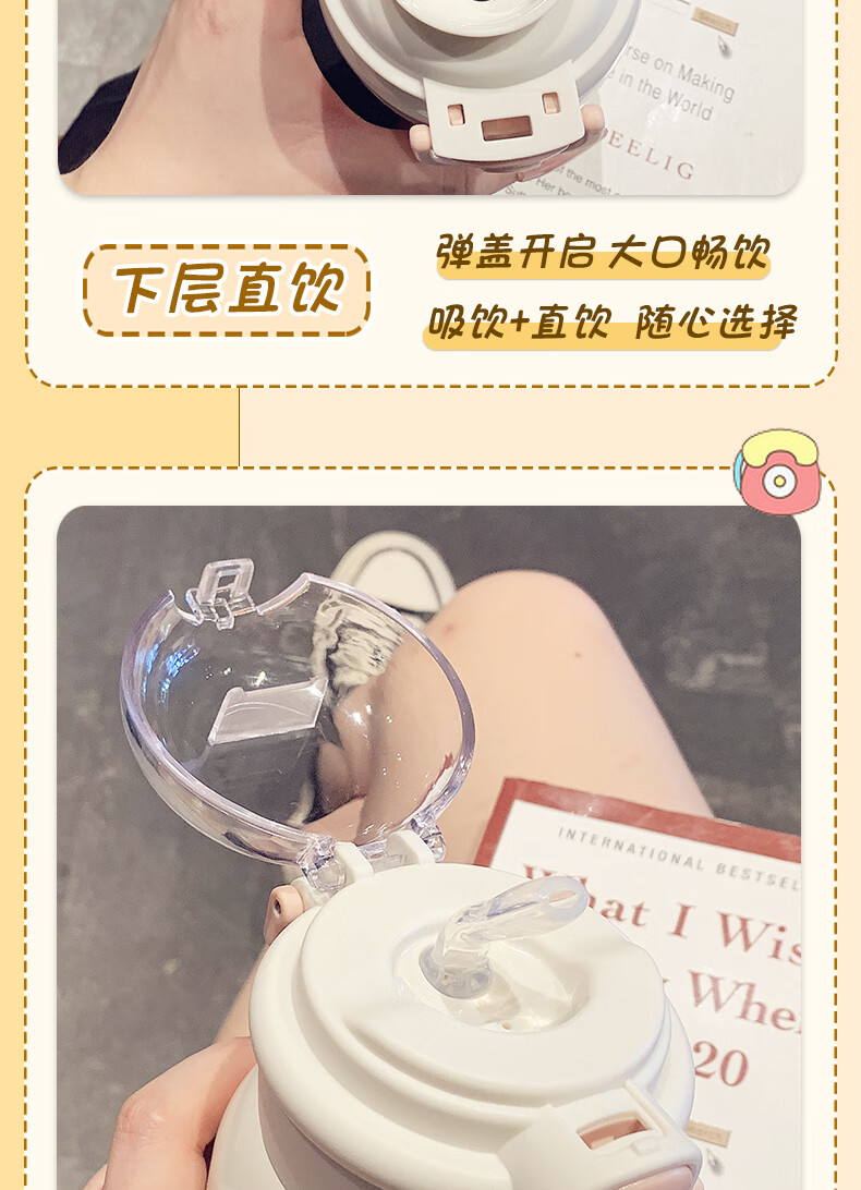 膳魔师(THERMOS)简约316保温杯女生带吸管高颜值双饮水杯2026新款学生便携随行杯 蓝色500ml-送10颗随机公仔贴+吸管刷+杯刷