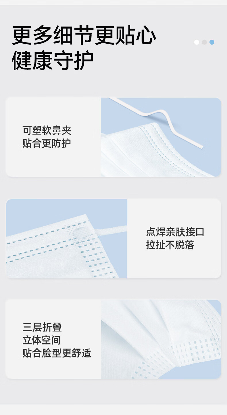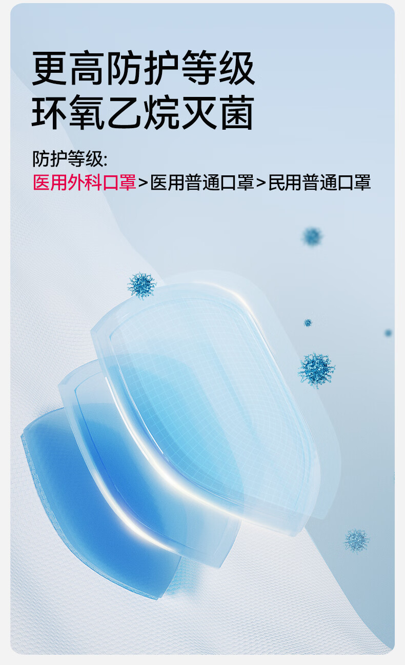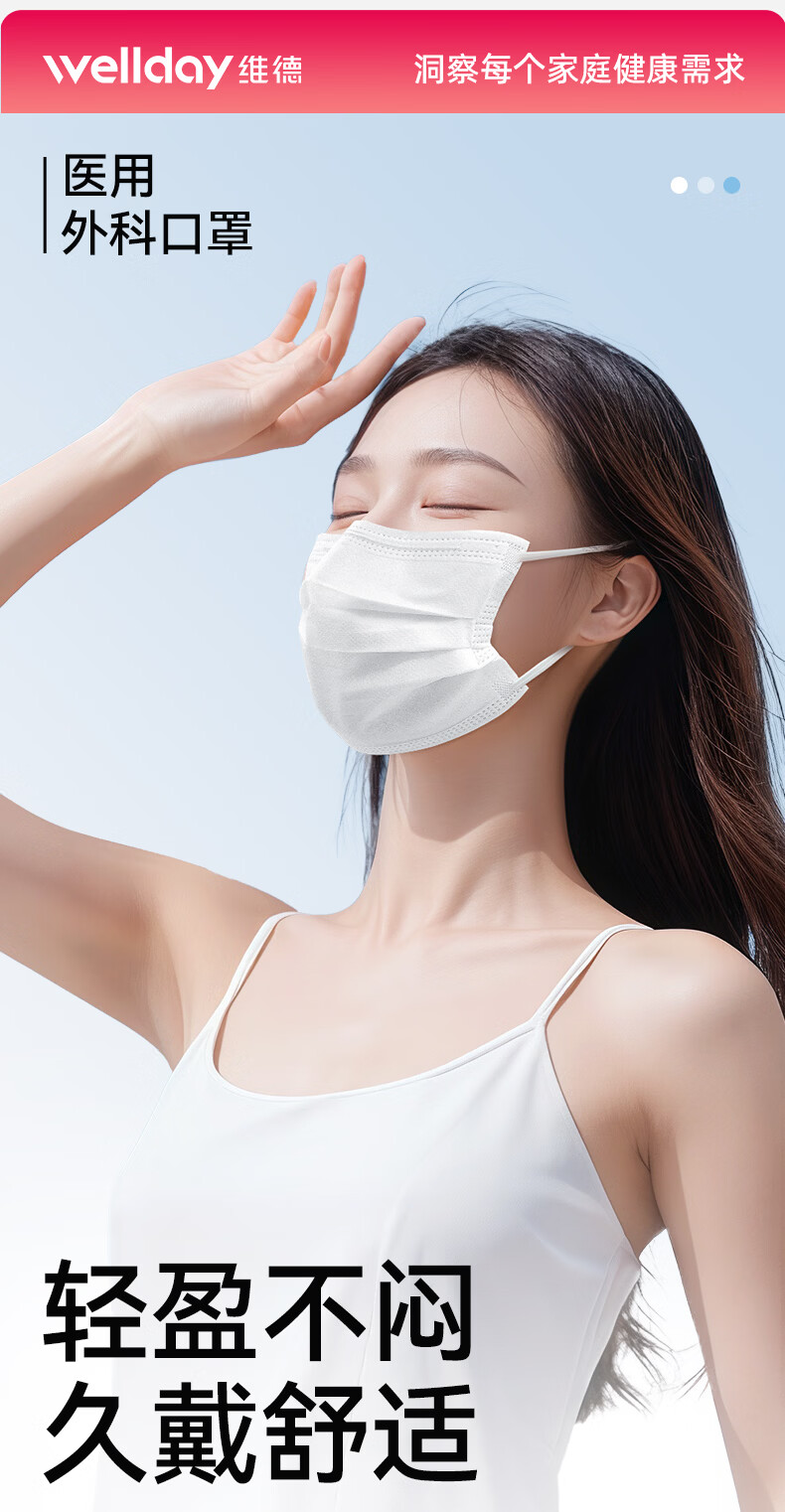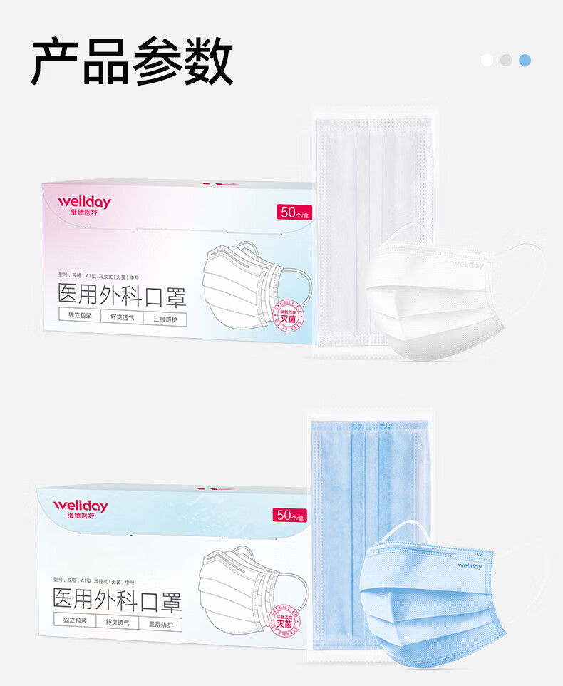 维德(WELLDAY)一次性医用外科口罩三层防病菌防花粉尘雾霾透气独立包装蓝白色 【外科灭菌】白色1盒50只
