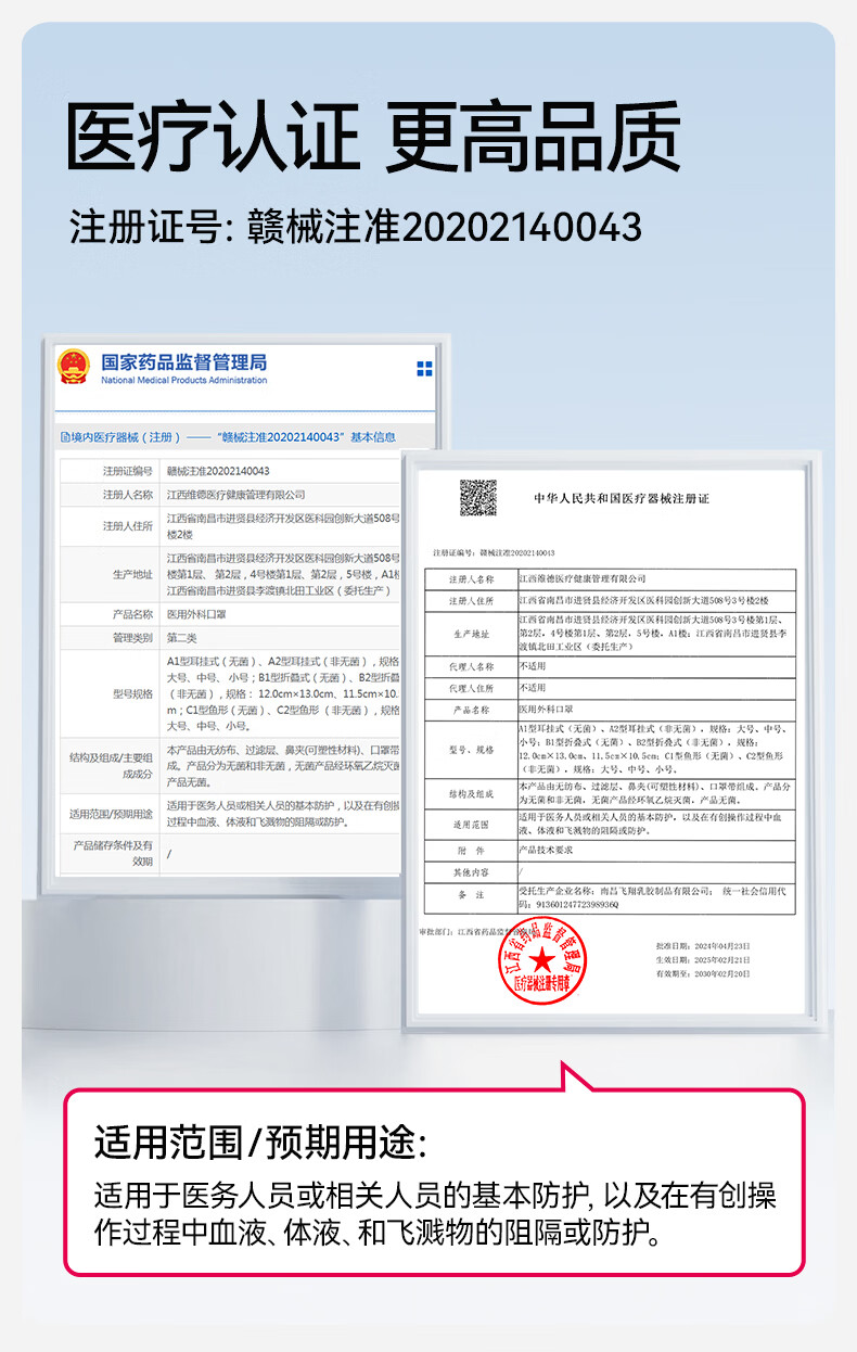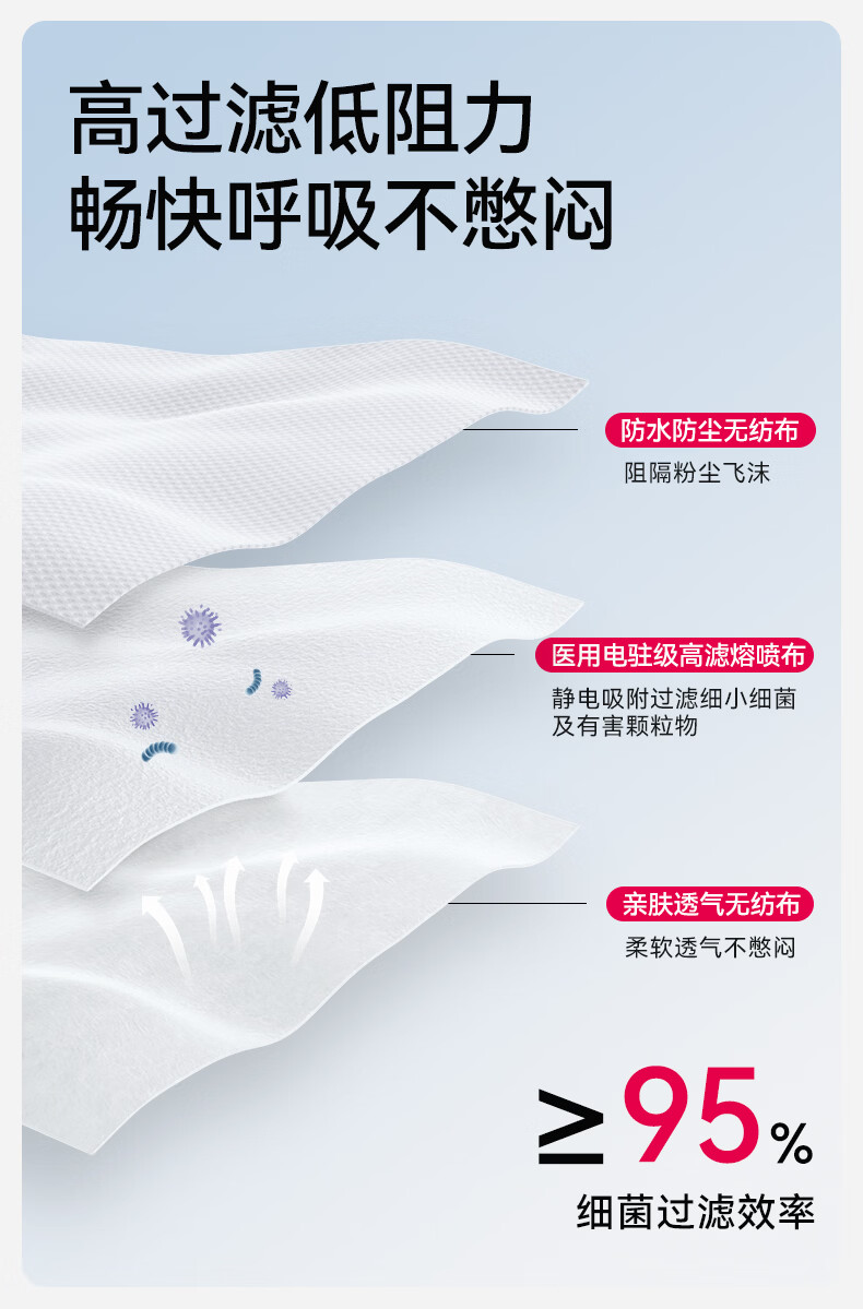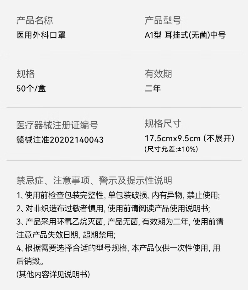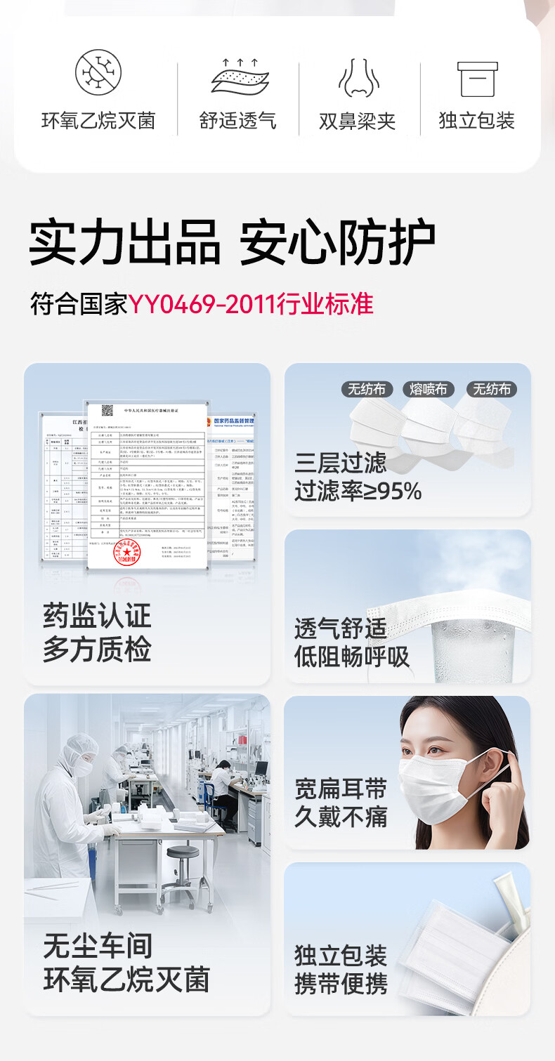 维德(WELLDAY)一次性医用外科口罩三层防病菌防花粉尘雾霾透气独立包装蓝白色 【外科灭菌】白色1盒50只
