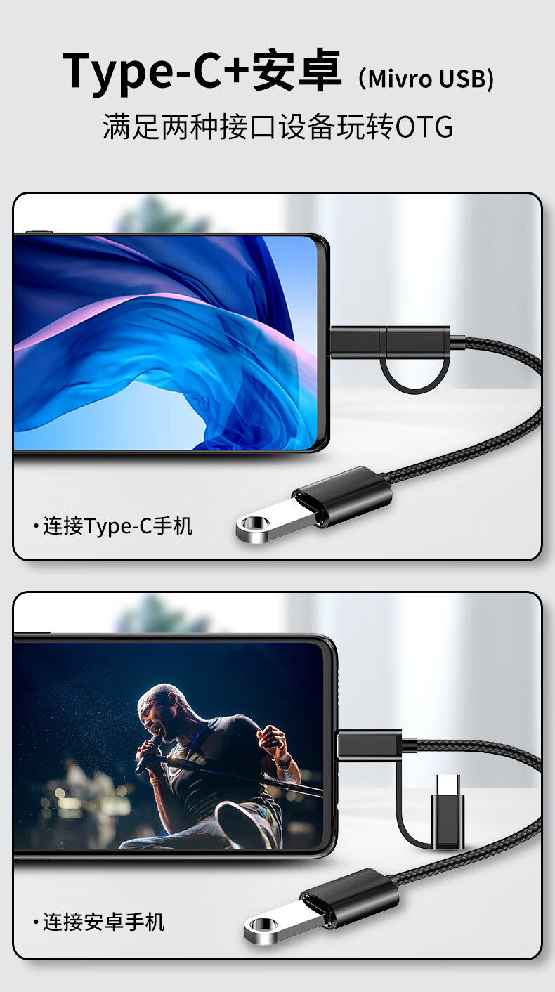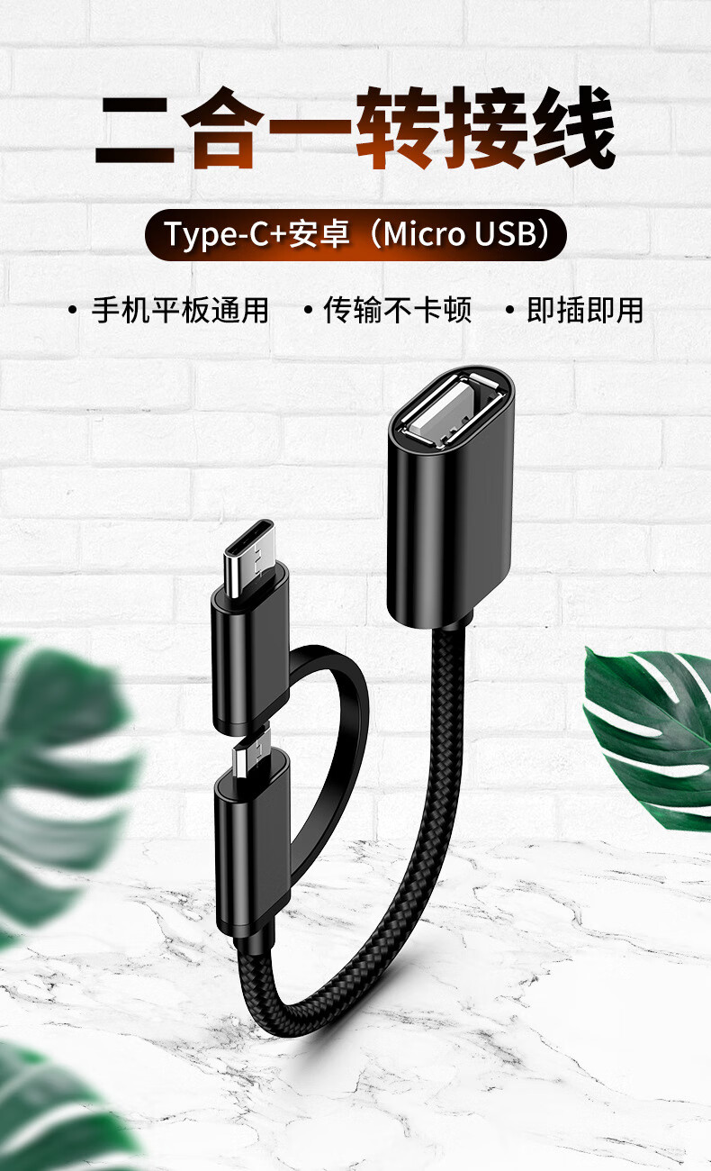 mijv 转接头OTG优盘连接线安卓type-c二合一适用华为手机u盘转接器oppo小米vivo荣耀 Type-c OTG读卡器【可读TF/SD/优盘】