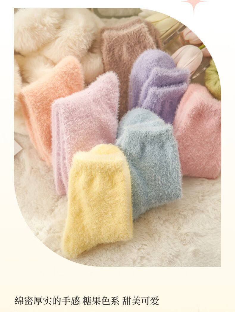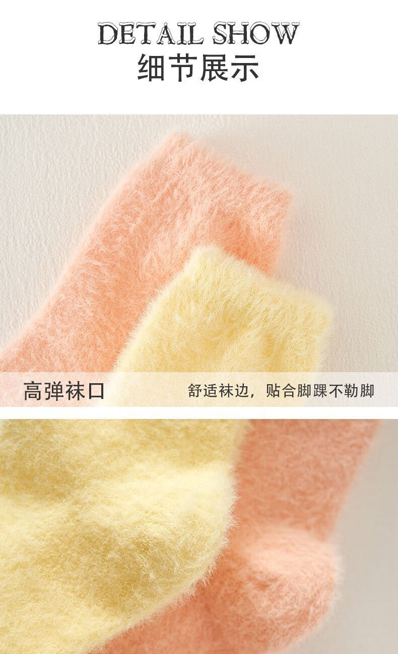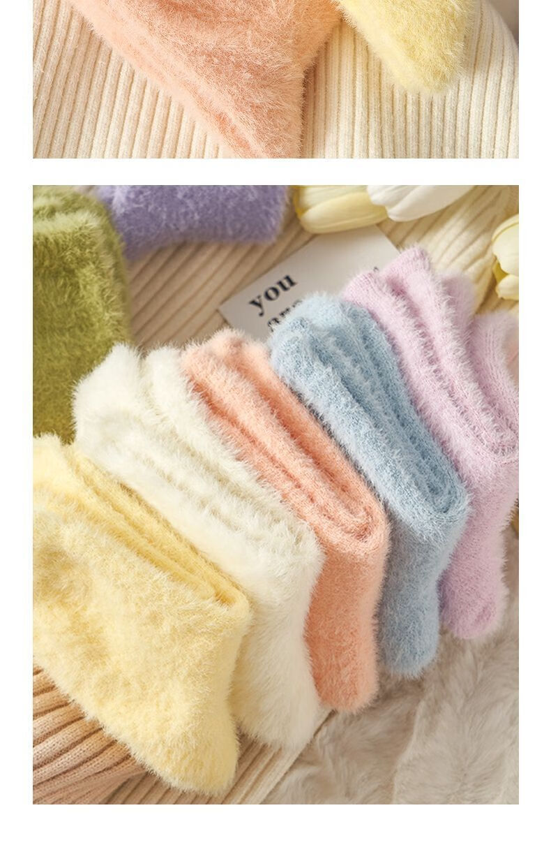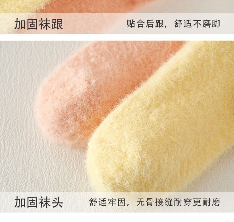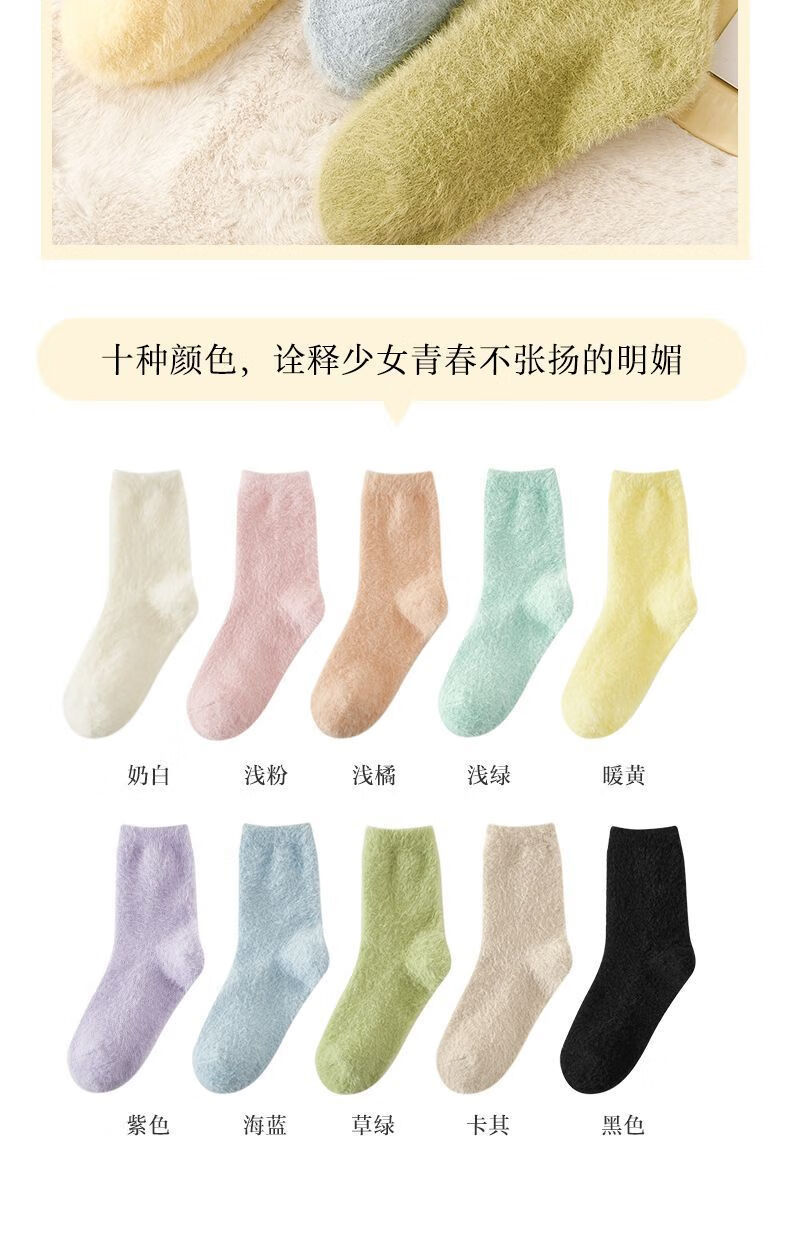 雅鹿月子袜子女中筒秋冬季加厚加绒保暖居家睡眠水貂绒地板袜 卡其+麦色+藏蓝+浅灰+浅绿 5双 均码