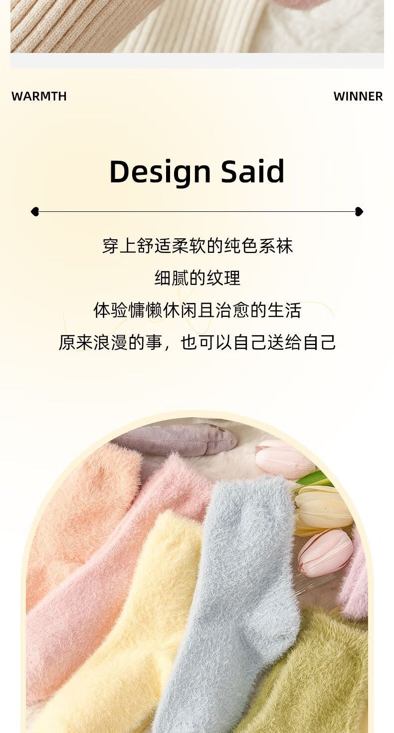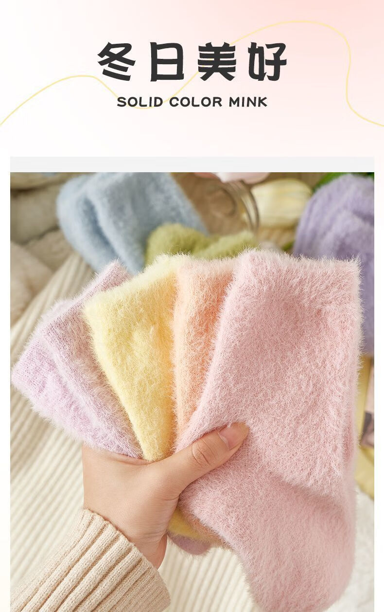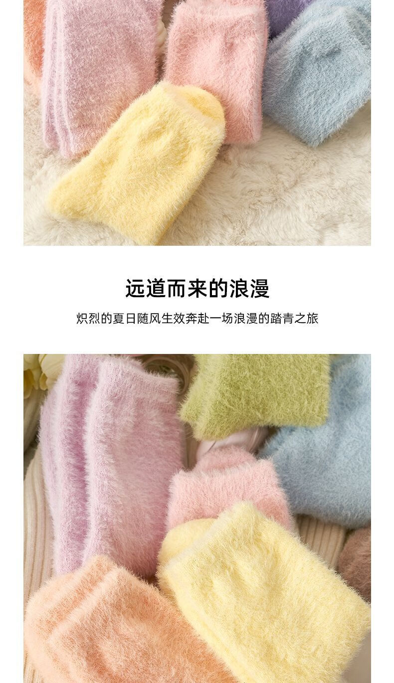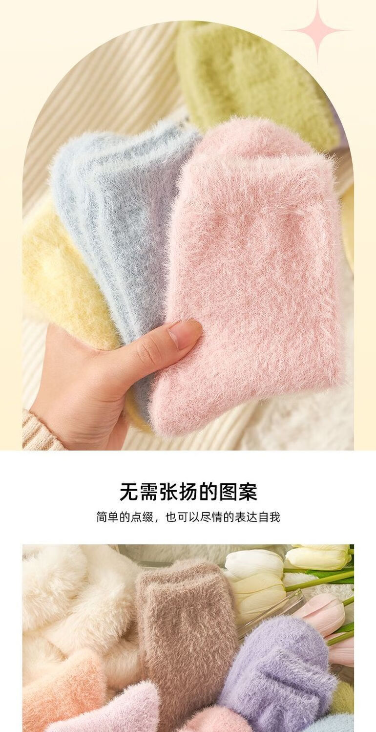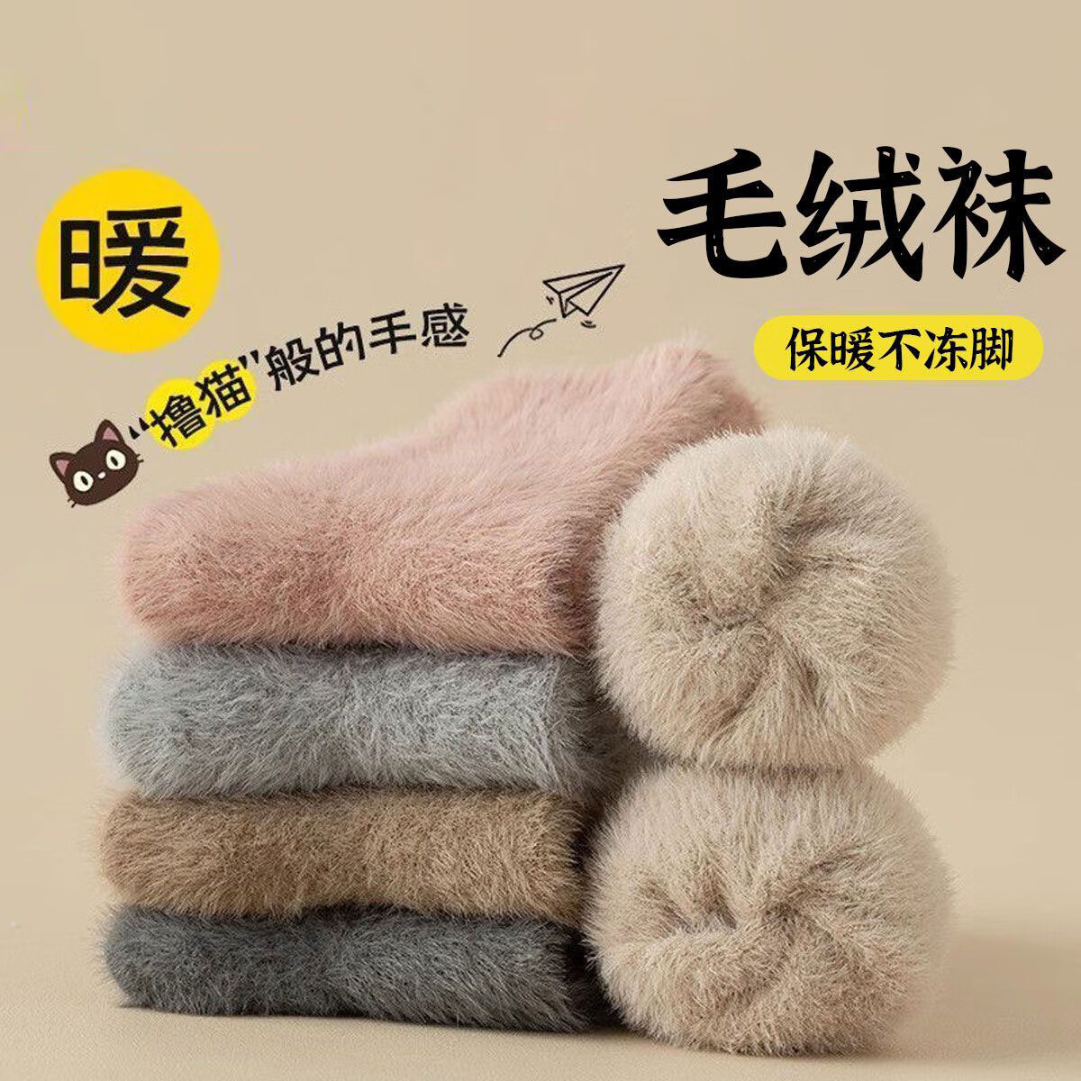 雅鹿月子袜子女中筒秋冬季加厚加绒保暖居家睡眠水貂绒地板袜 卡其+麦色+藏蓝+浅灰+浅绿 5双 均码