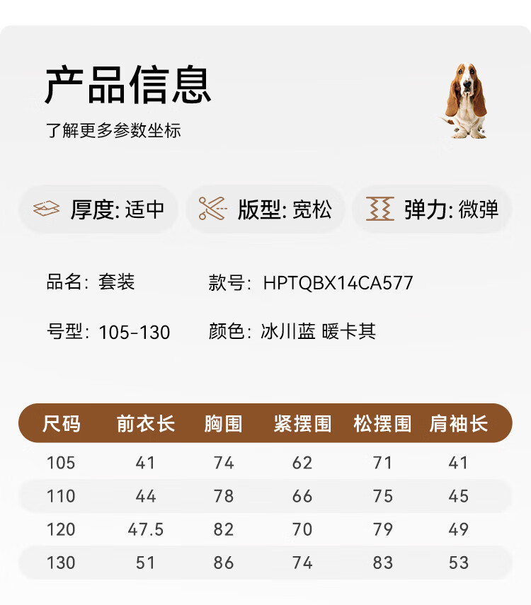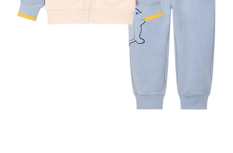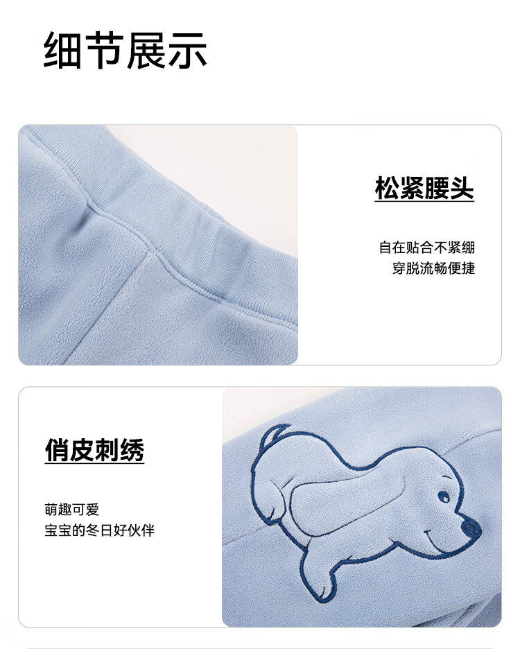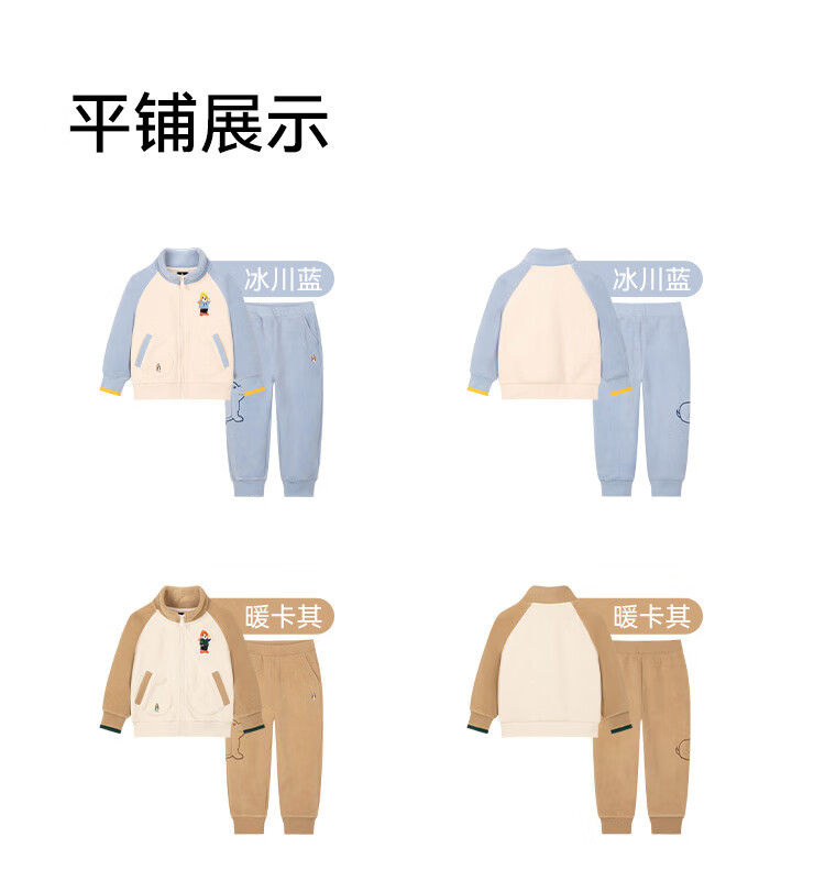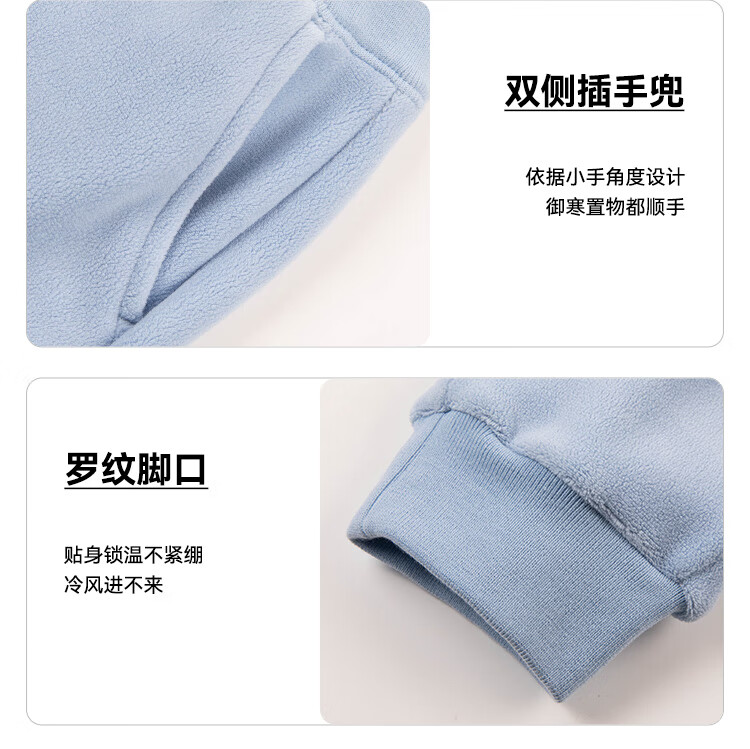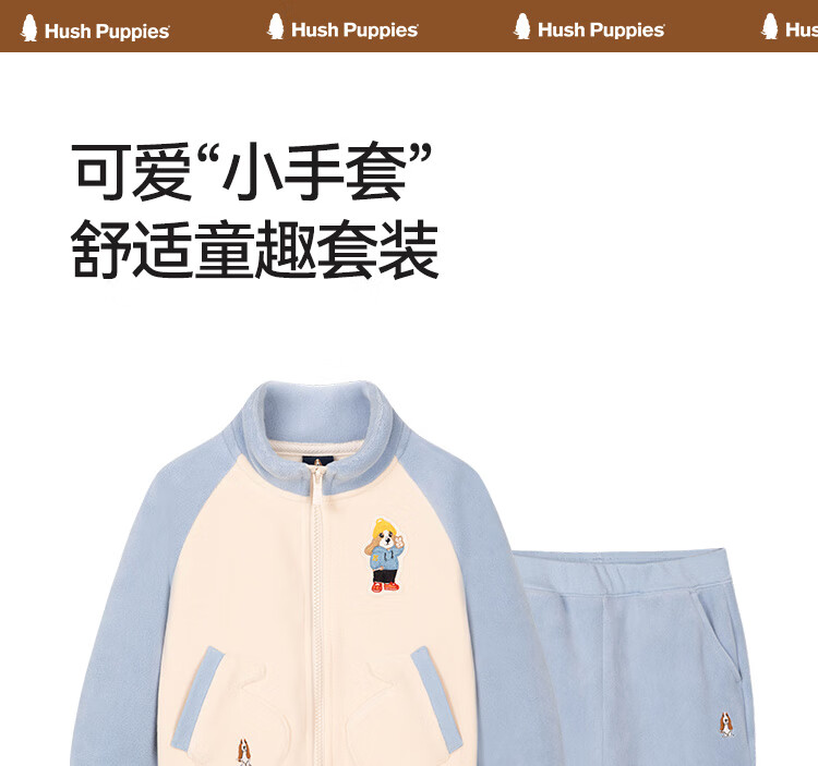 暇步士(Hush Puppies)童装儿童男小童2025秋季新款复合超柔短绒舒适童趣套装 冰川蓝 105 cm