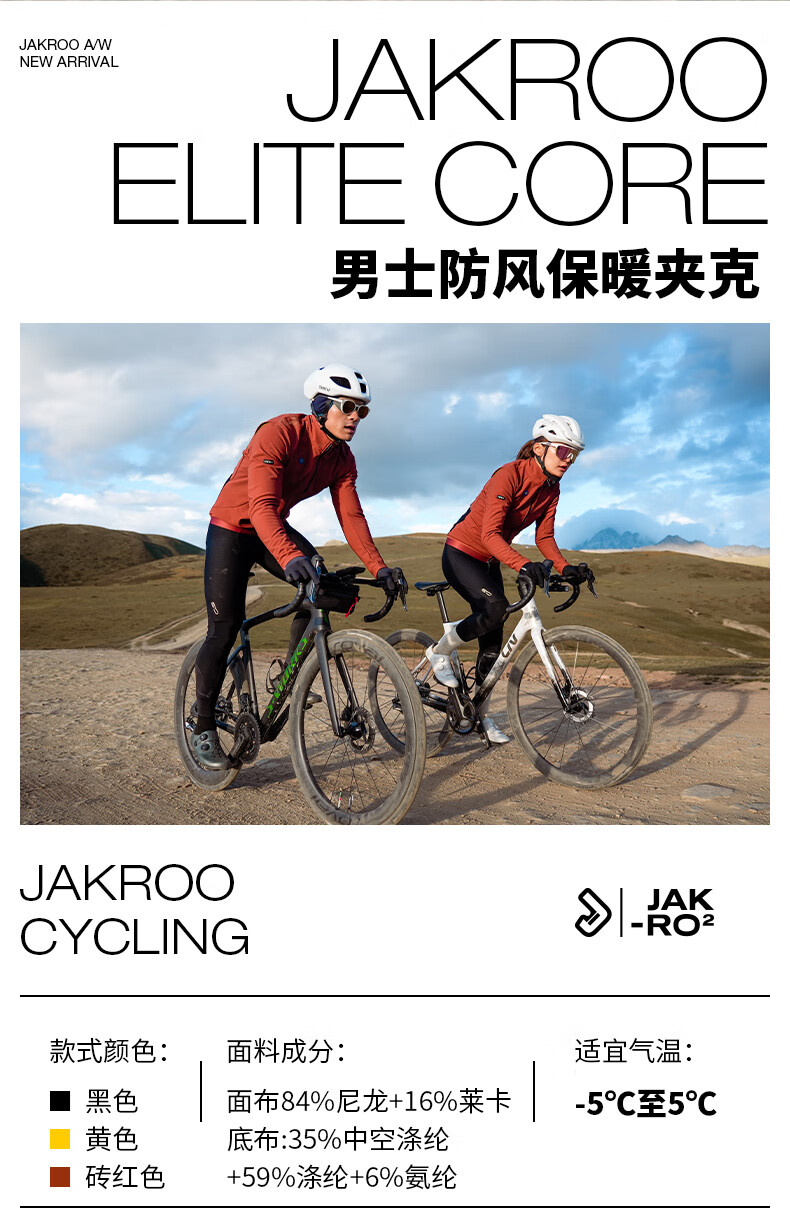 捷酷秋冬款ELITE CORE男士防风保暖夹克加厚复合面料-5℃骑行服 黄色 2XL