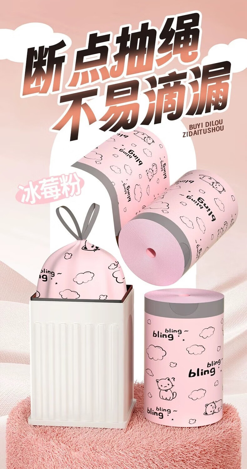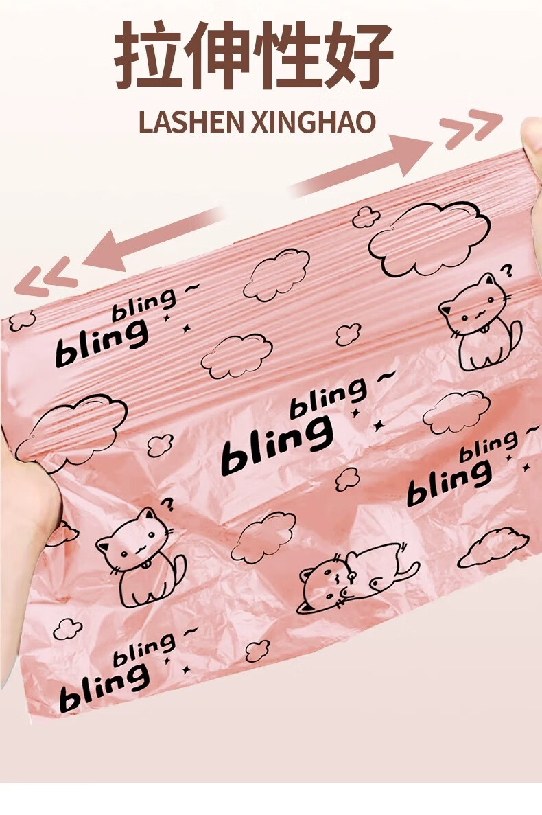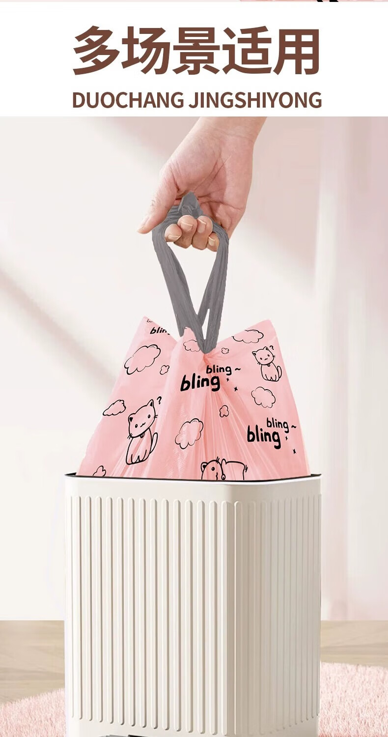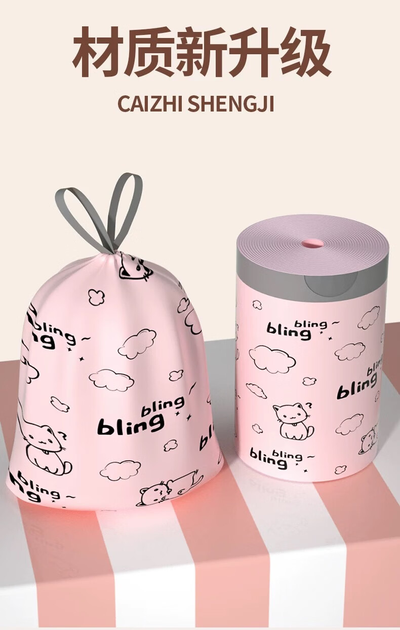 【精选百货】可爱卡通粉丝猫咪印花加厚抽绳收口垃圾袋潮款甄选塑 2卷