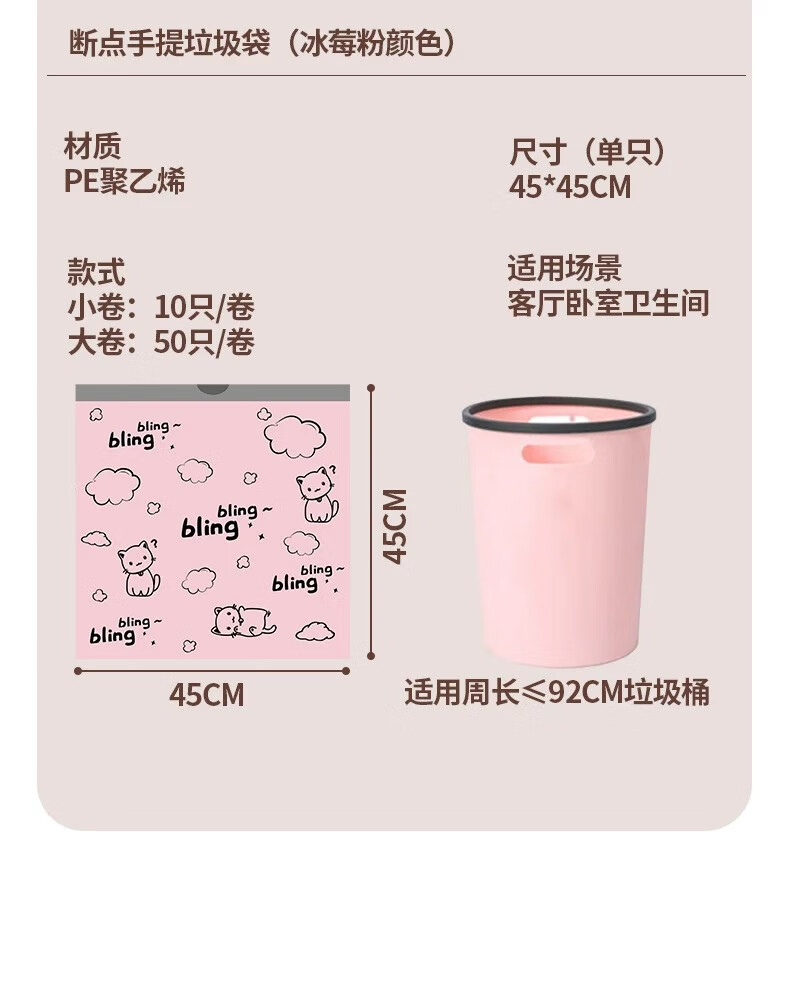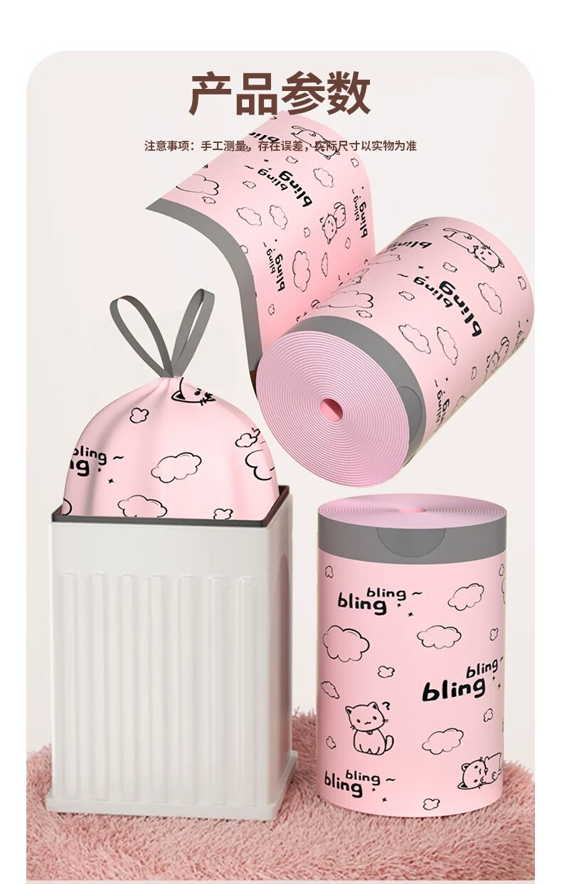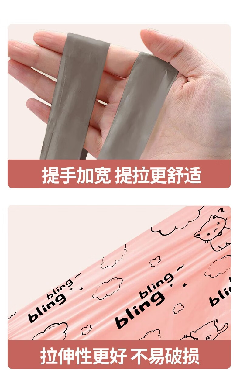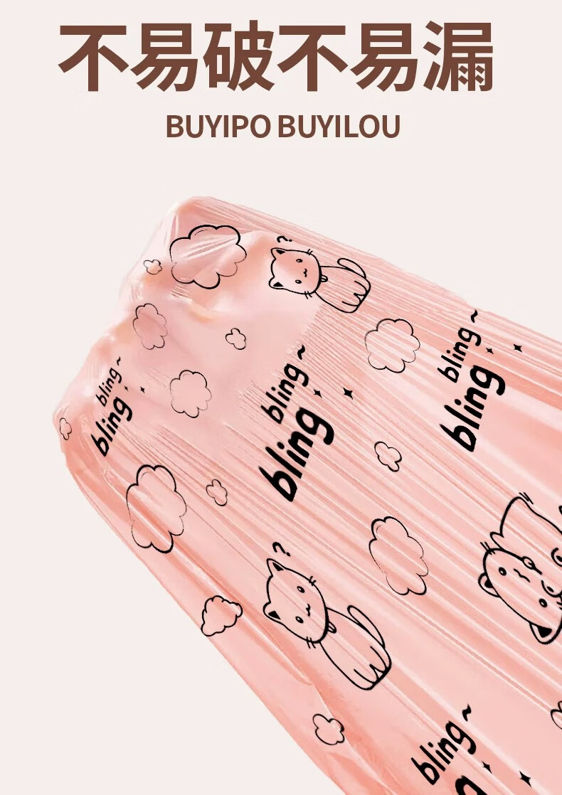 【精选百货】可爱卡通粉丝猫咪印花加厚抽绳收口垃圾袋潮款甄选塑 2卷