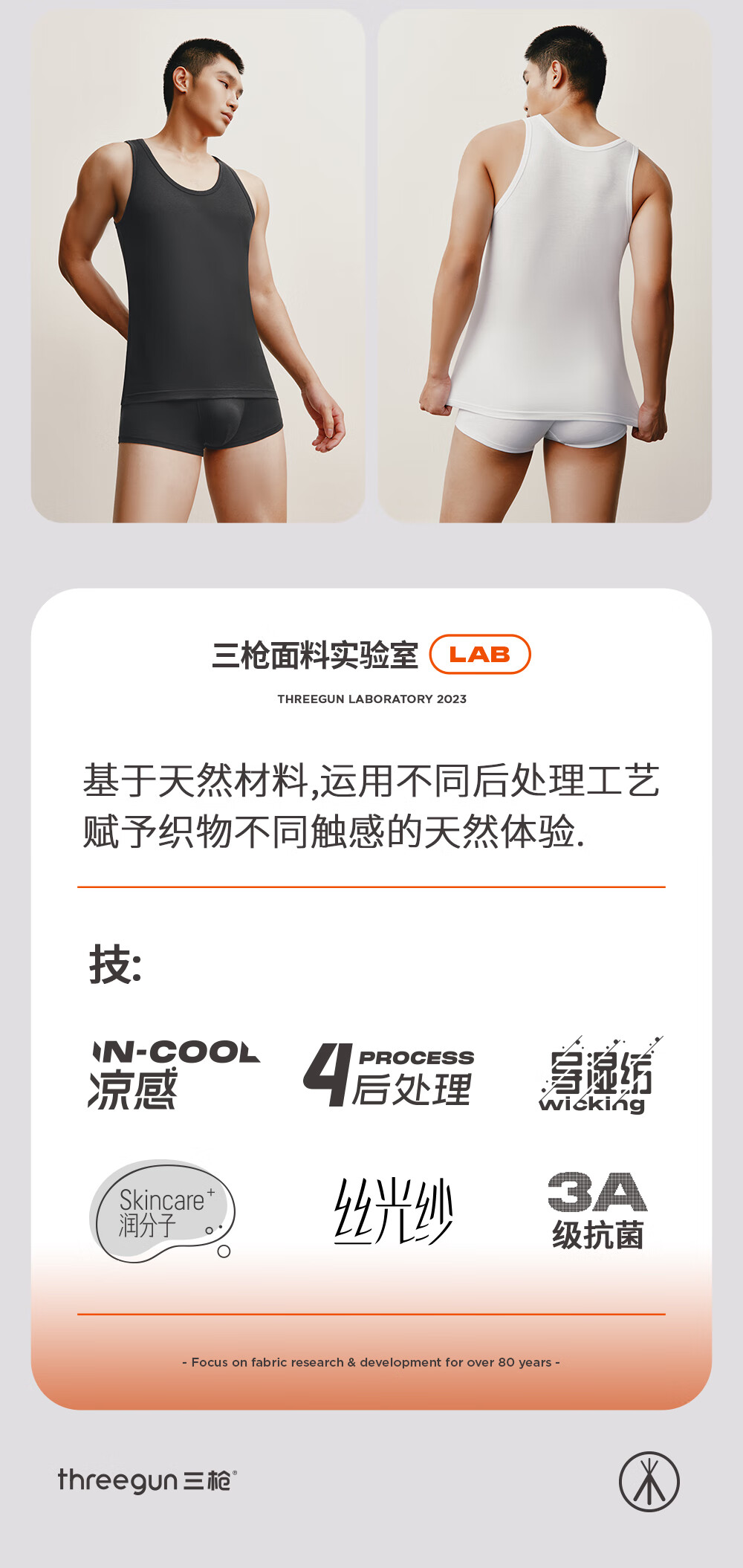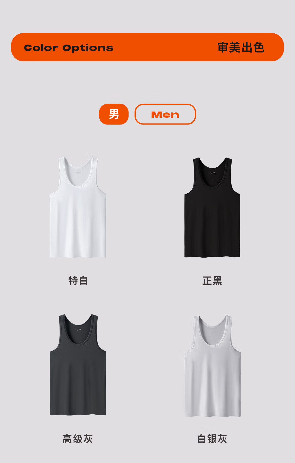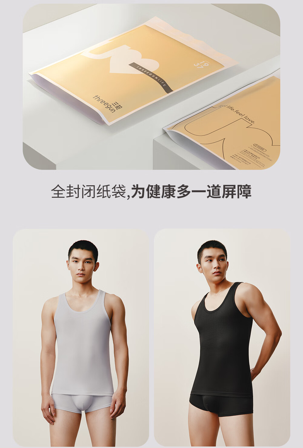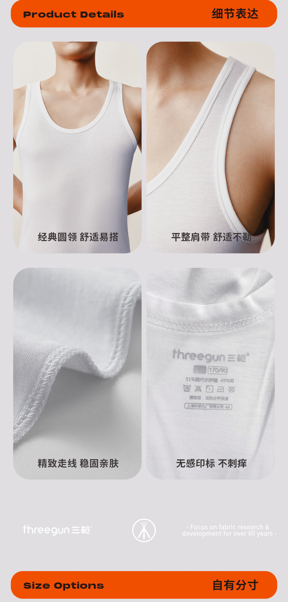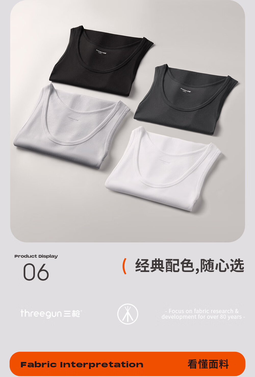 三枪背心男士莫代尔40支圆领弹力宽肩内衣运动宽松跨栏透气男打底汗衫 特白+特白 L