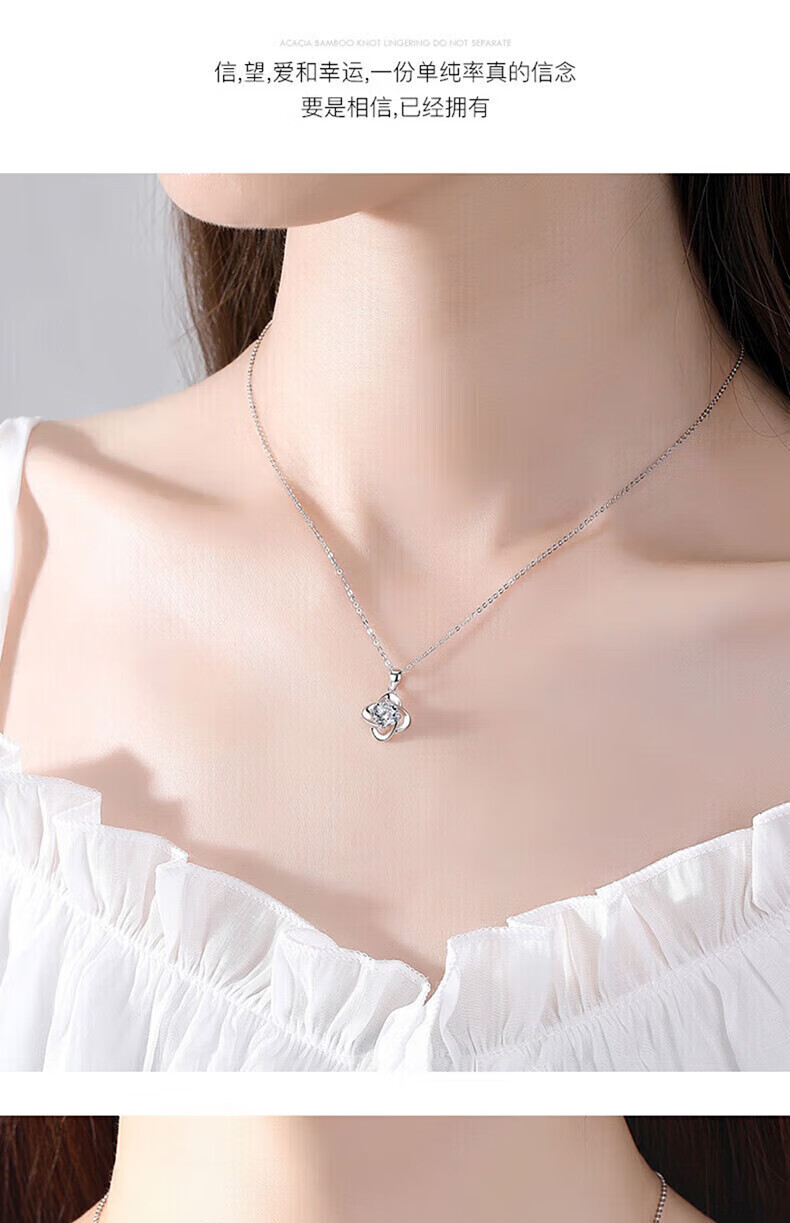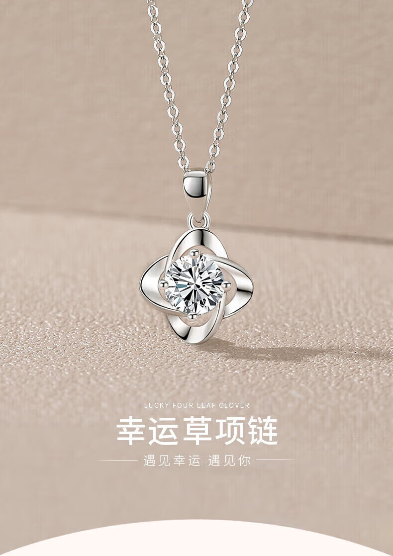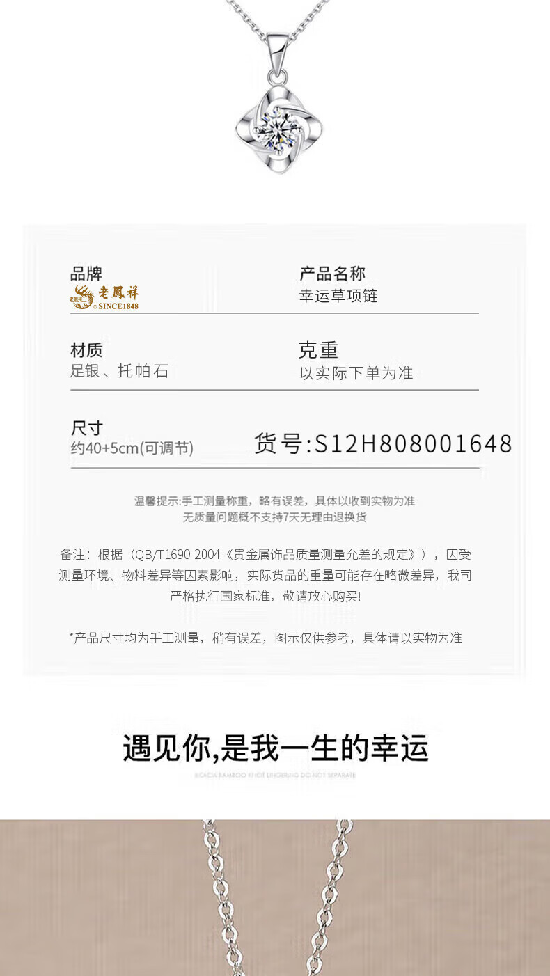 老凤祥足银幸运草吊坠女2026新款纯银时尚项链纪念日情人节礼物送女朋友 亲肤足银*项链*白-赠S999雪花链