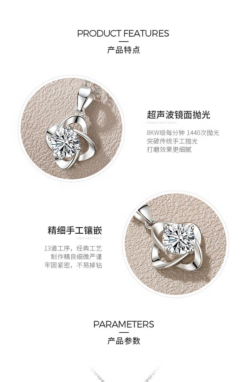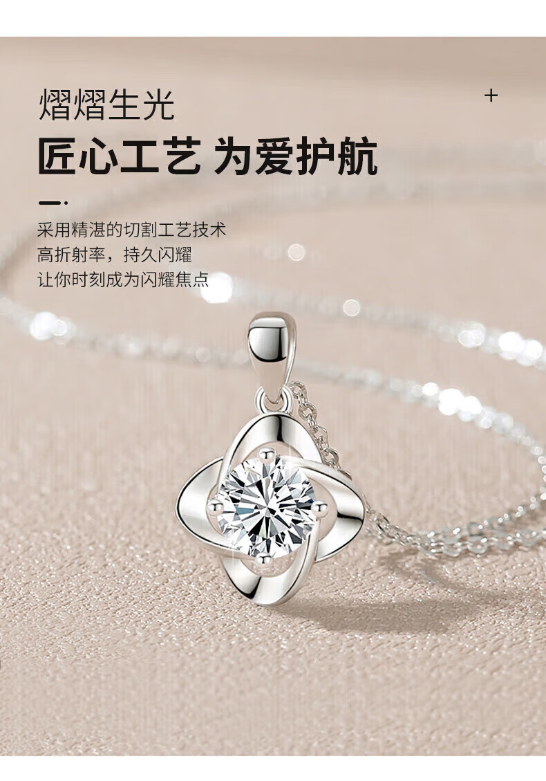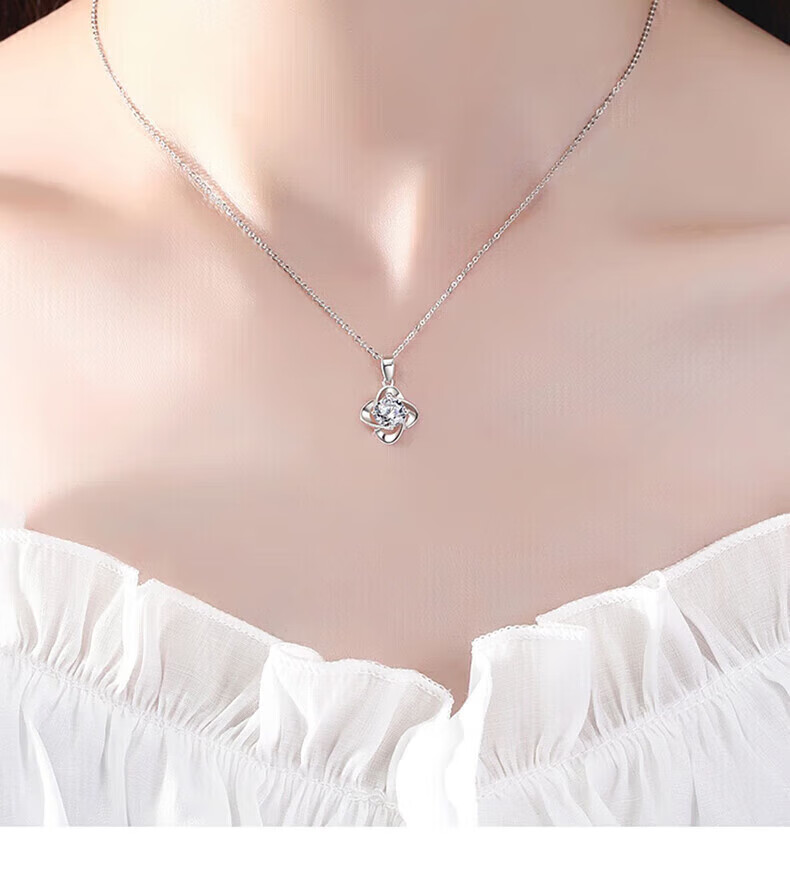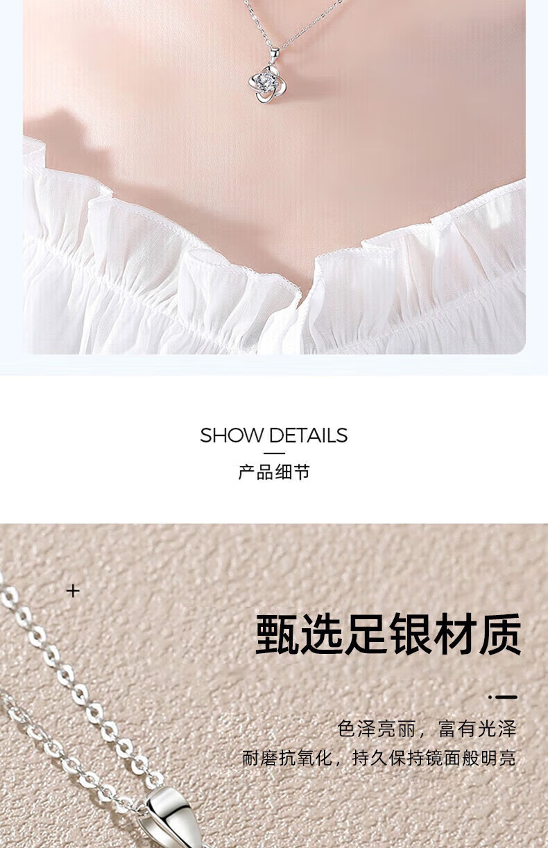 老凤祥足银幸运草吊坠女2026新款纯银时尚项链纪念日情人节礼物送女朋友 亲肤足银*项链*白-赠S999雪花链
