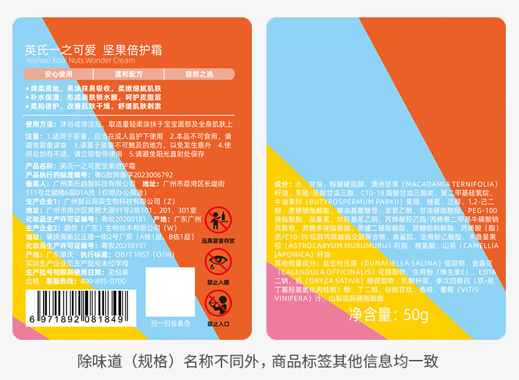 英氏(YEEHOO)坚果霜婴儿面霜宝宝霜新生儿润肤乳滋润保湿补水多效霜儿童面霜 坚果霜50g*2