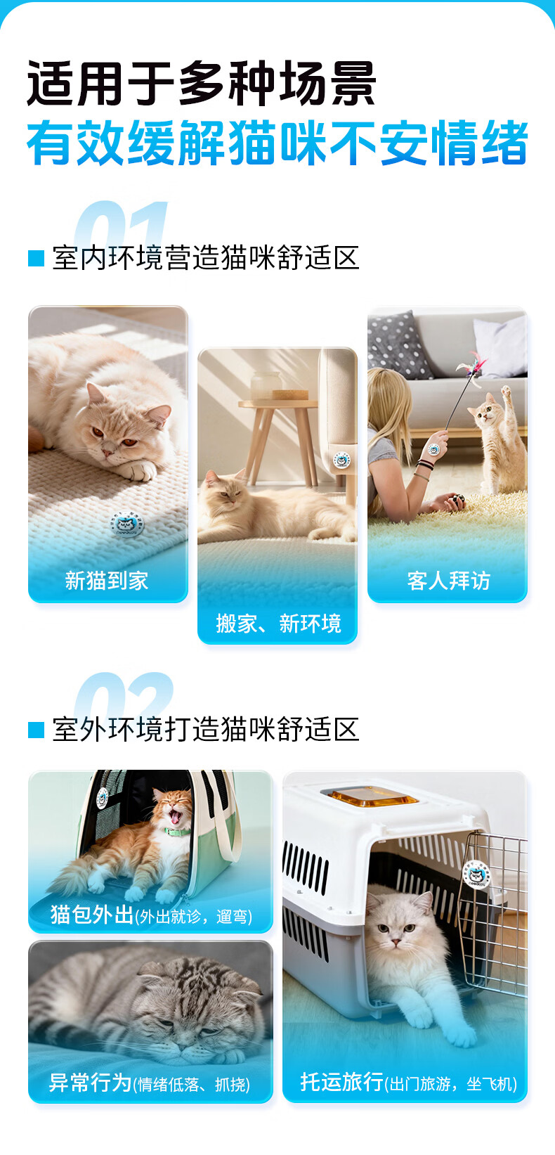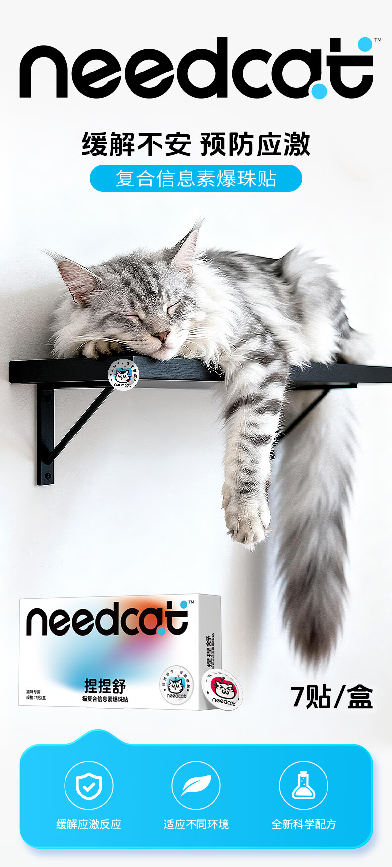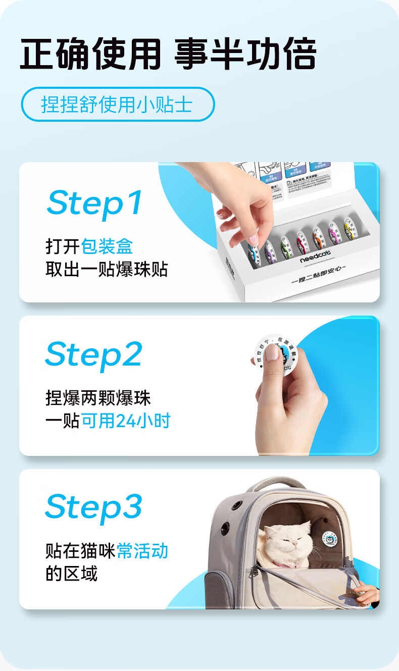 你的猫它为先80%费洛蒙防猫应激爆珠贴猫咪防应激费落蒙猫应激安抚情绪 【春节出行必备单品】捏捏舒单盒7贴