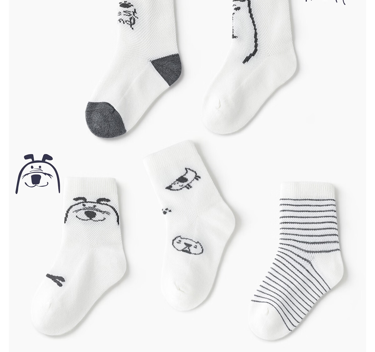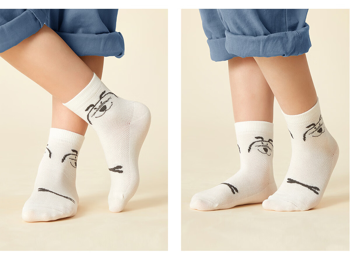 斑比儿童袜子男孩夏季网眼透气薄款中小童春秋无骨中筒棉袜 BB2212 春夏款儿童网眼袜 5双 0-1岁 建议脚码16码以内【12-14】
