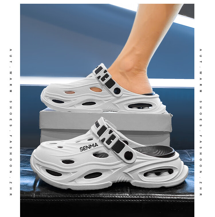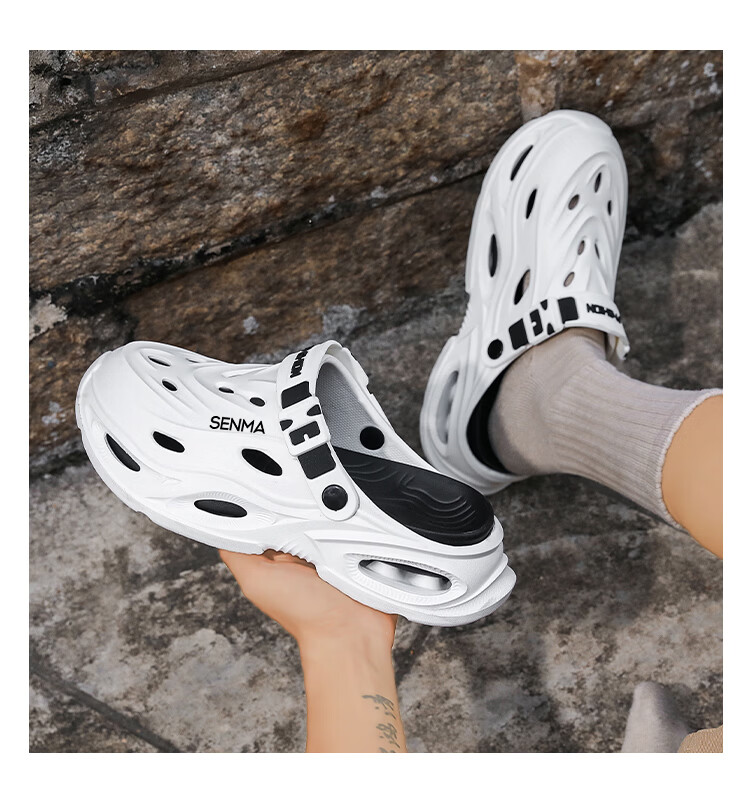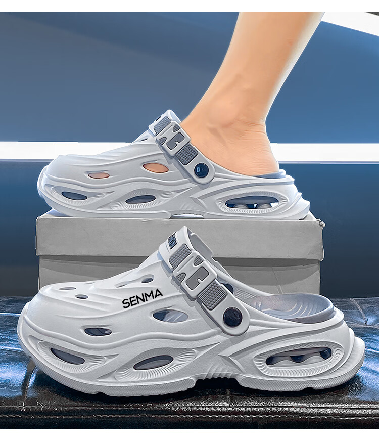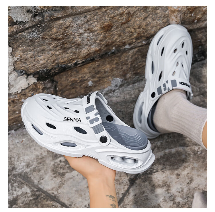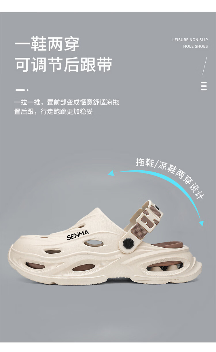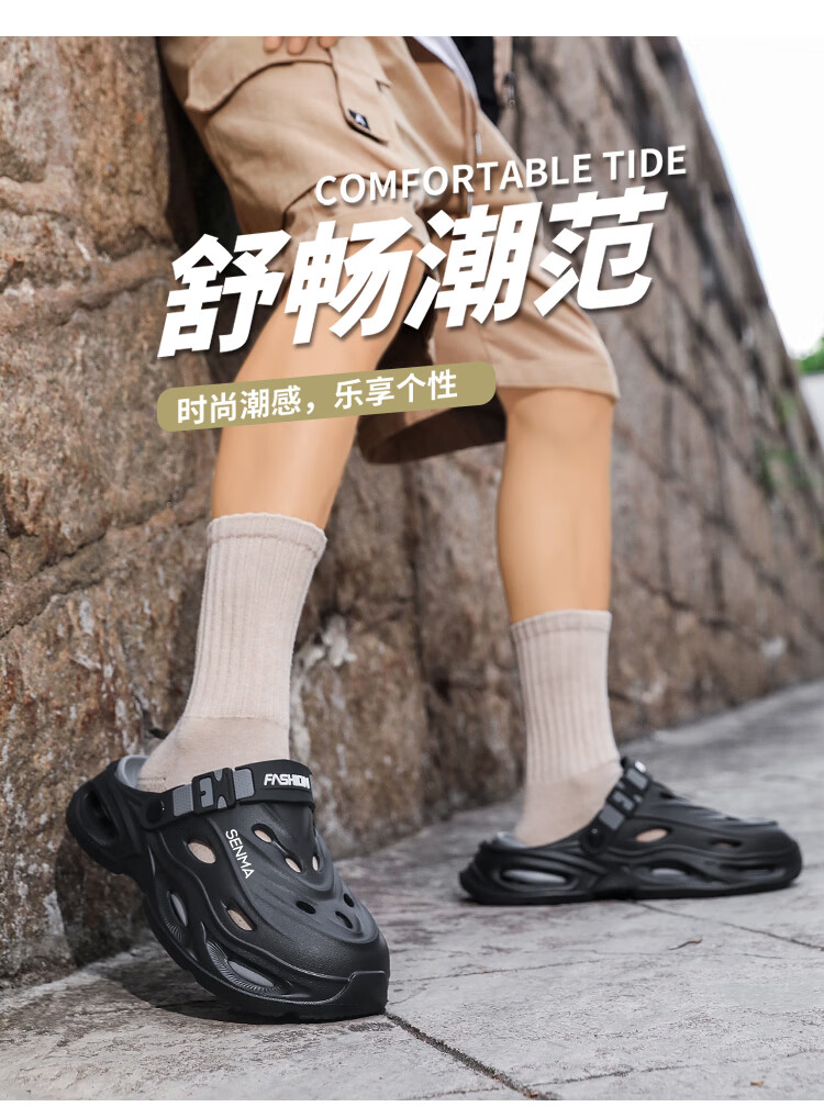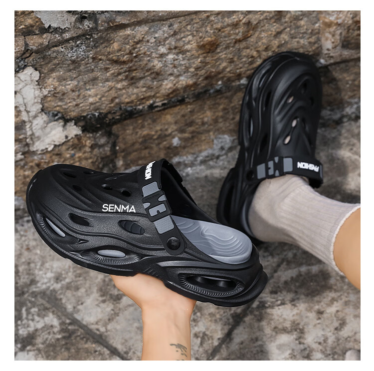 森馬拖鞋男2026夏季外穿包头两用篮球运动凉拖男士大码防滑沙滩洞洞鞋 黑灰【基础款】 36-37 现货秒发