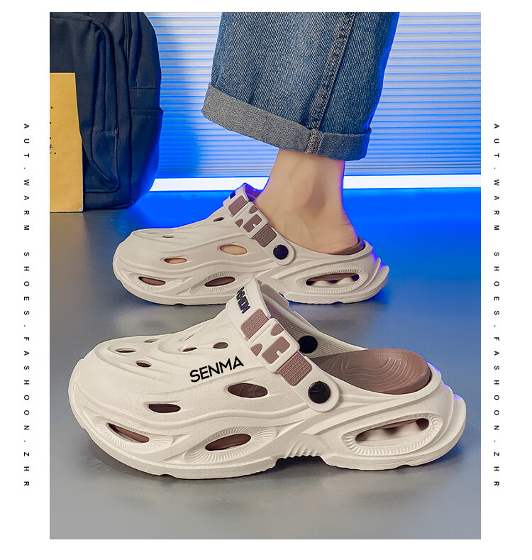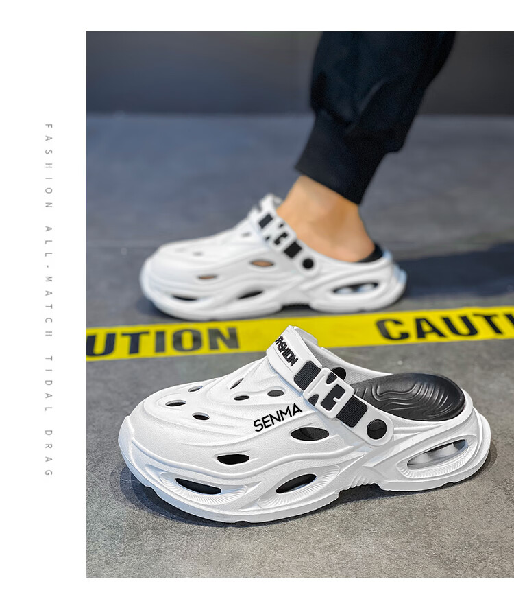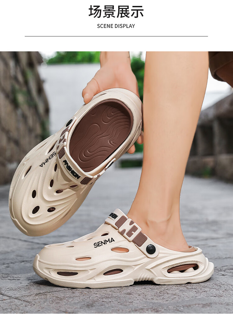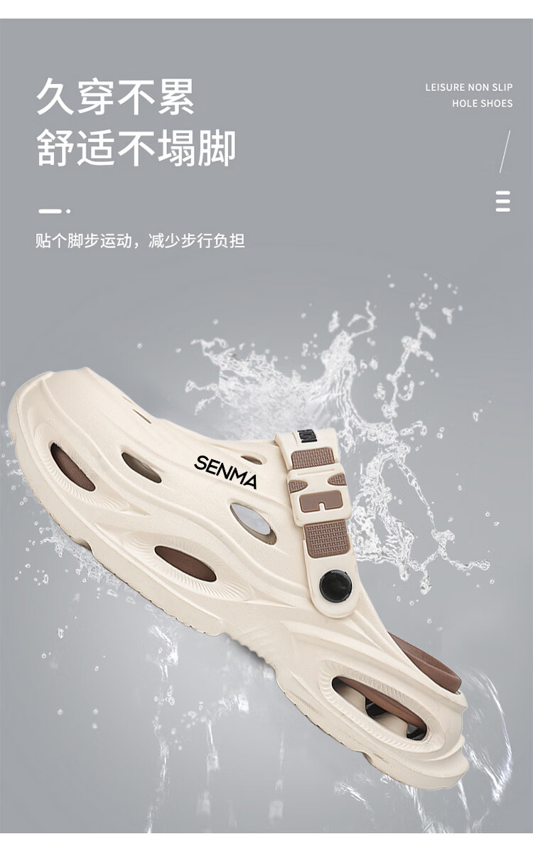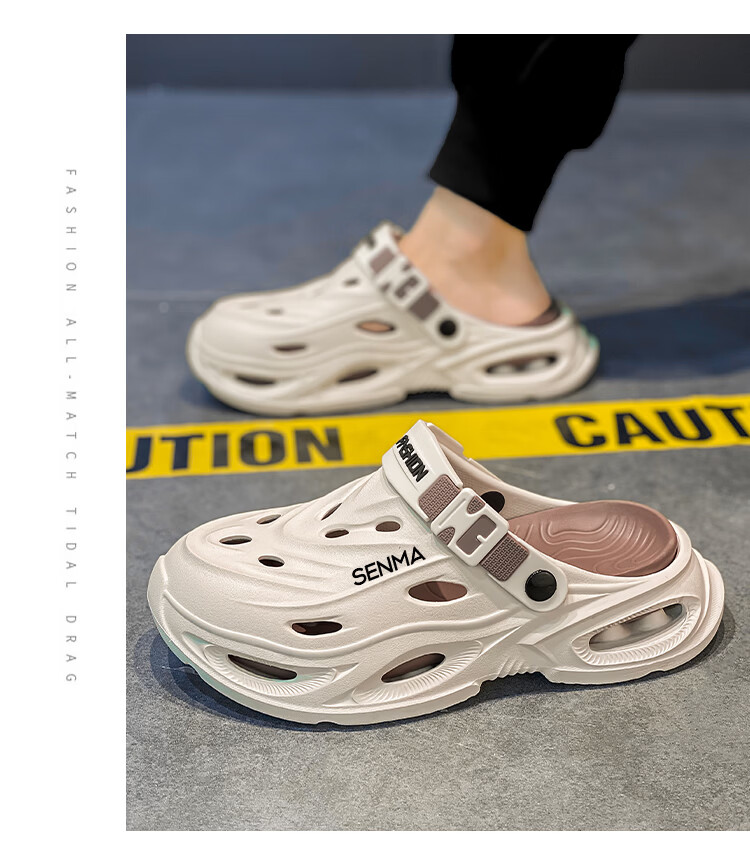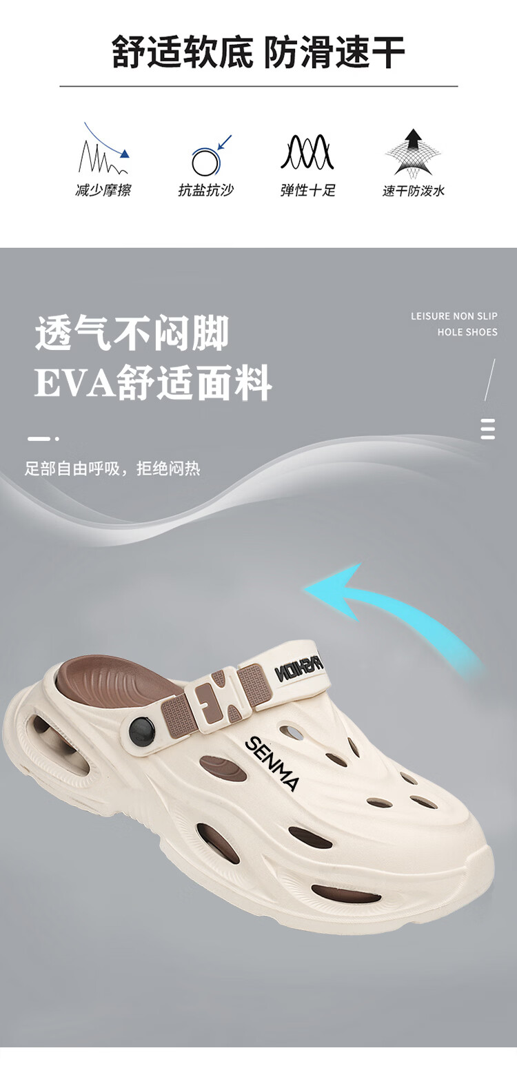 森馬拖鞋男2026夏季外穿包头两用篮球运动凉拖男士大码防滑沙滩洞洞鞋 黑灰【基础款】 36-37 现货秒发