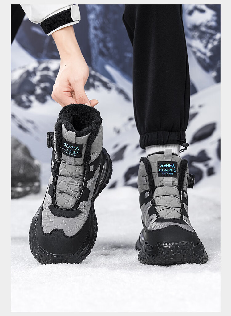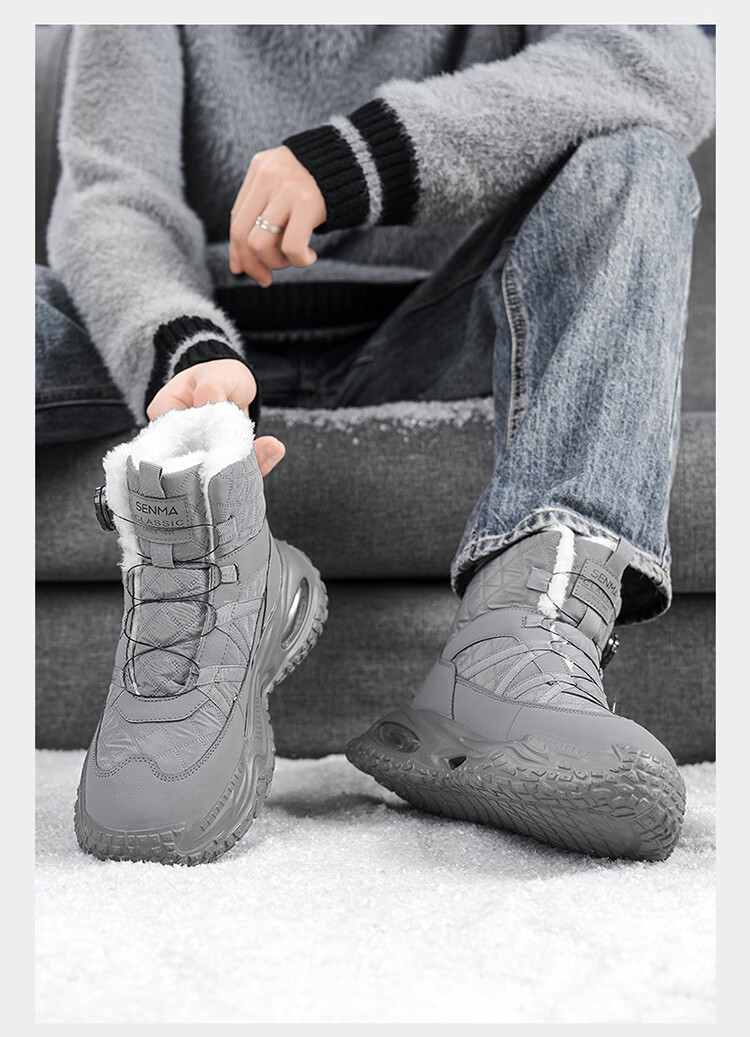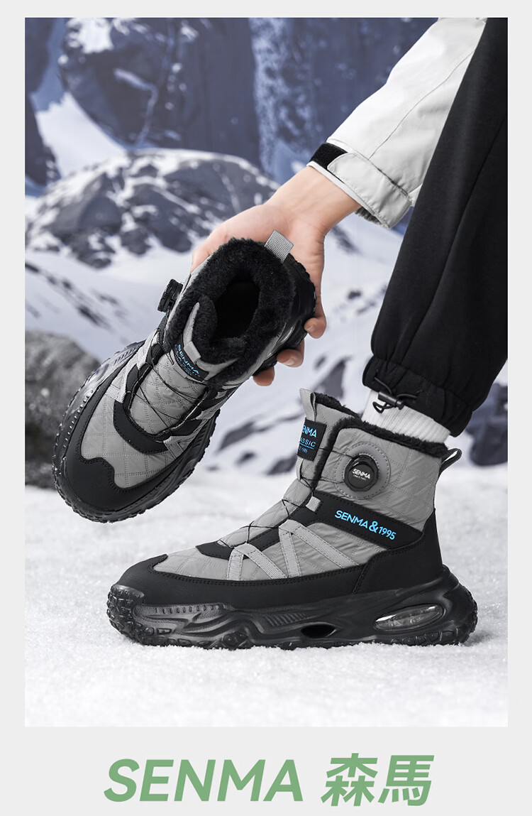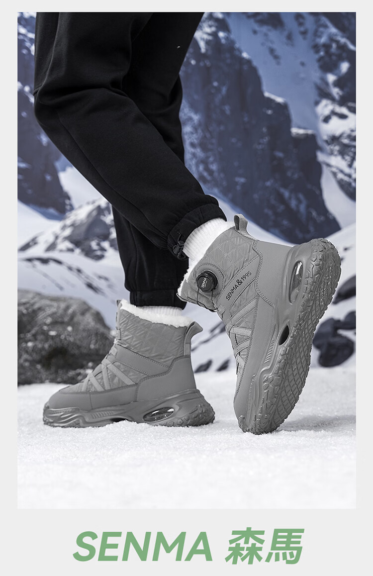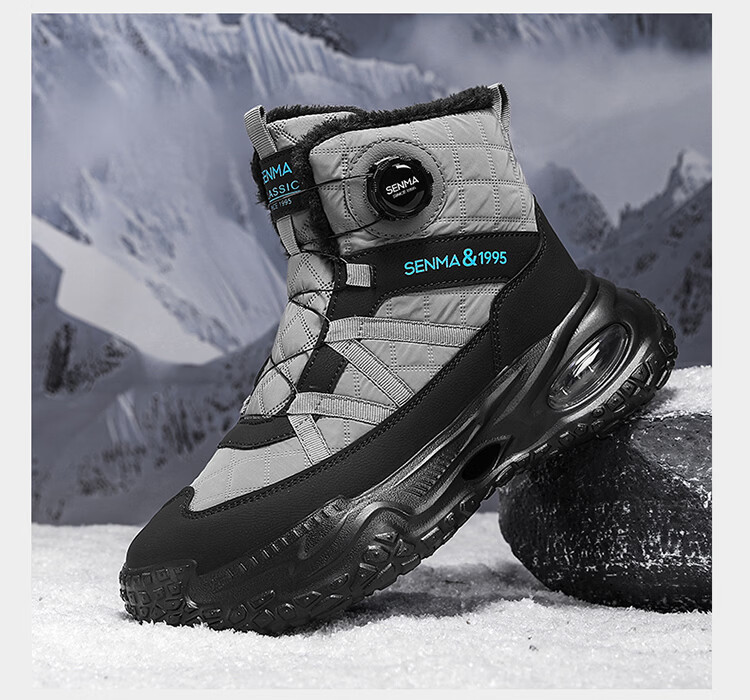 森馬雪地靴男冬季加绒保暖东北棉鞋男士户外抗寒防滑厚底气垫运动棉靴 黑灰【基础款】 39 标准码数/现货秒发