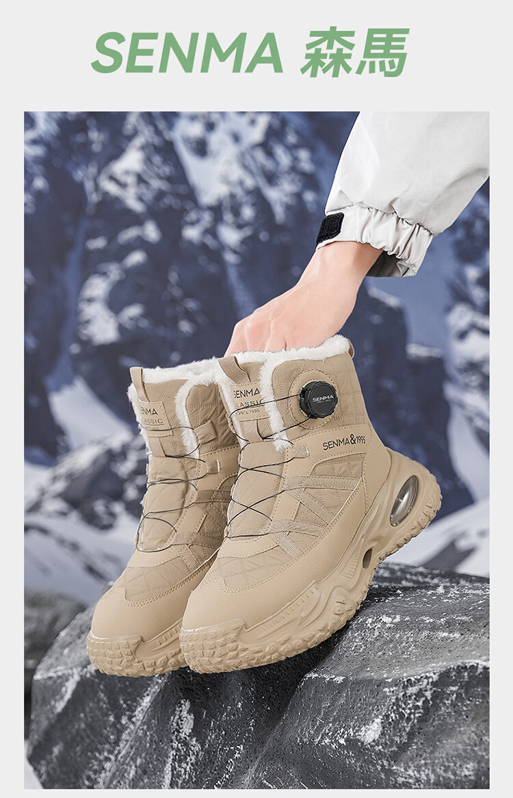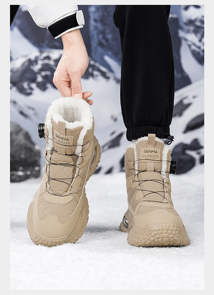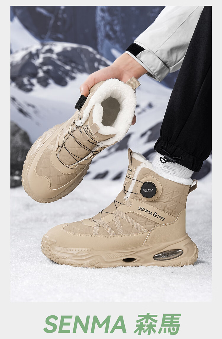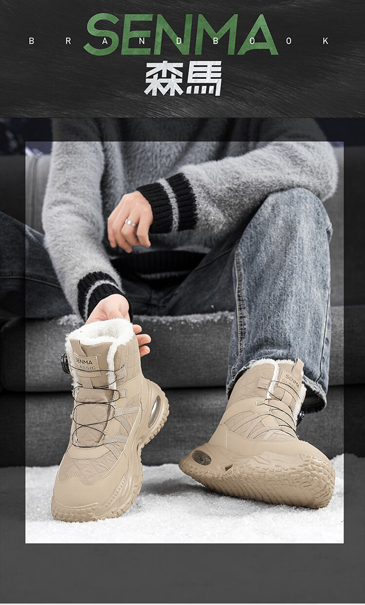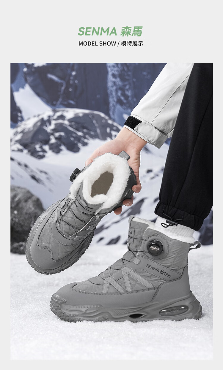 森馬雪地靴男冬季加绒保暖东北棉鞋男士户外抗寒防滑厚底气垫运动棉靴 黑灰【基础款】 39 标准码数/现货秒发