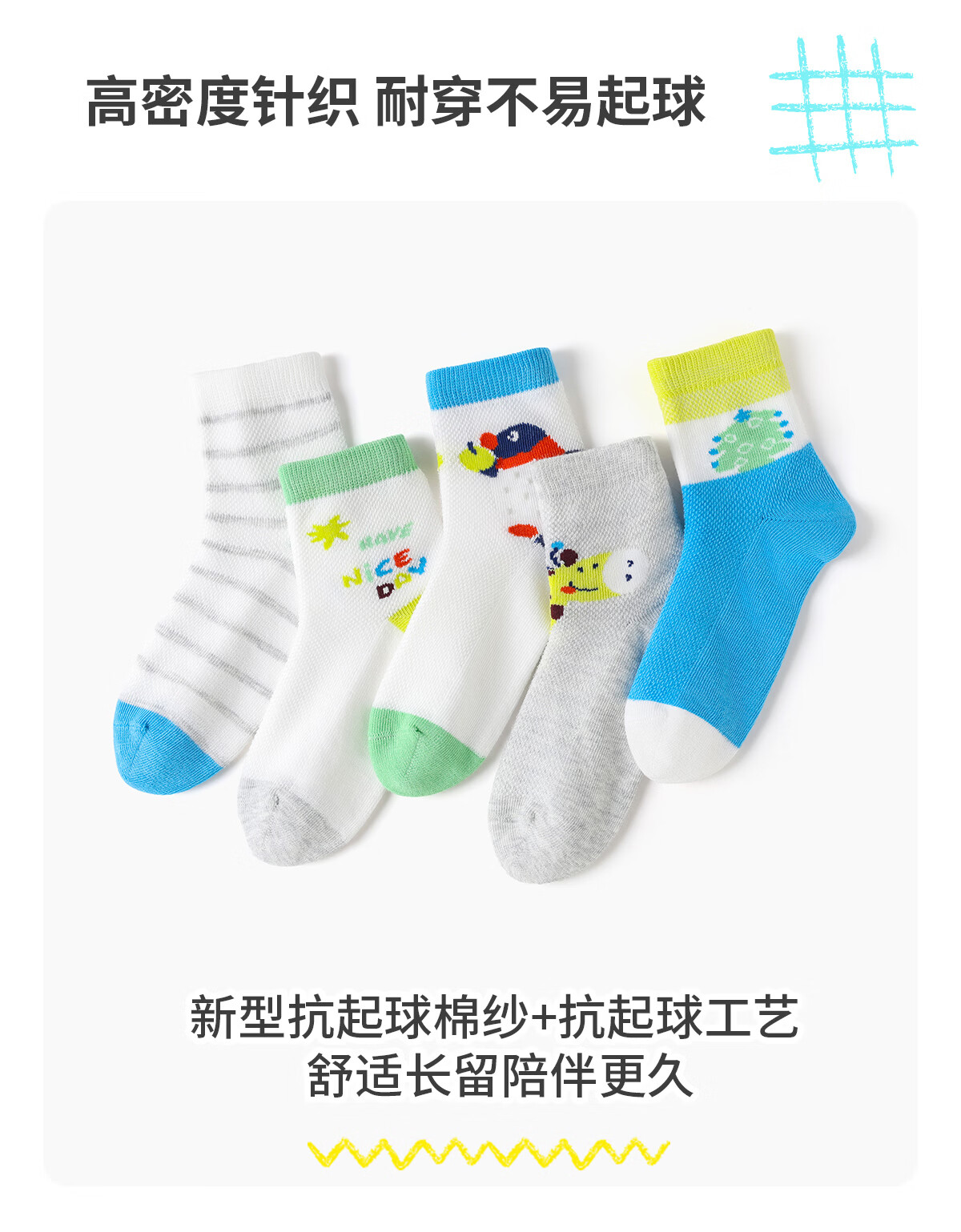 斑比男童袜子春夏款网眼透气棉袜中大童宝宝夏季无骨可爱儿童袜子 BB2608 春夏款儿童袜子 5双 0-1岁 建议脚码16码以内【12-14】