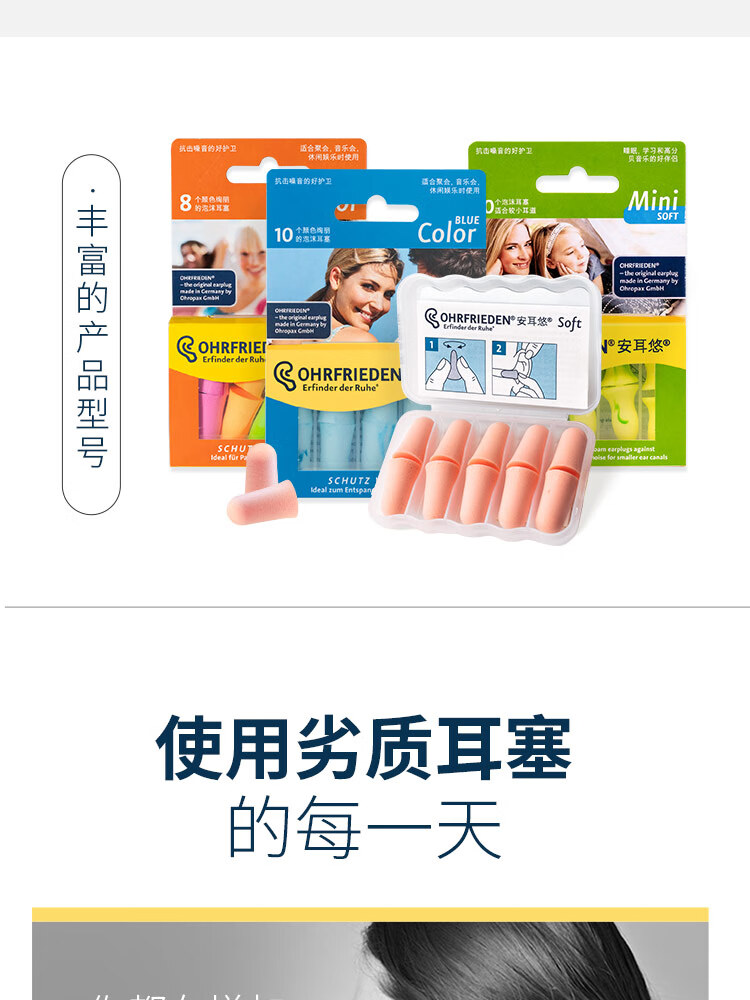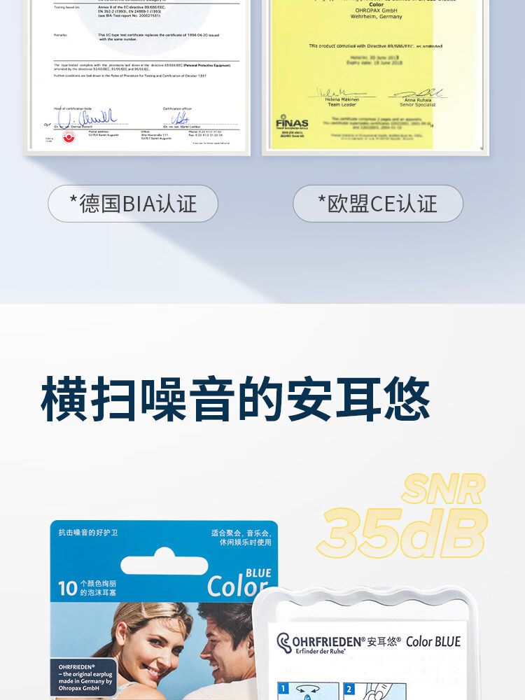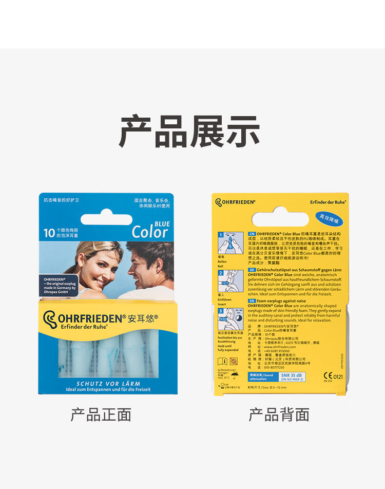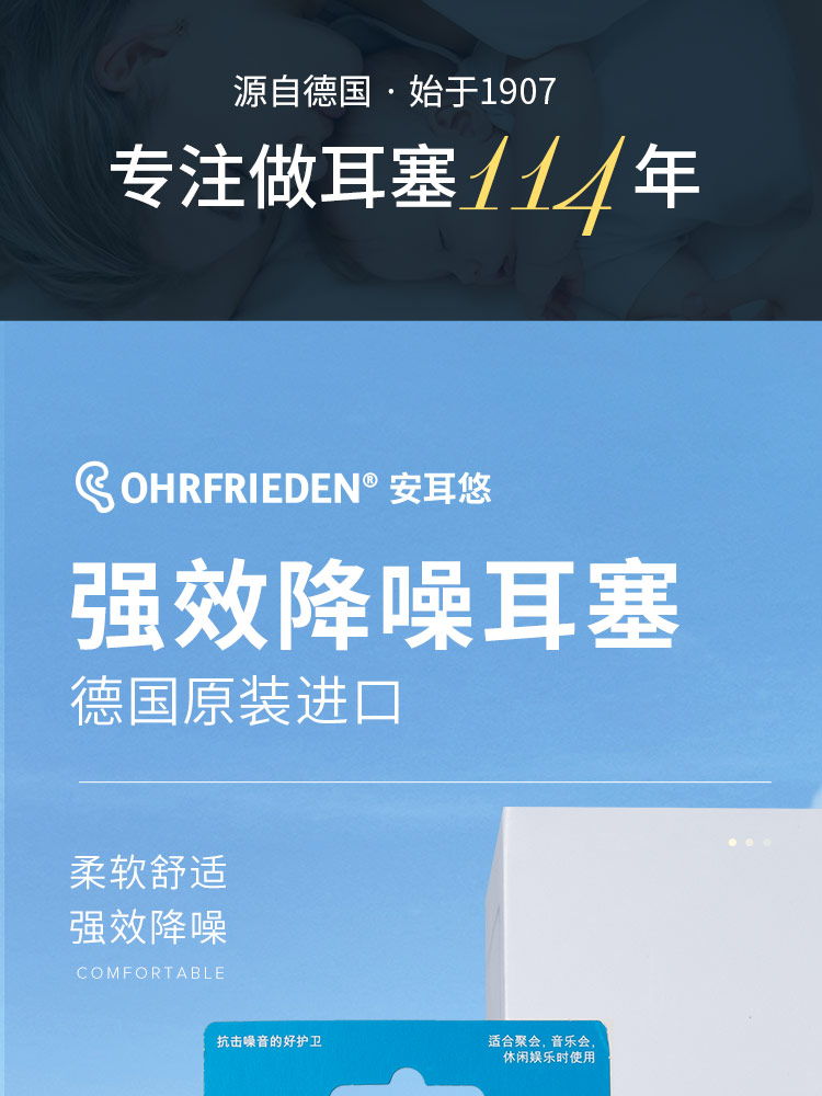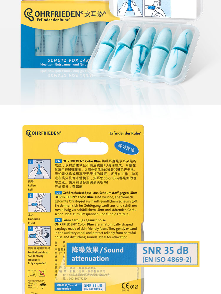 安耳悠 德国耳塞防噪音睡觉睡眠专用工作学习降噪隔音耳塞 blue5副装