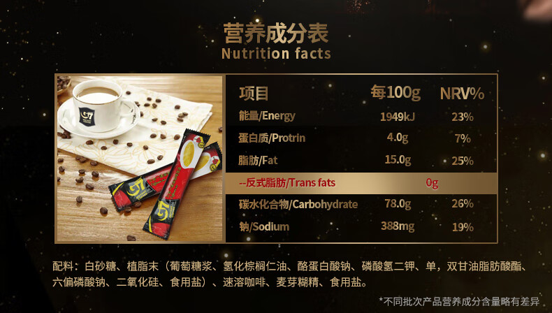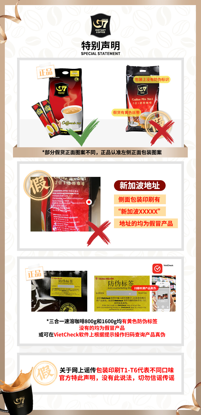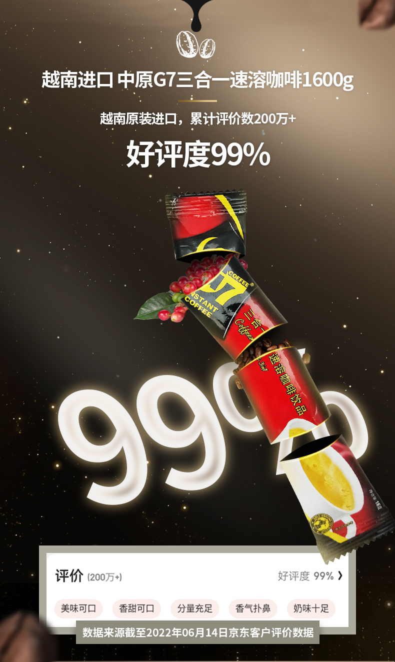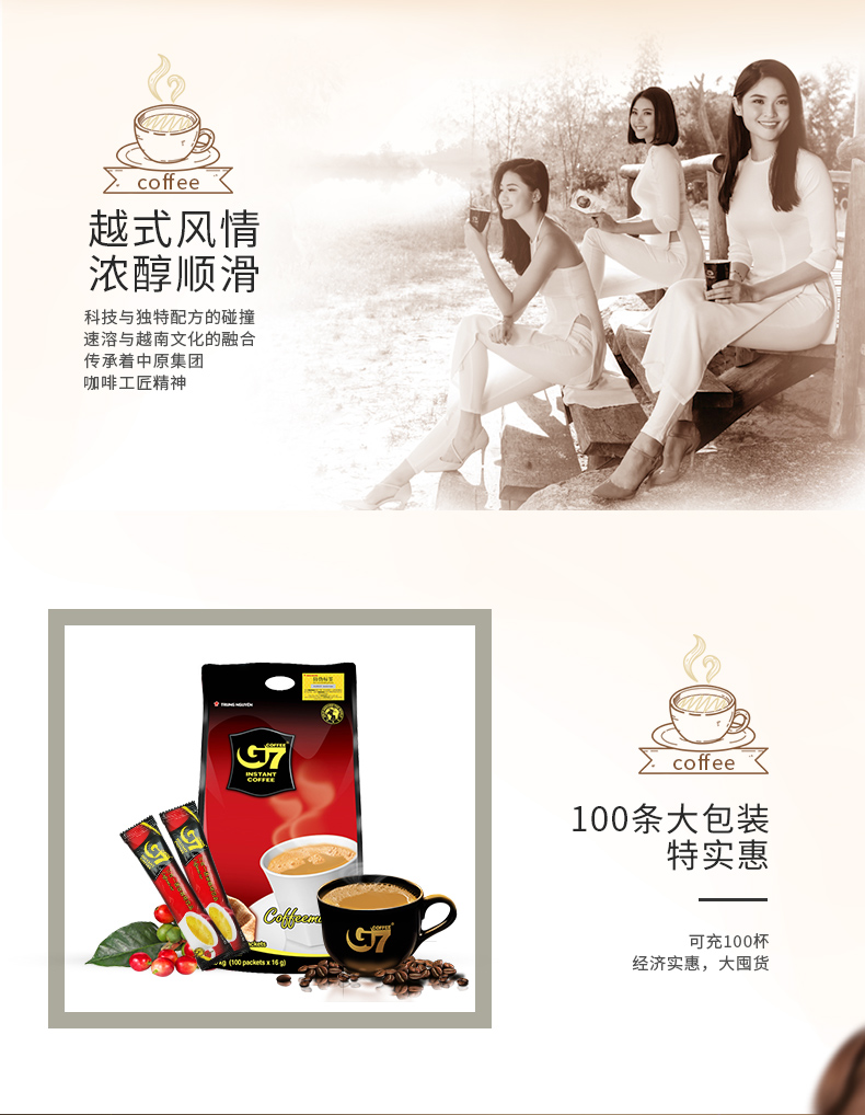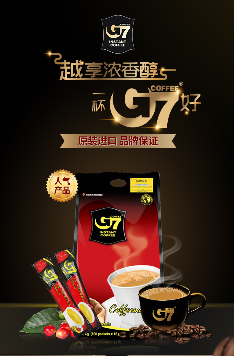 中原G7三合一速溶咖啡1600g (16gx100条) 越南进口