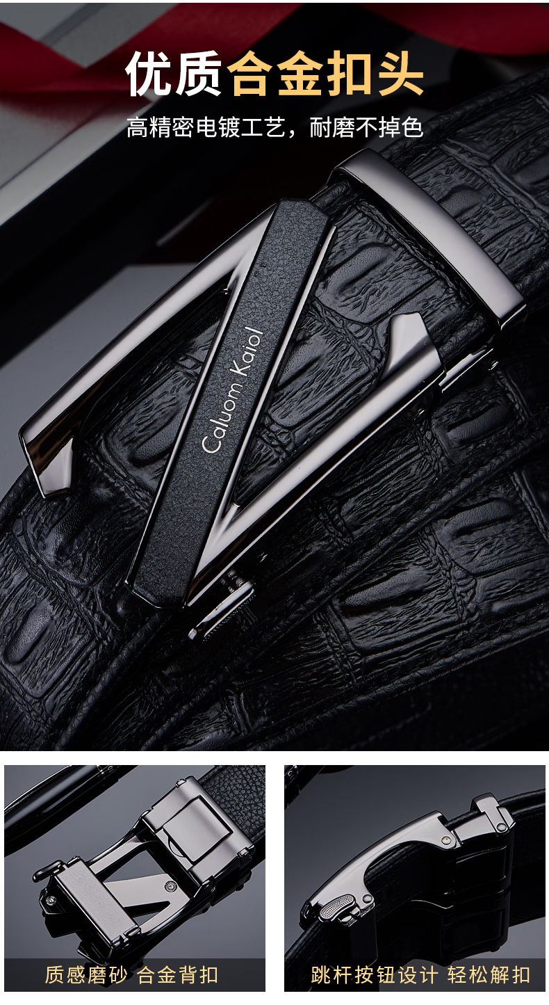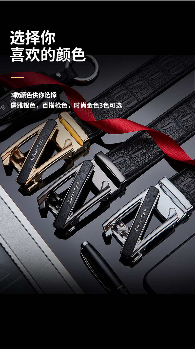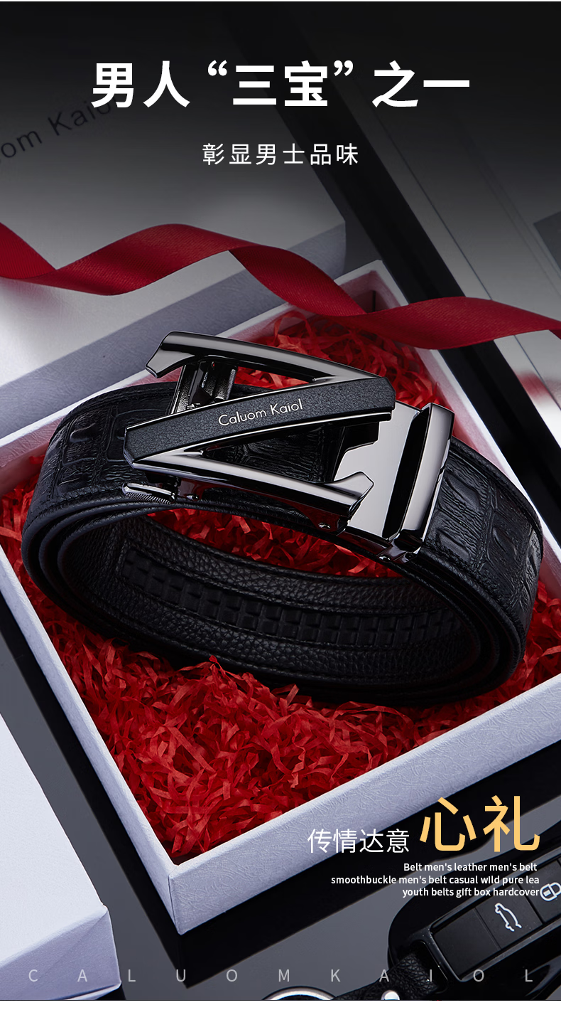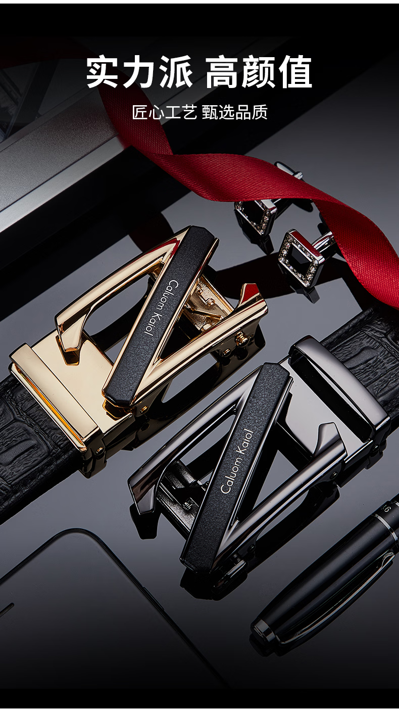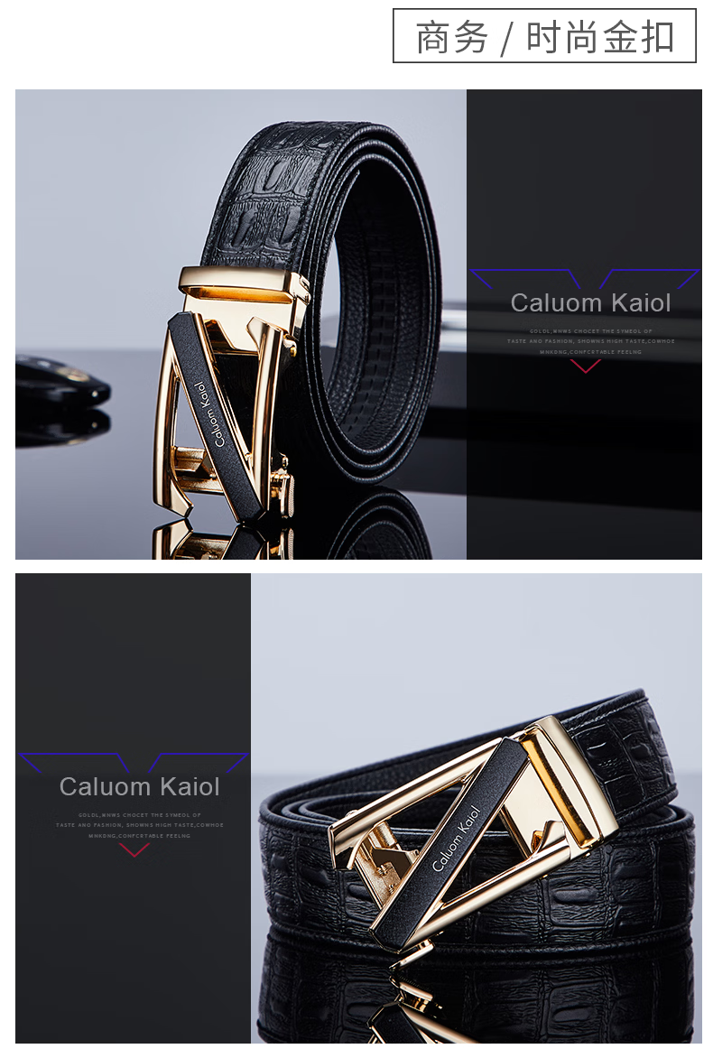 Caluom Kaiol品牌男士皮带真皮自动扣男士腰带商务牛皮裤腰带生日礼物送男友 【专柜礼盒】8029时尚金色 110cm -130cm默认随机(可修剪)