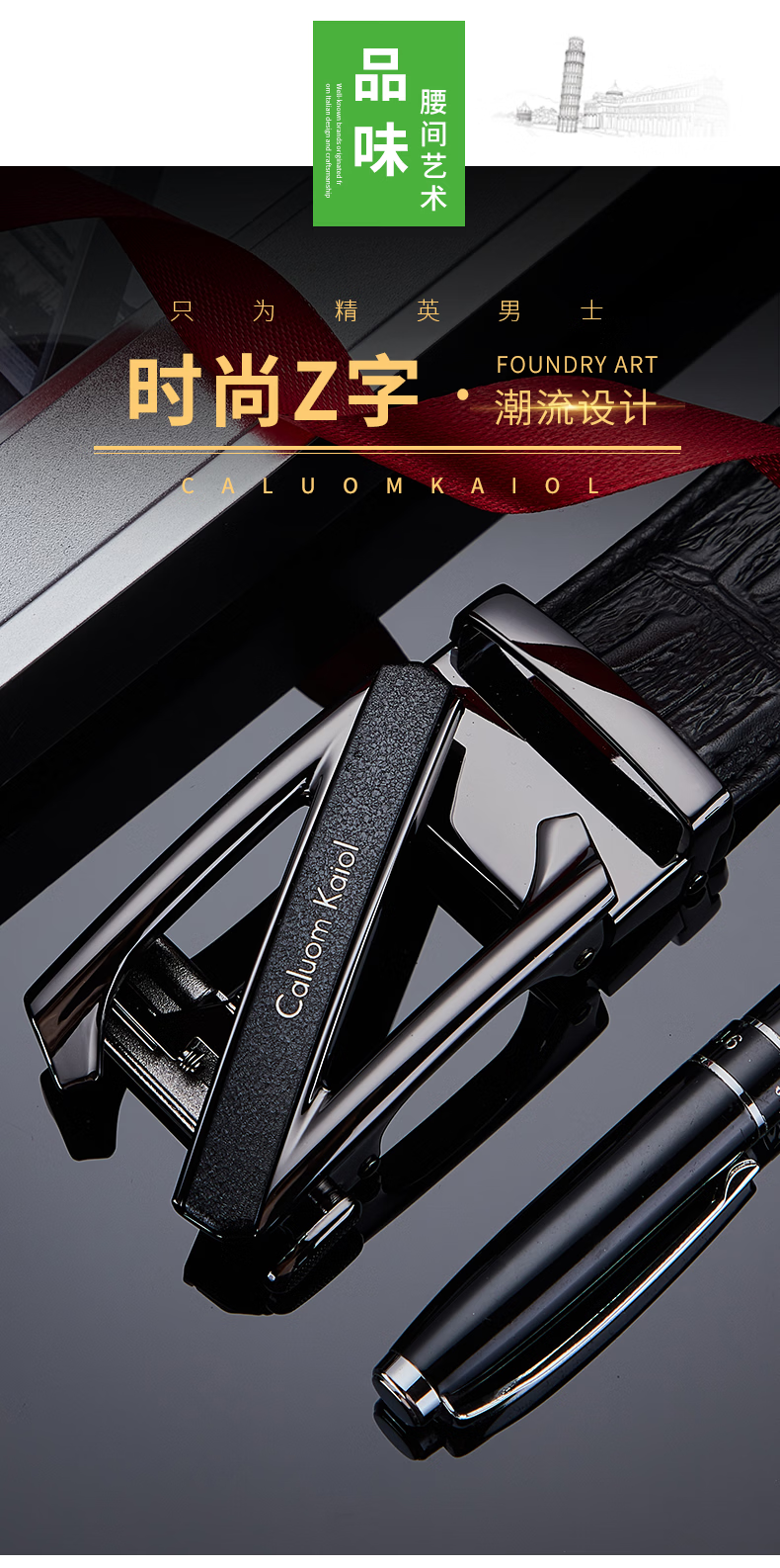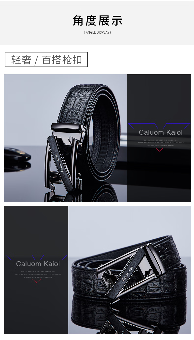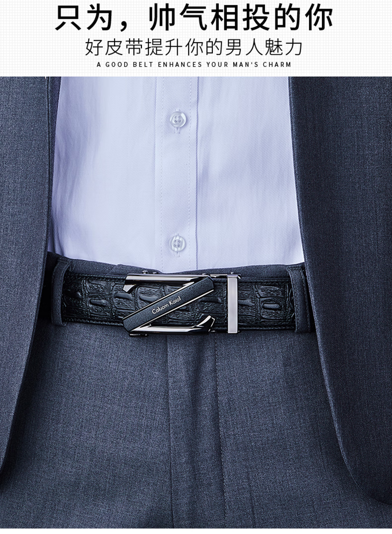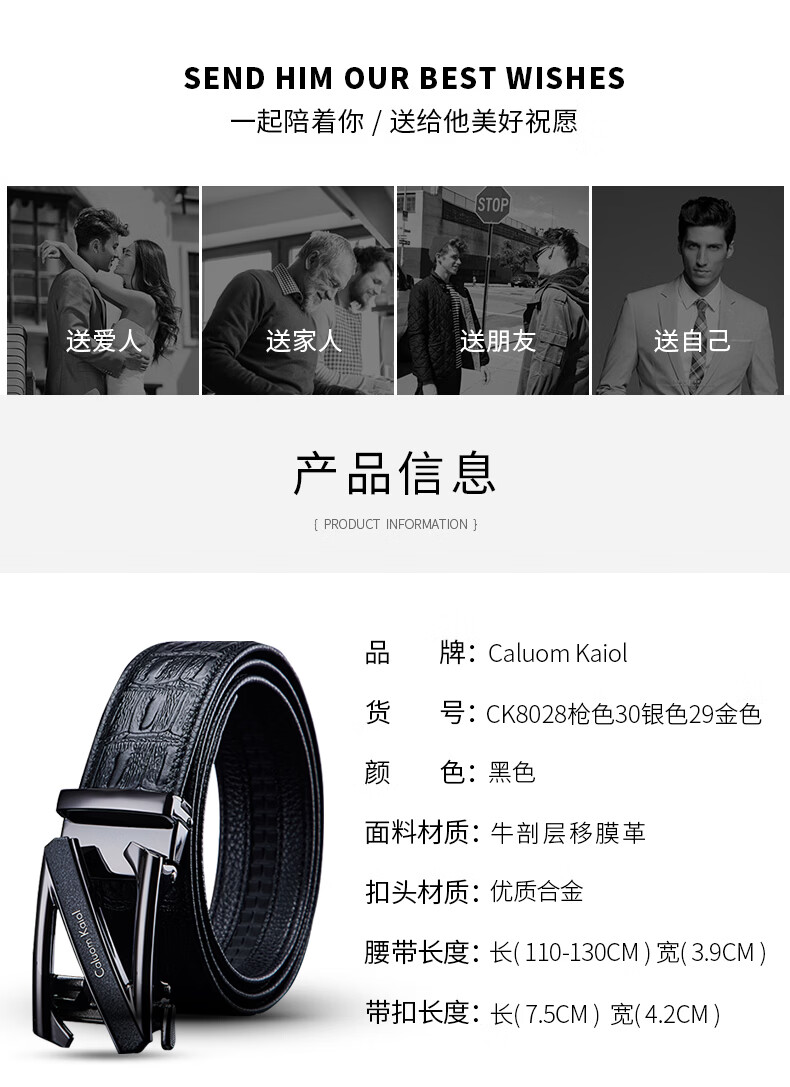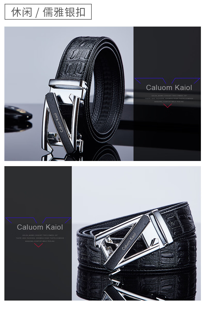 Caluom Kaiol品牌男士皮带真皮自动扣男士腰带商务牛皮裤腰带生日礼物送男友 【专柜礼盒】8029时尚金色 110cm -130cm默认随机(可修剪)