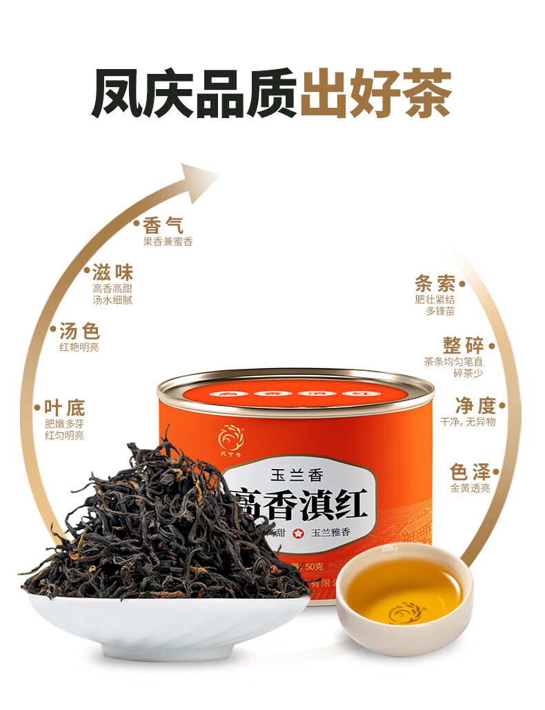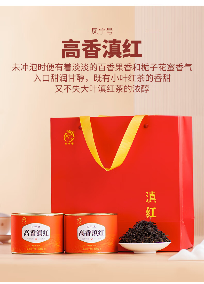 凤宁号红茶高香滇红凤庆滇红茶云南高档高香滇红茶蜜香型口粮茶叶自己喝 单罐装50g