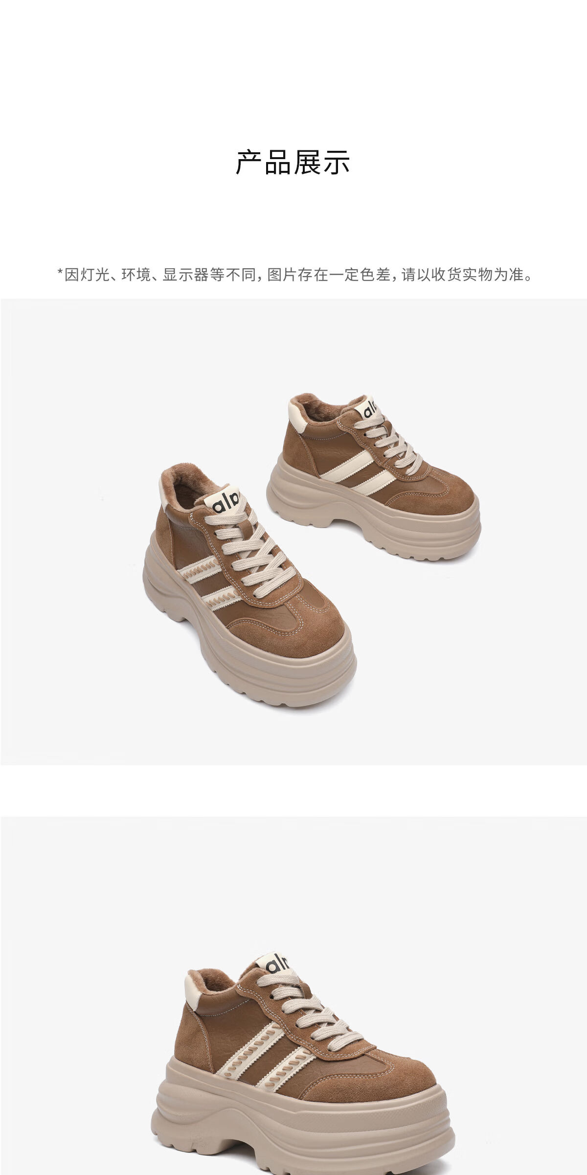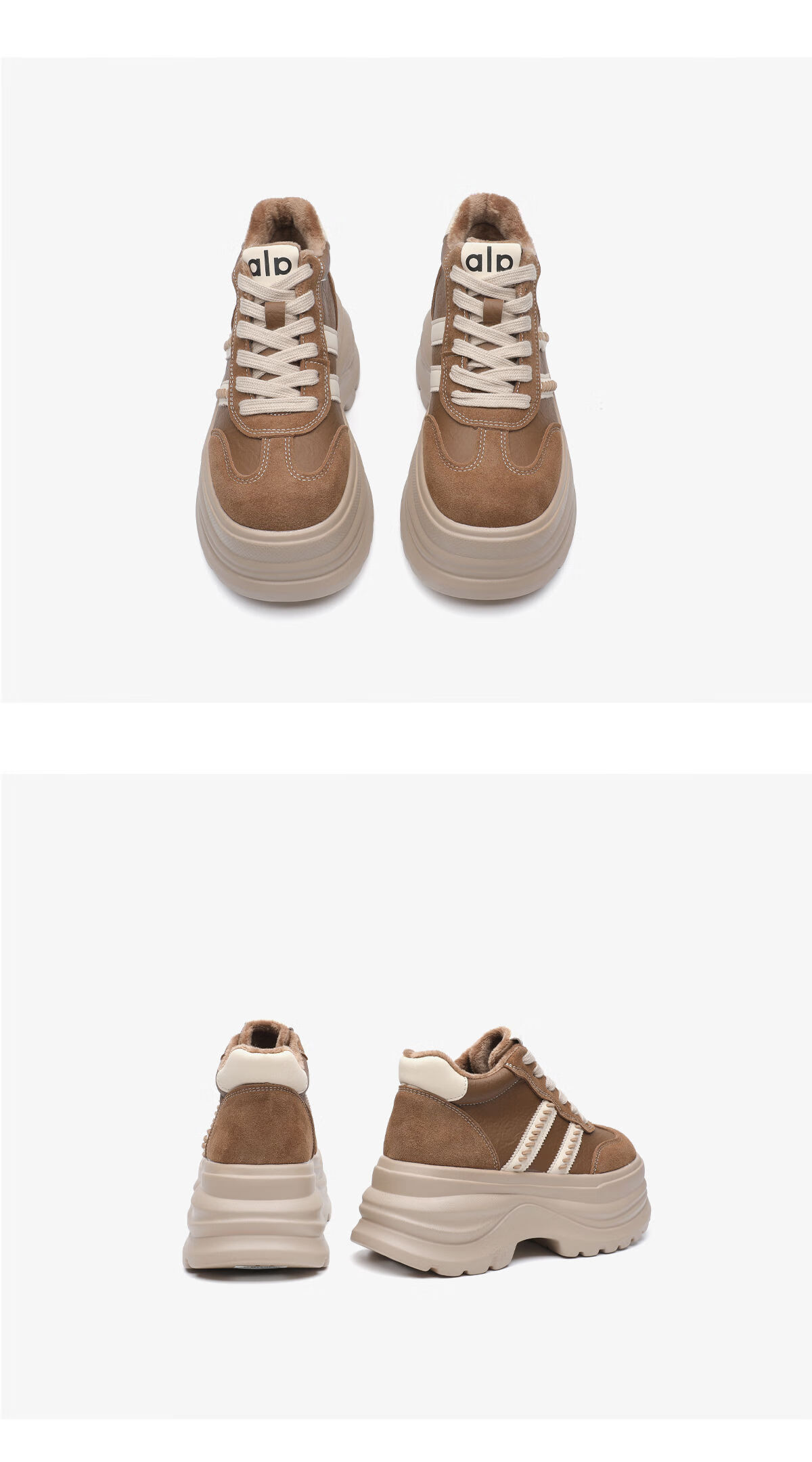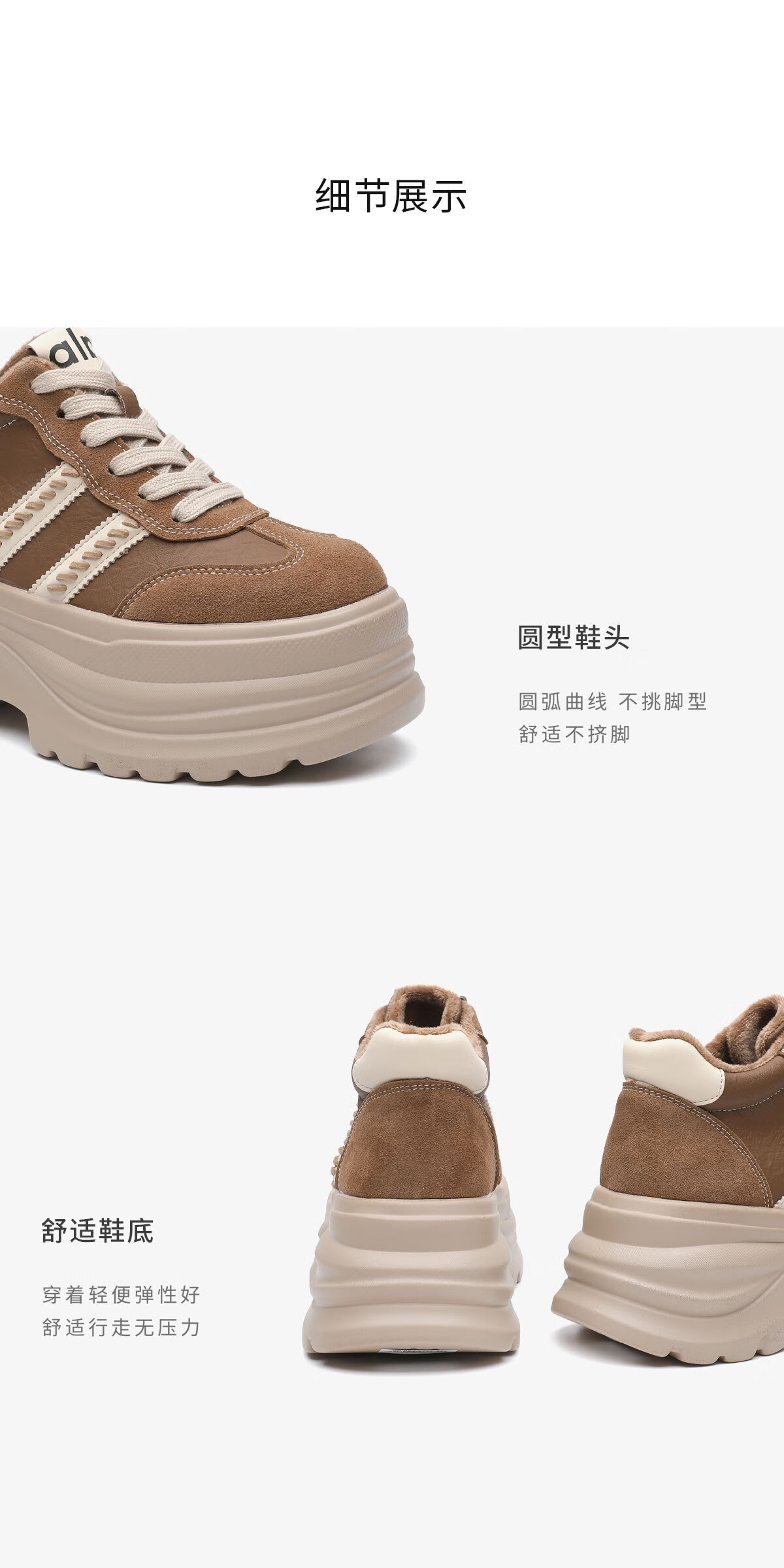 月芽儿2025冬季复古德训鞋女增高休闲鞋百搭显脚小软底运动鞋 绒里棕色03T 34