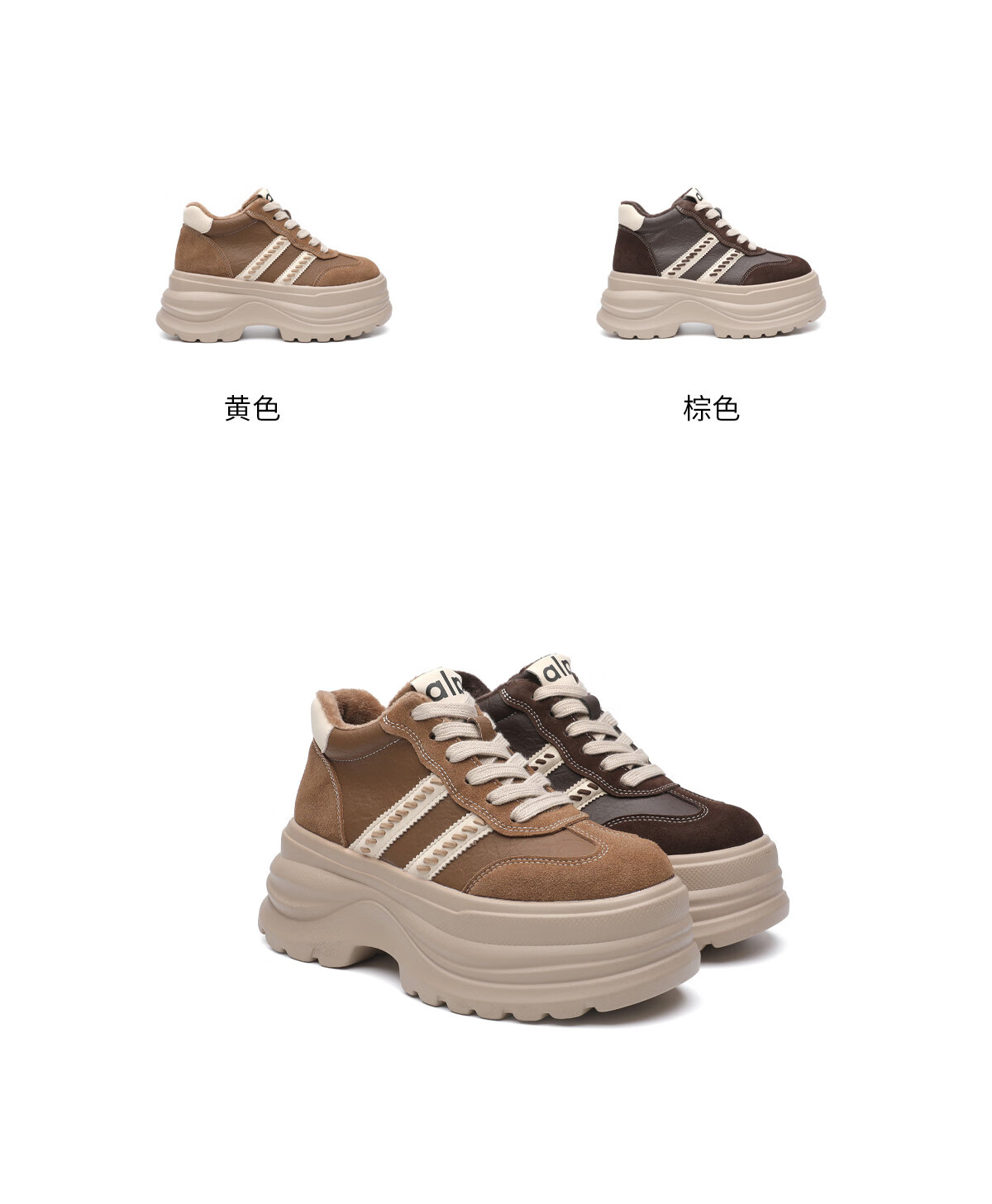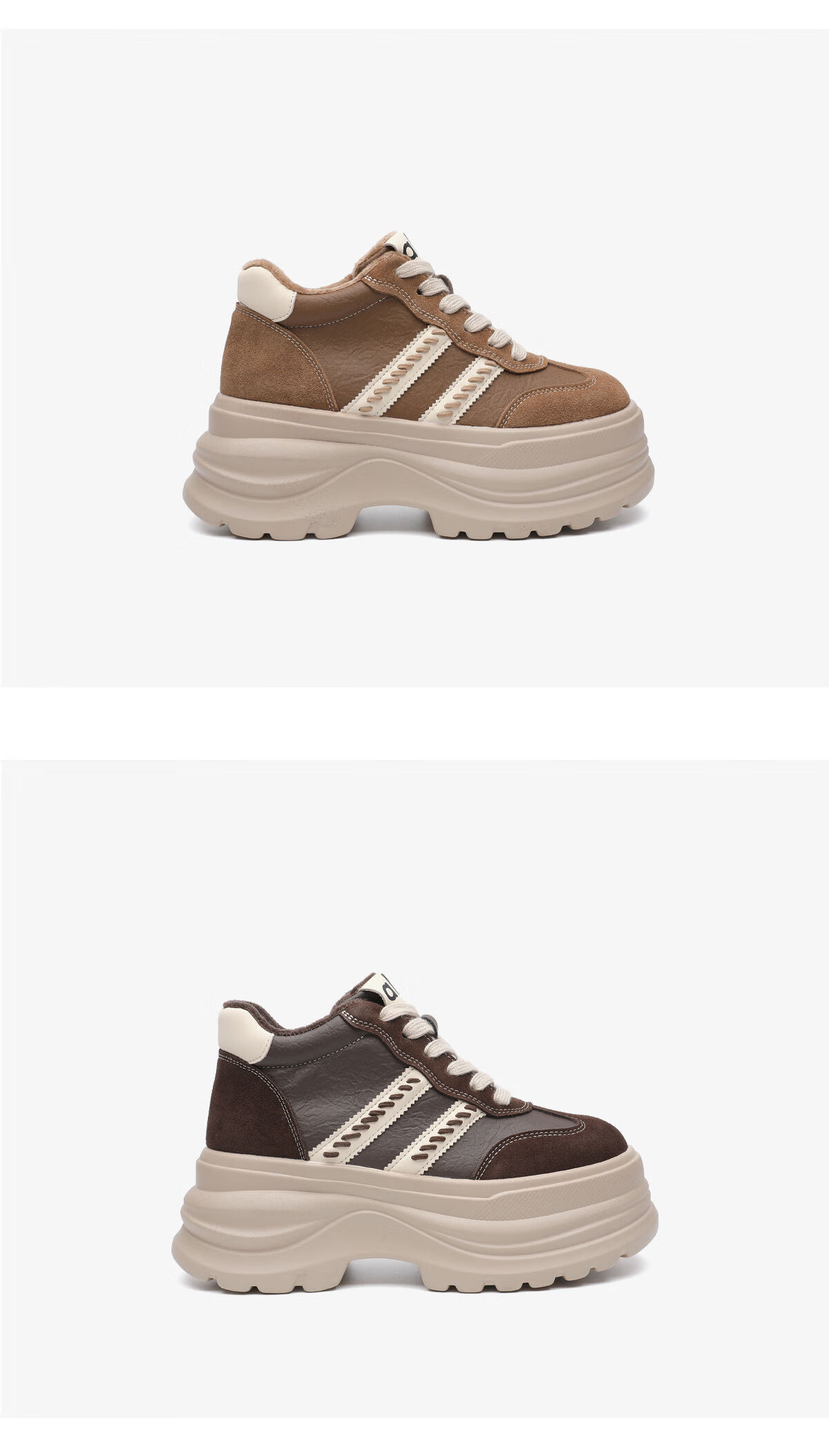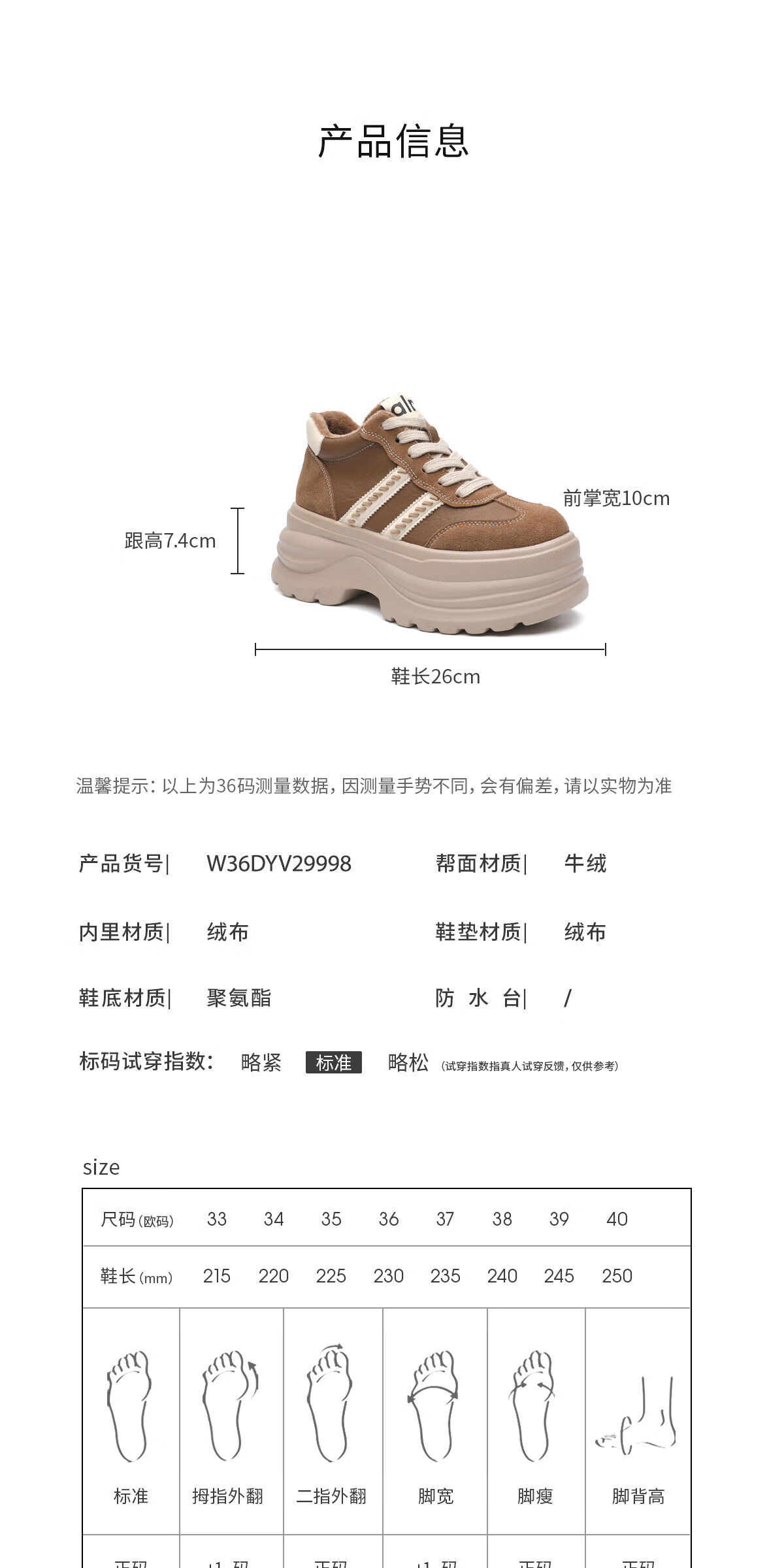 月芽儿2025冬季复古德训鞋女增高休闲鞋百搭显脚小软底运动鞋 绒里棕色03T 34