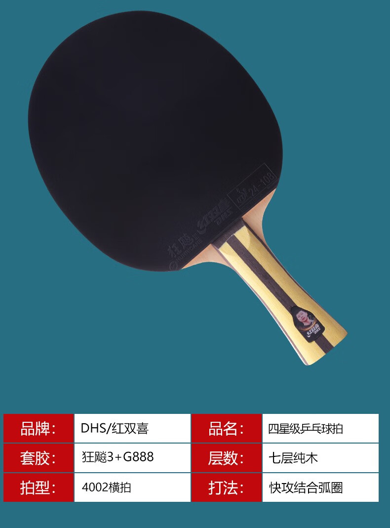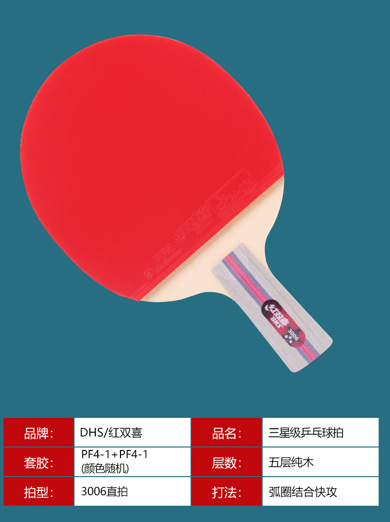 红双喜三星级乒乓球拍专业级狂飙3成品拍单拍直拍横拍兵兵乓球拍初学者 3星 横拍1只 【进阶型】热卖