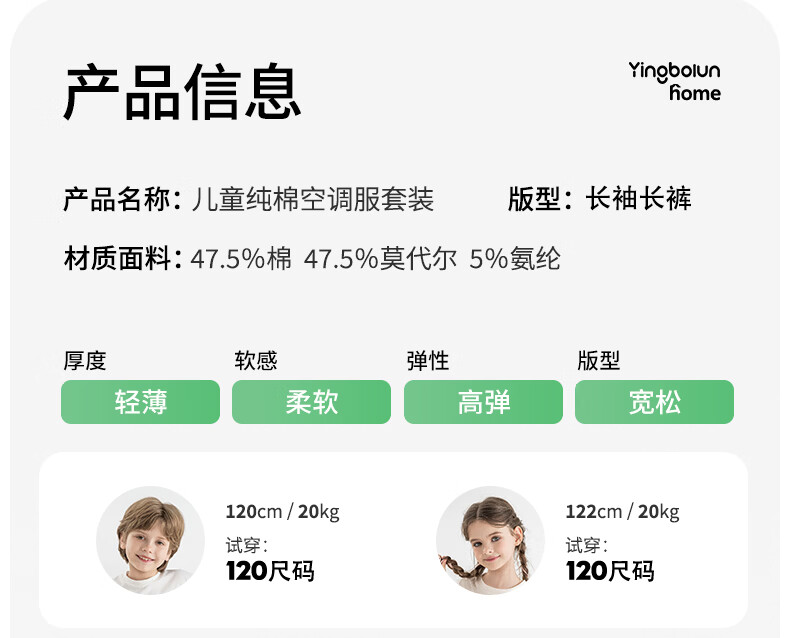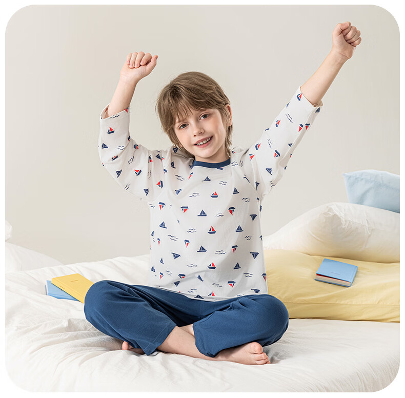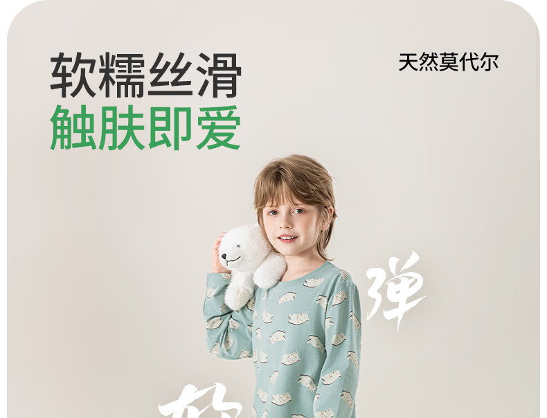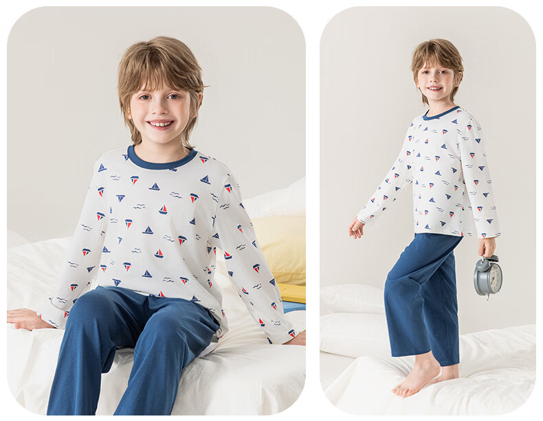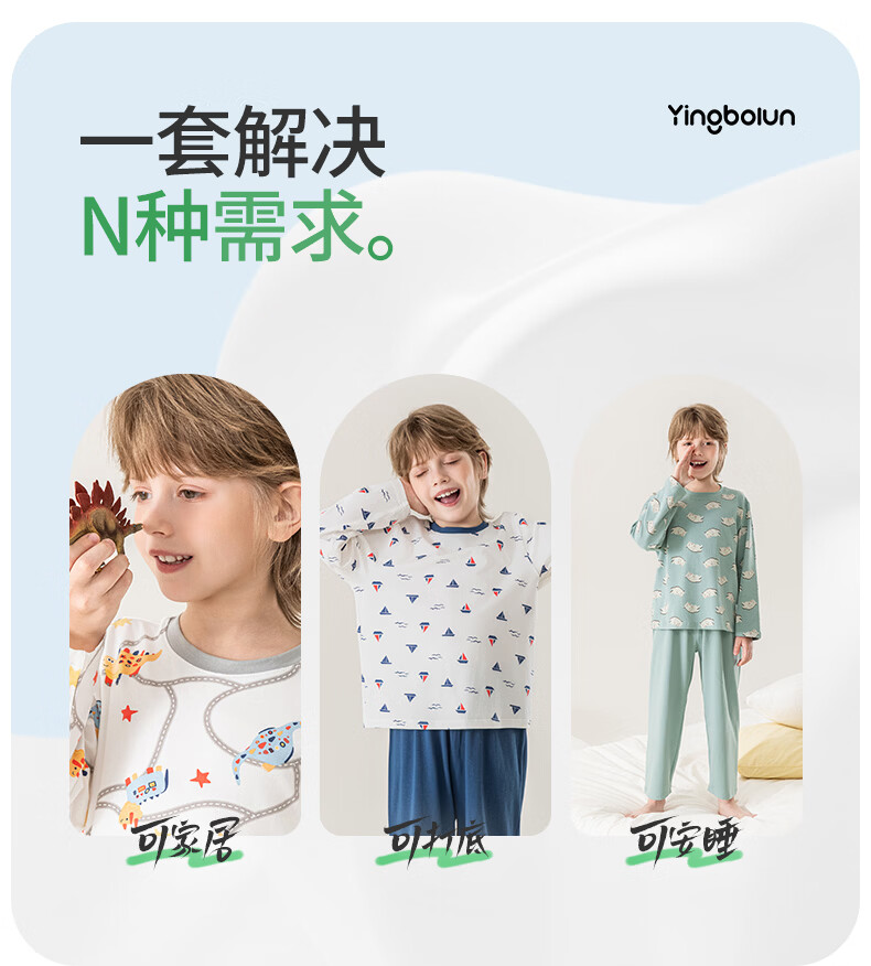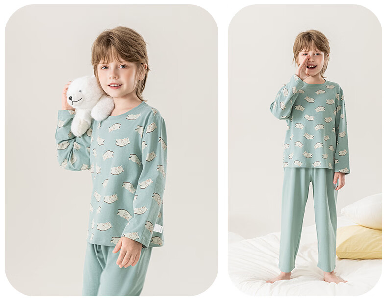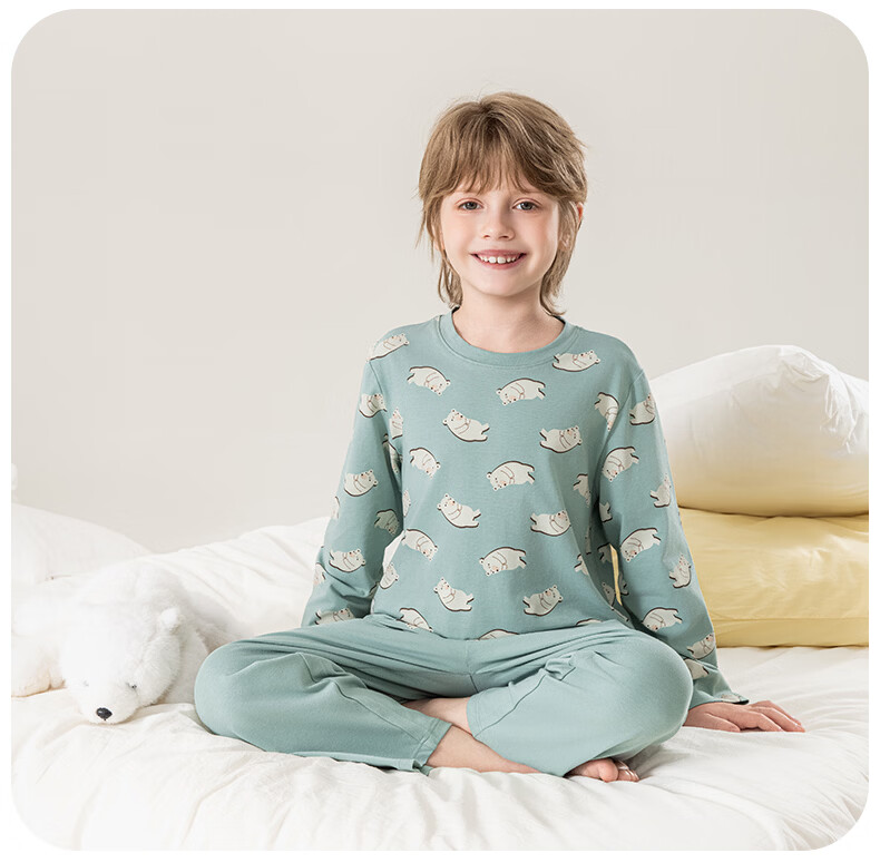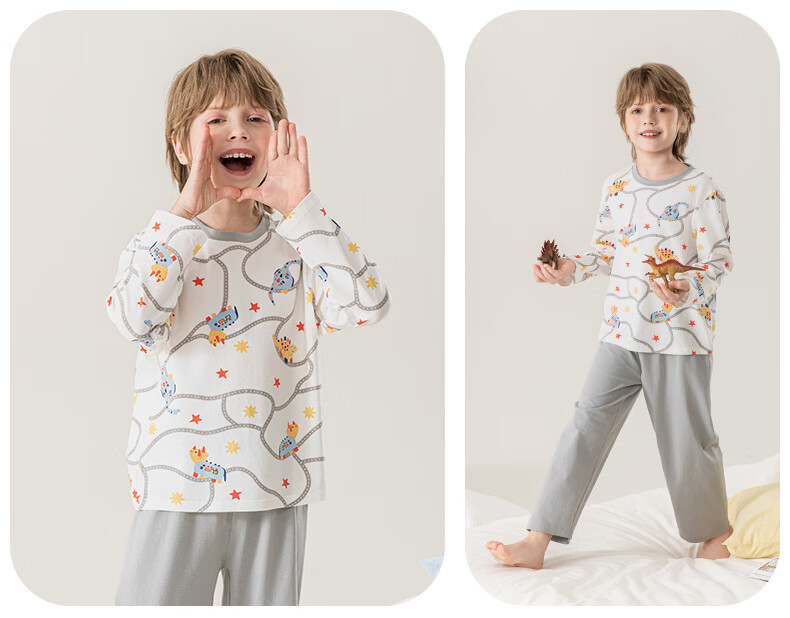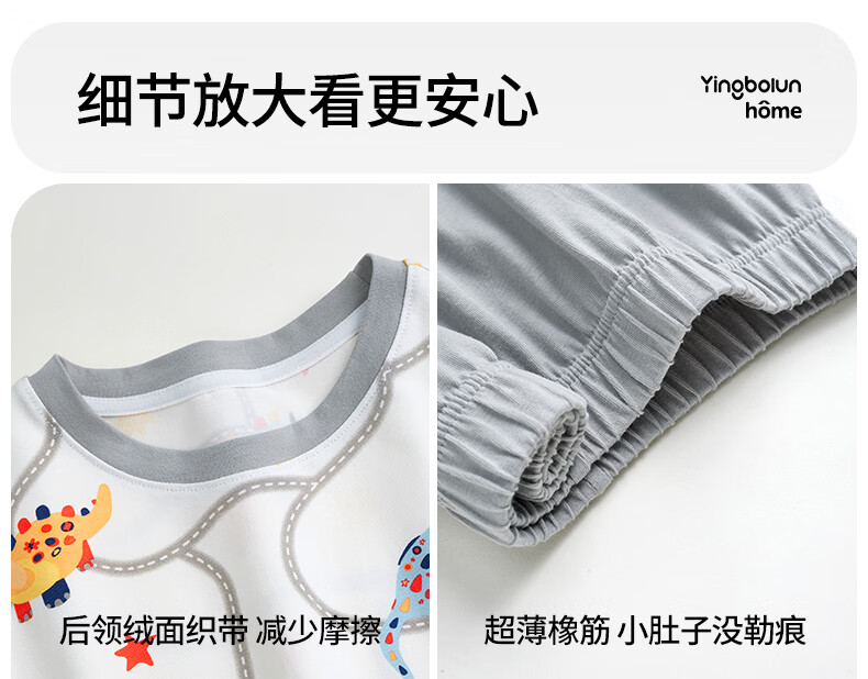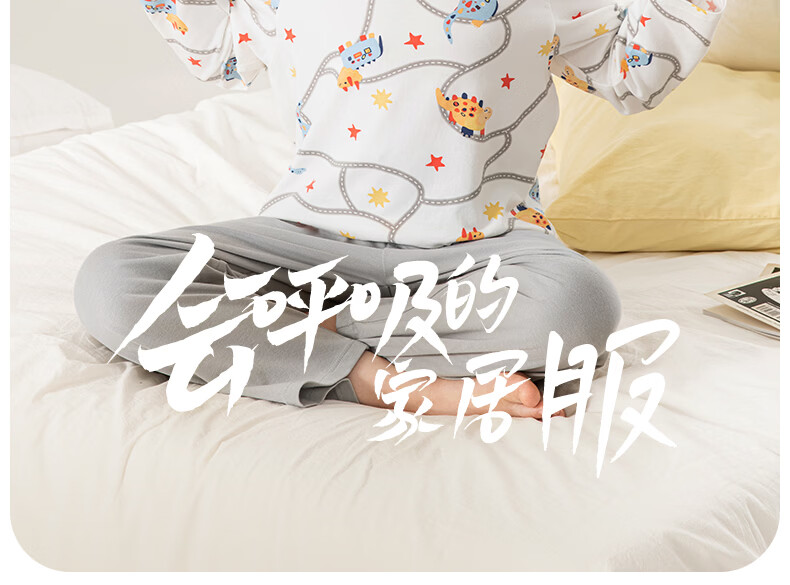 英博伦男童睡衣儿童莫代尔家居服套装长袖长裤春夏新款男孩中大童 60619浅灰 110