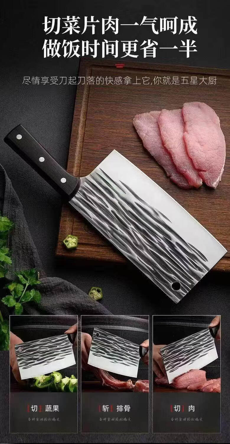 2026新款锻打菜刀不锈钢厨师专用刀斩切两用刀家用砍切菜刀切片刀 【加厚款】锻打斩切两用刀