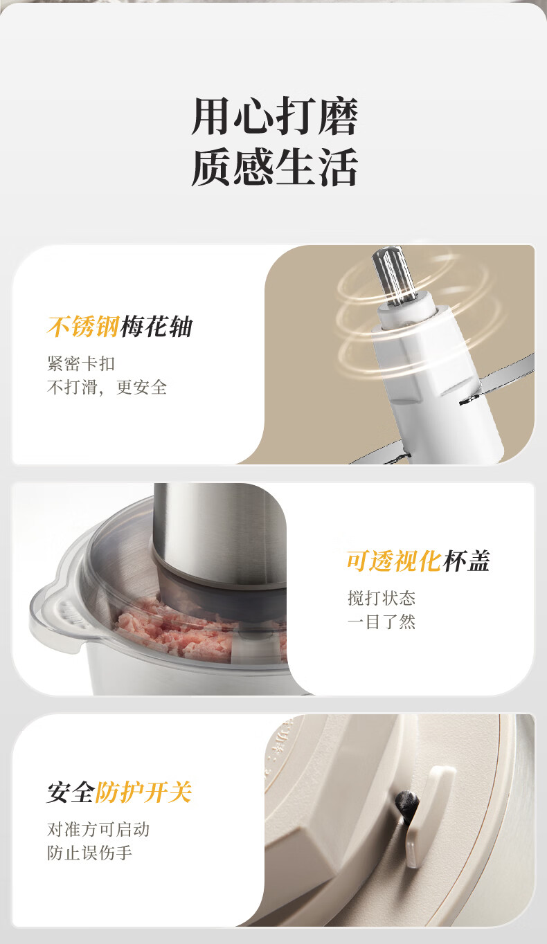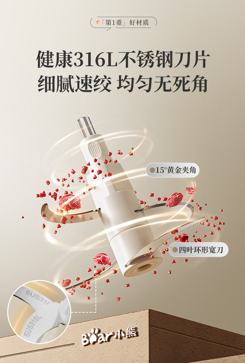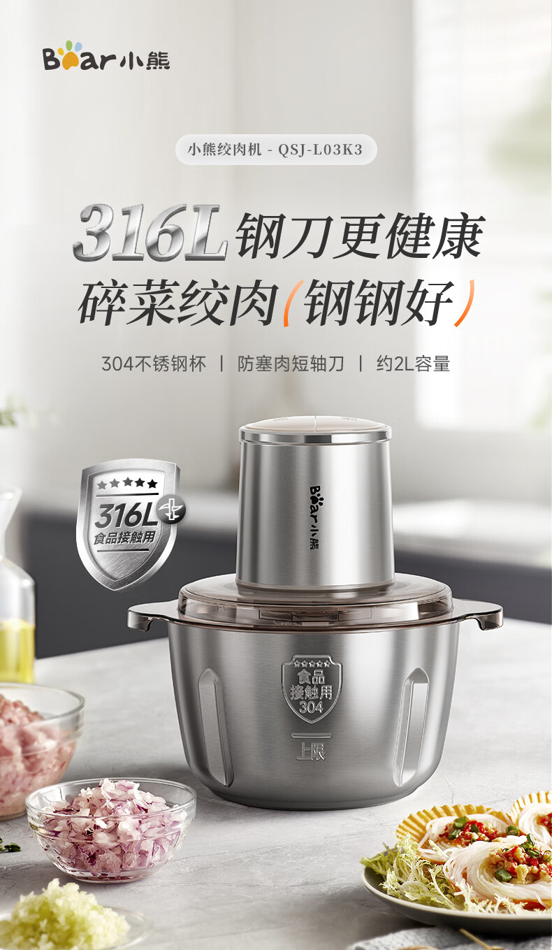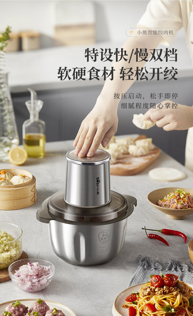 小熊(Bear)绞肉机家用不锈钢 绞馅碎肉机 家庭绞肉绞菜多功能一体机 家用自动打肉 2025新款双刀QSJ-L03K3