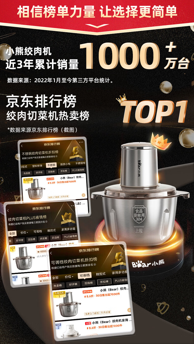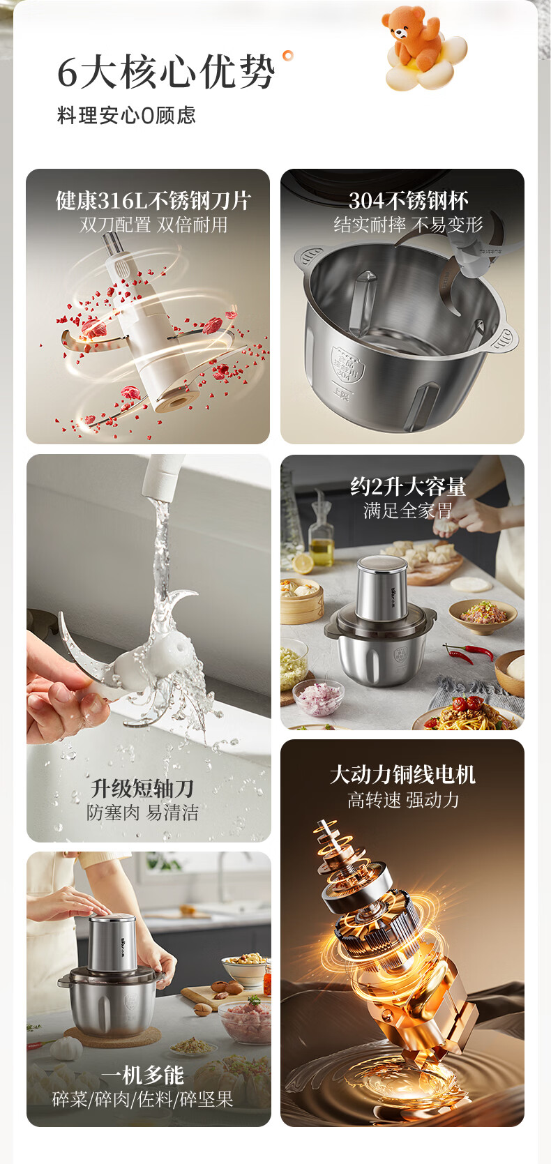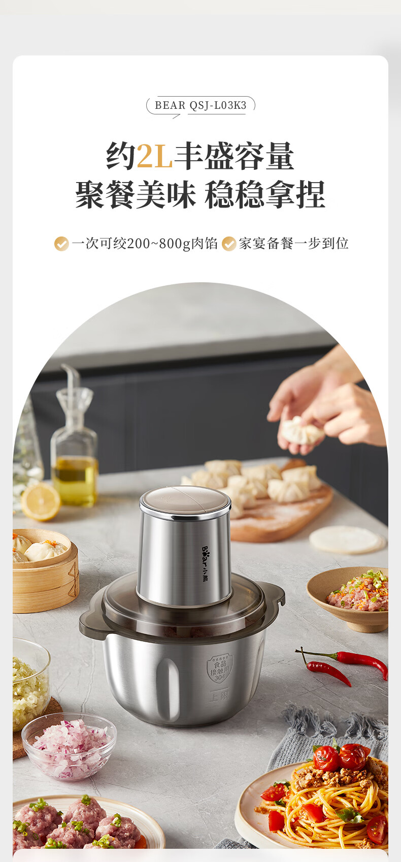 小熊(Bear)绞肉机家用不锈钢 绞馅碎肉机 家庭绞肉绞菜多功能一体机 家用自动打肉 2025新款双刀QSJ-L03K3