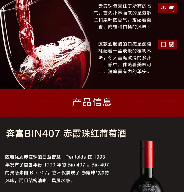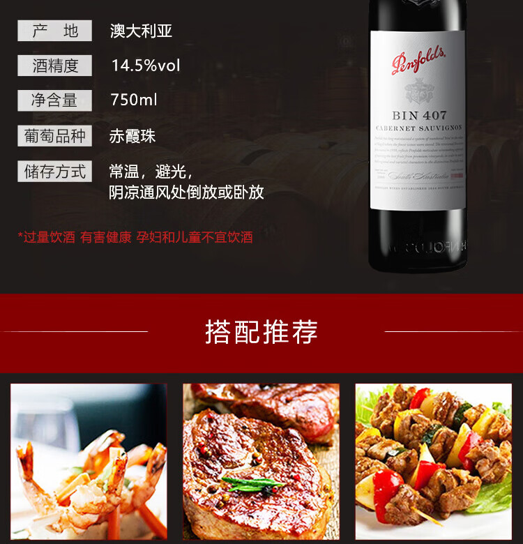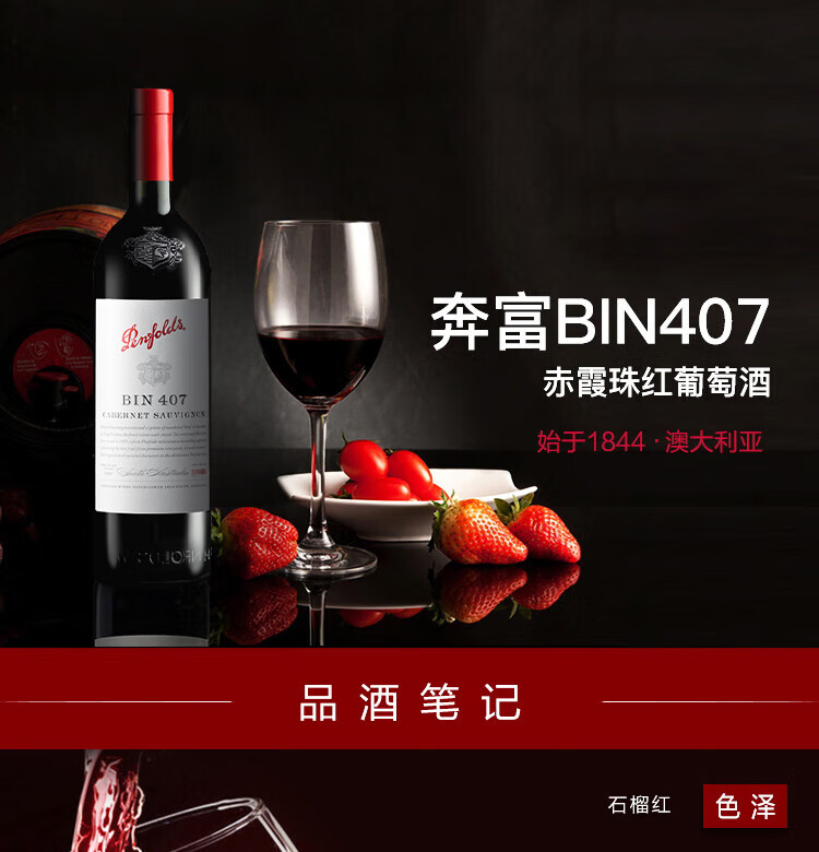 奔富(Penfolds)BIN407赤霞珠红葡萄酒750ml*6支装整箱 原瓶木塞进口【澳版】