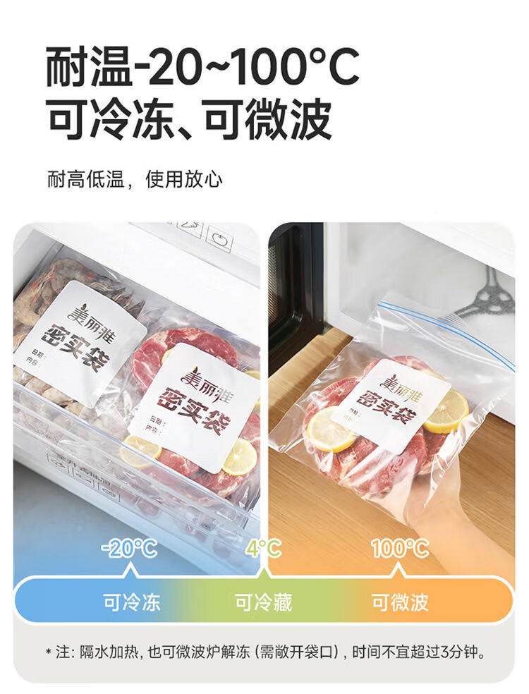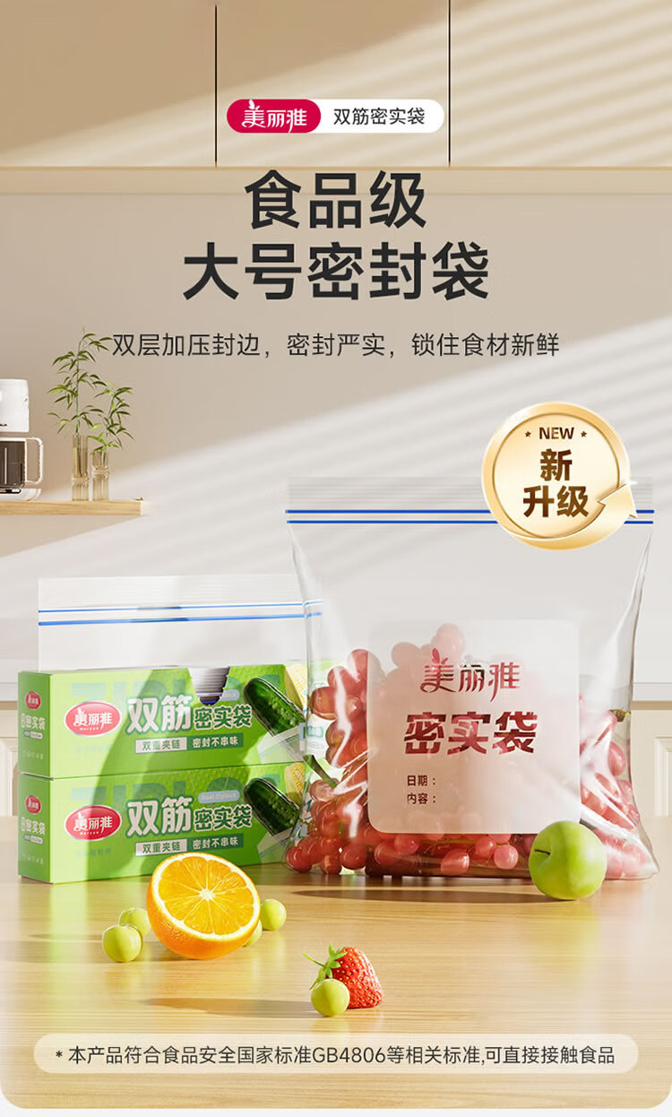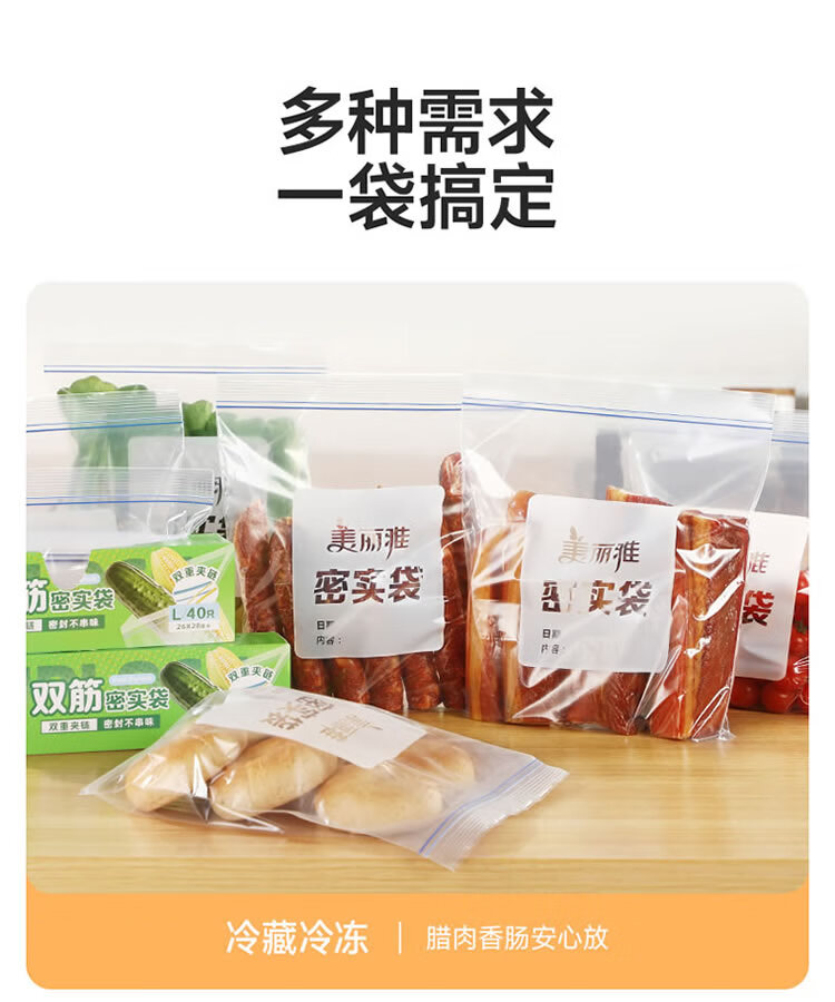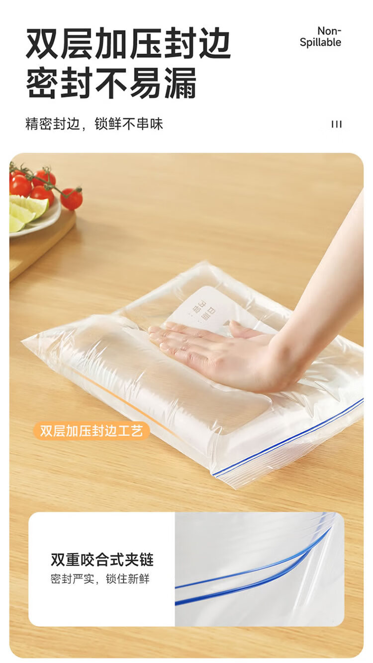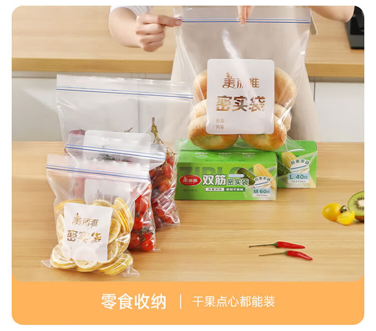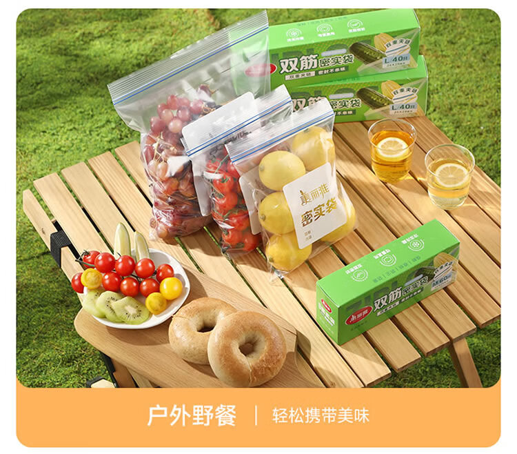 美丽雅密封袋食品级保鲜袋大号40只 加厚冰箱分装收纳密实自封袋