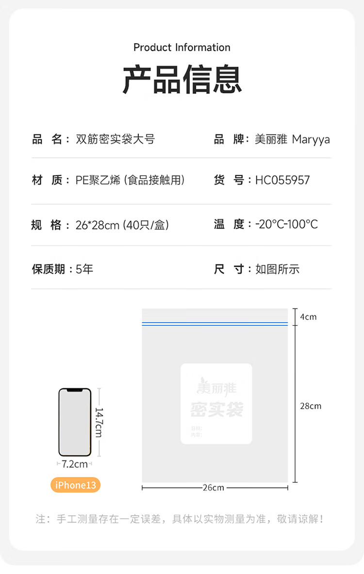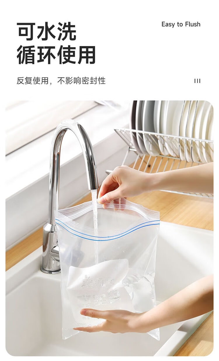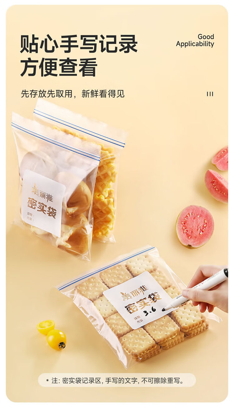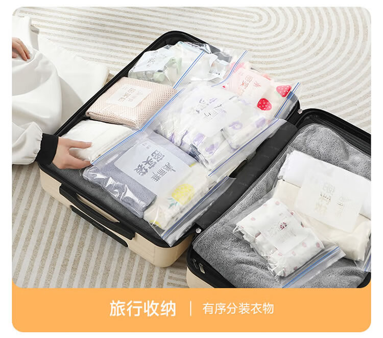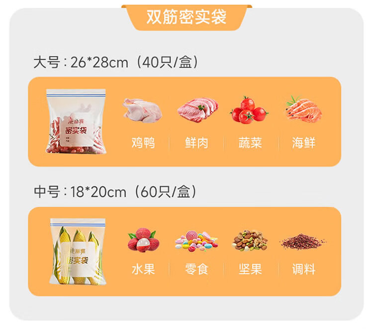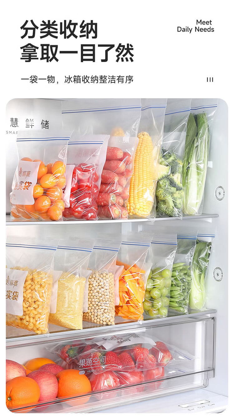 美丽雅密封袋食品级保鲜袋大号40只 加厚冰箱分装收纳密实自封袋