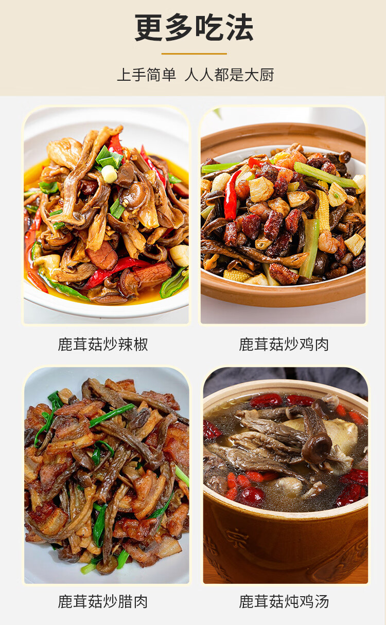 金唐鹿茸菇200g 原色无硫山珍菌菇干货 炒菜煲汤火锅年货食材