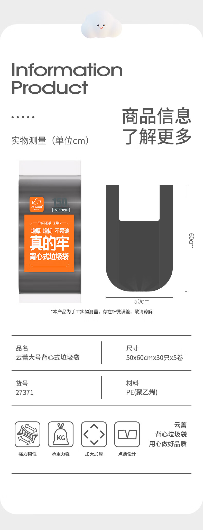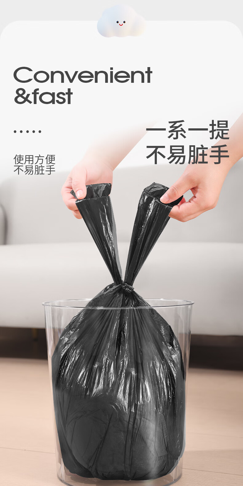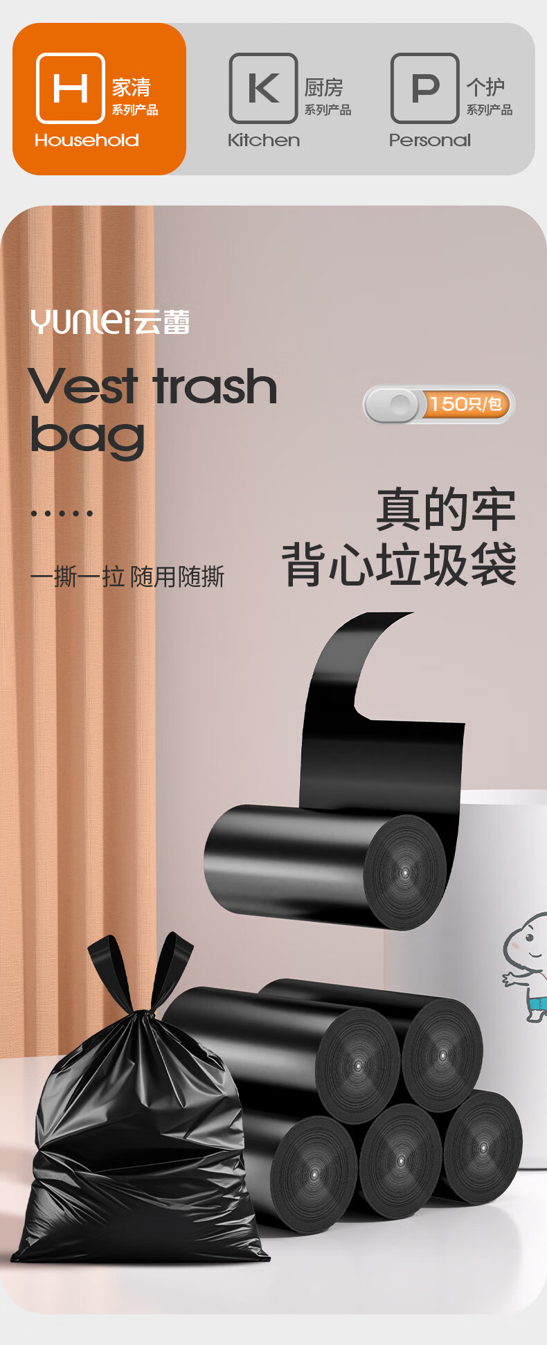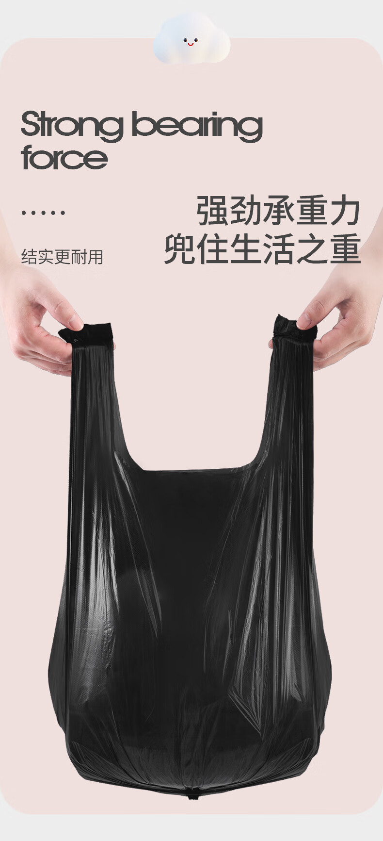 云蕾背心垃圾袋黑色50*60cm150只装单面1丝家用厨房清洁袋方便收纳袋