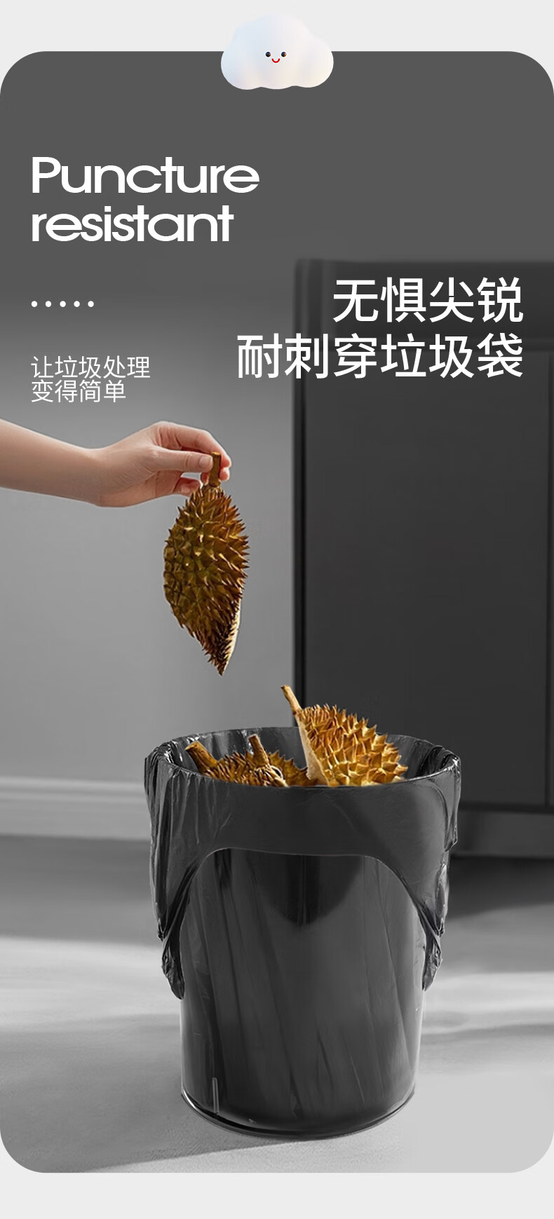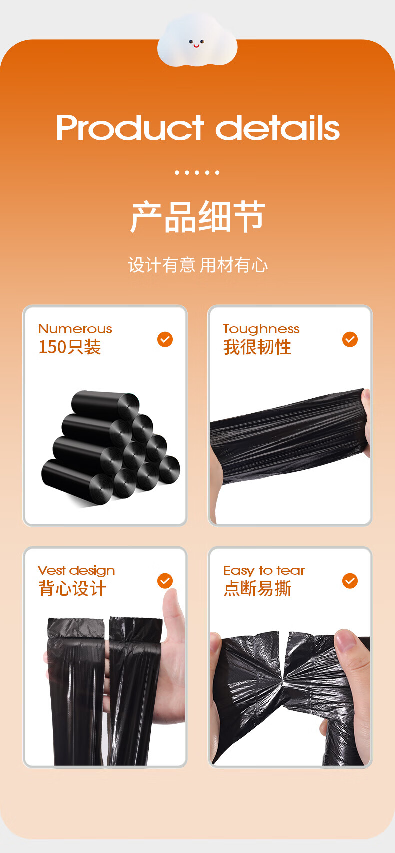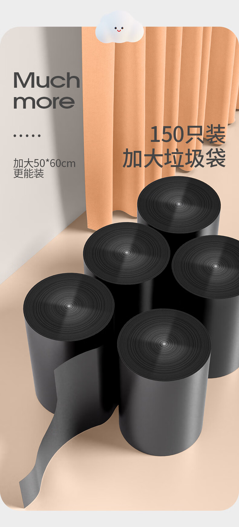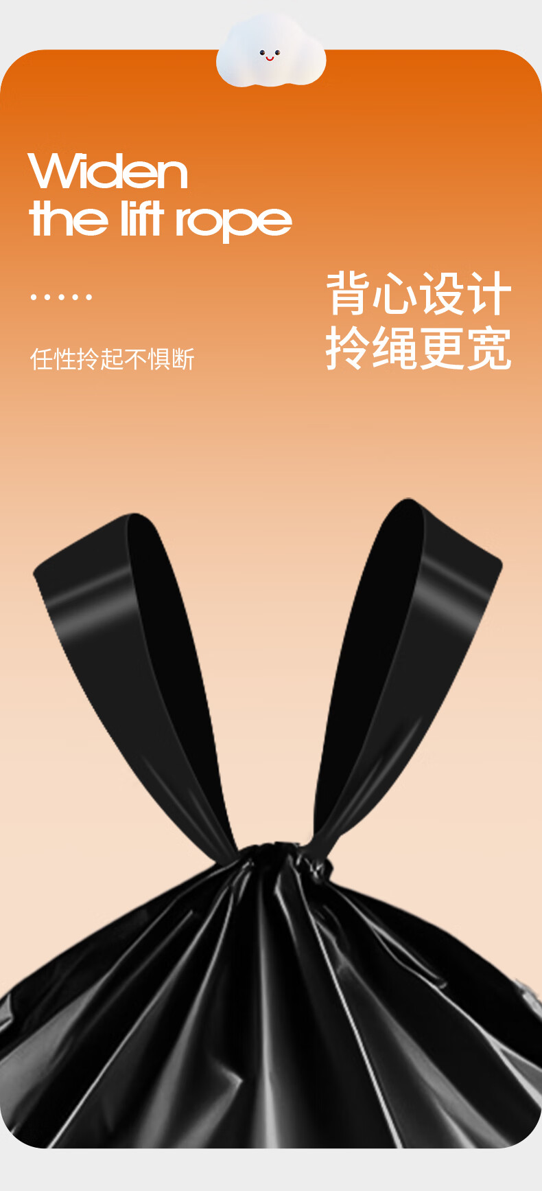 云蕾背心垃圾袋黑色50*60cm150只装单面1丝家用厨房清洁袋方便收纳袋