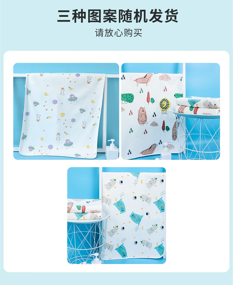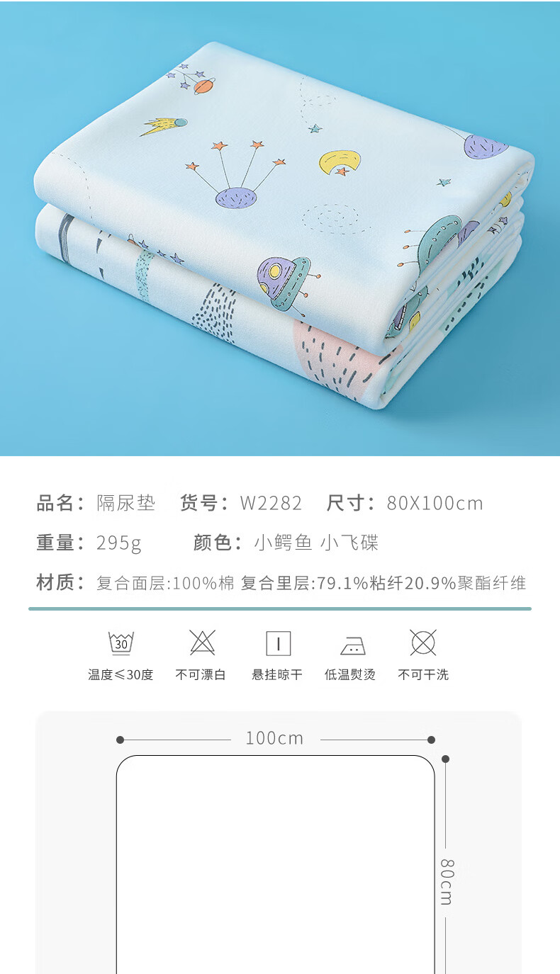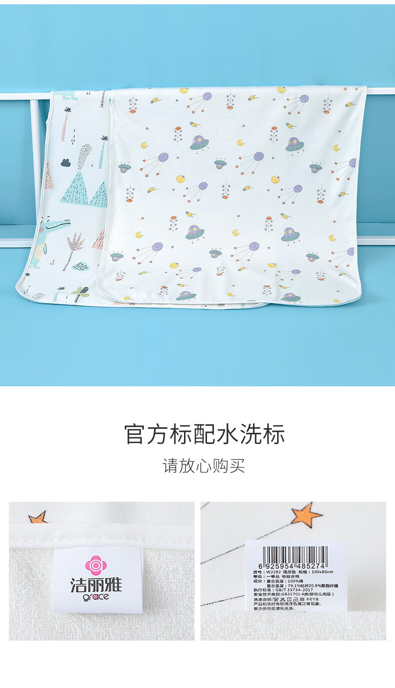 洁丽雅婴儿隔尿垫大号防水可洗姨妈经期纯棉大床单卡通飞碟100*80cm
