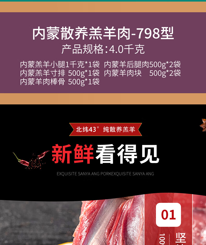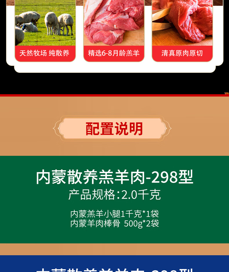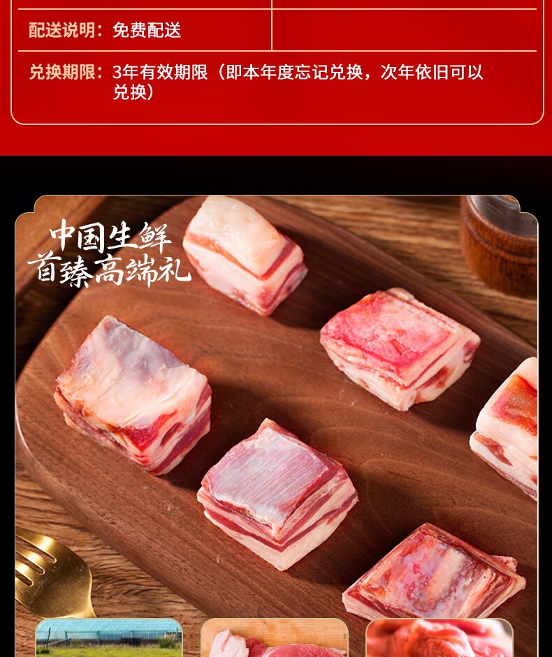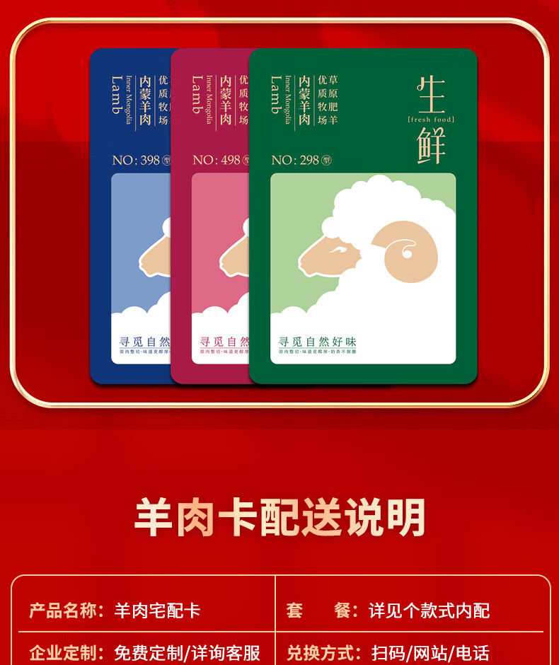 五色养春节年货内蒙散养生鲜羔羊肉礼品卡提货券 羔羊礼盒298型2000g