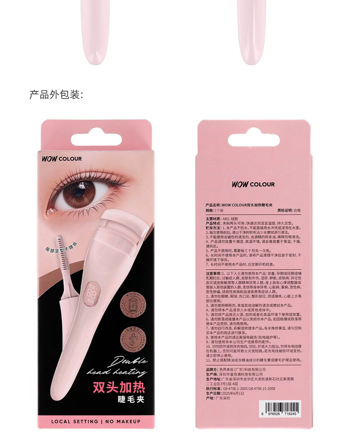 WOWCOLOUR电烫睫毛夹卷翘器 眼睫毛加热烫卷器电动发热 睫毛定型 【妆前妆后】双头加热睫毛夹 1件