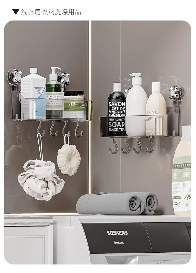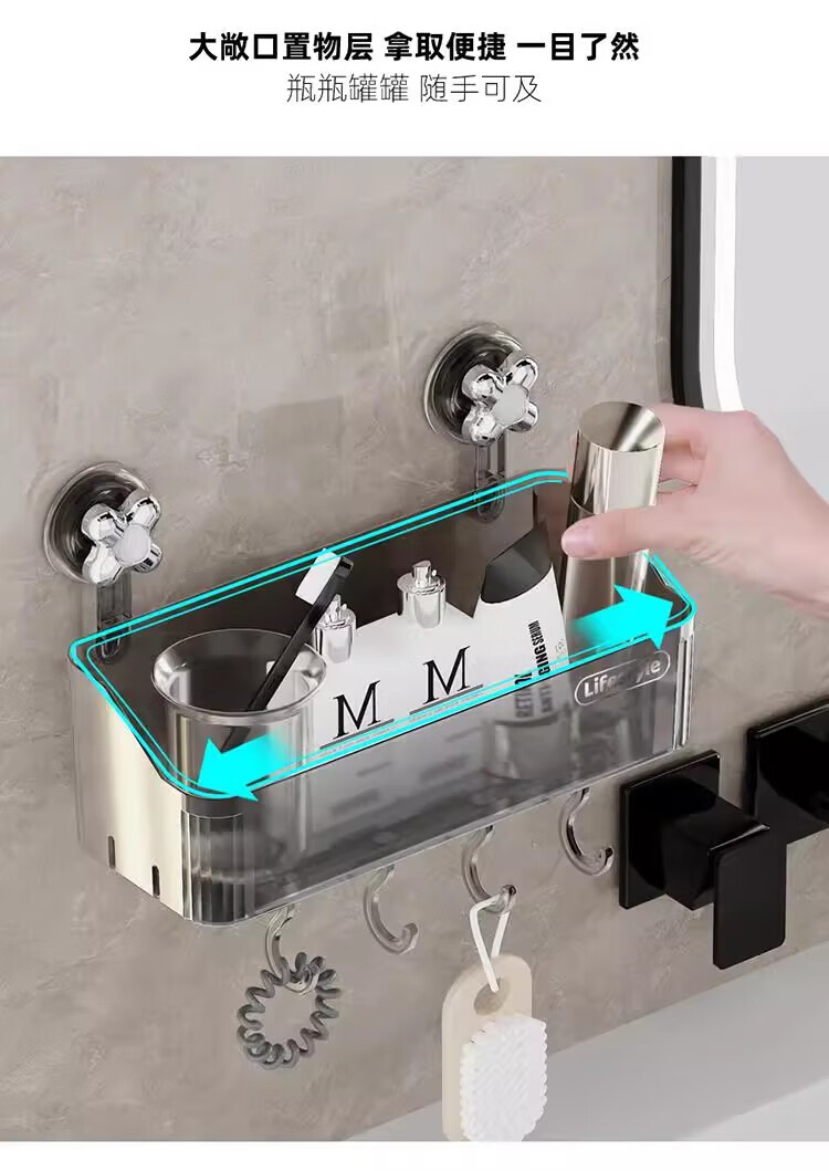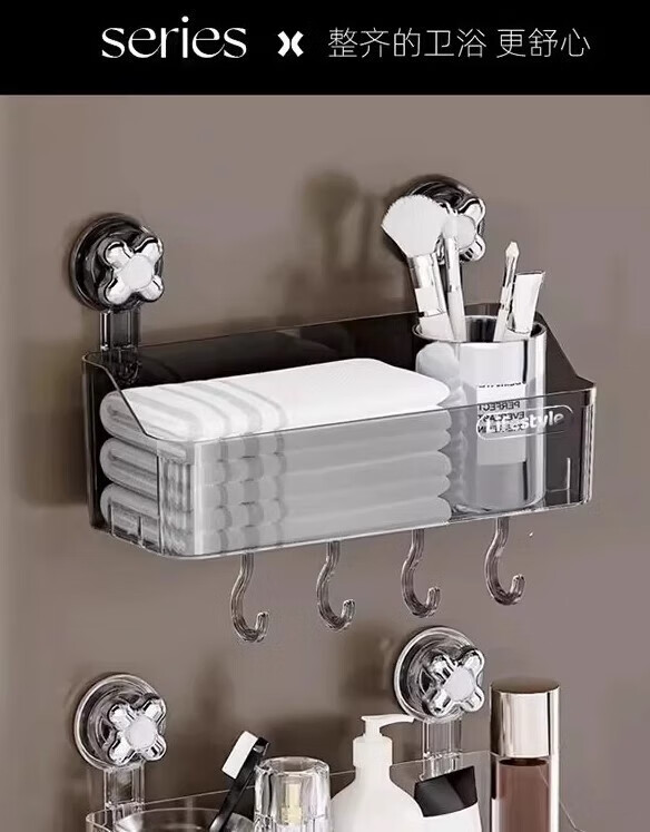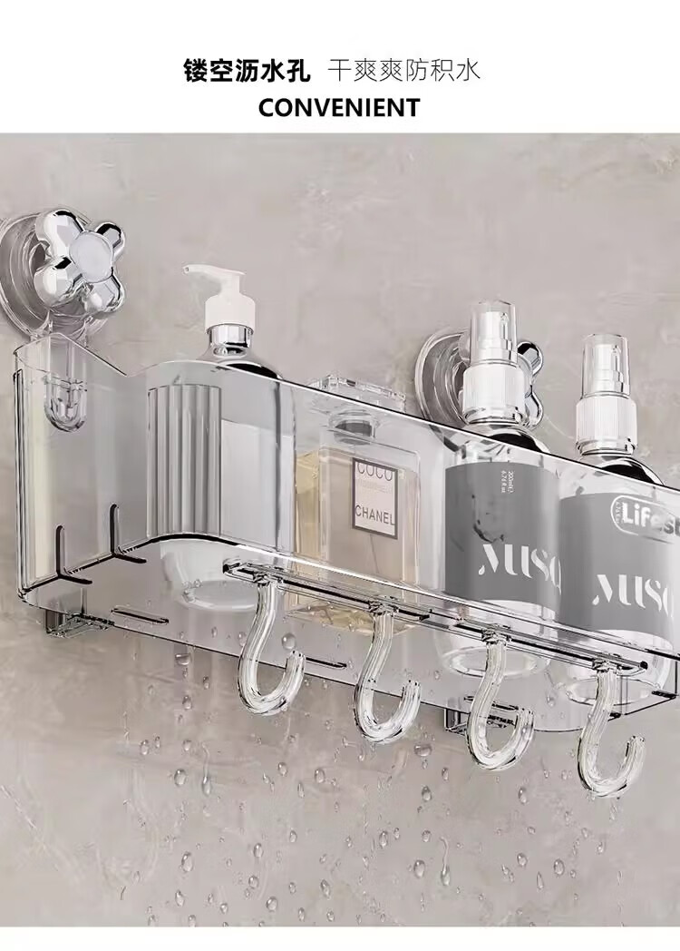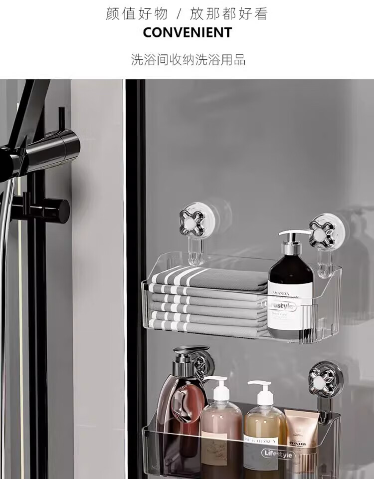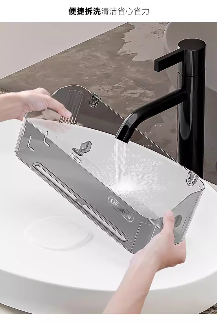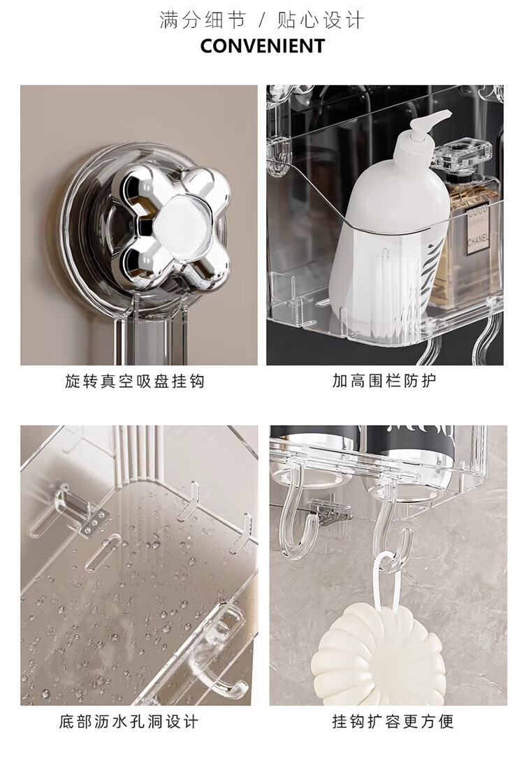 木格格卫生间浴室置物架 吸盘置物架卫生间浴室厨房免打孔洗漱台收纳盒 透明白