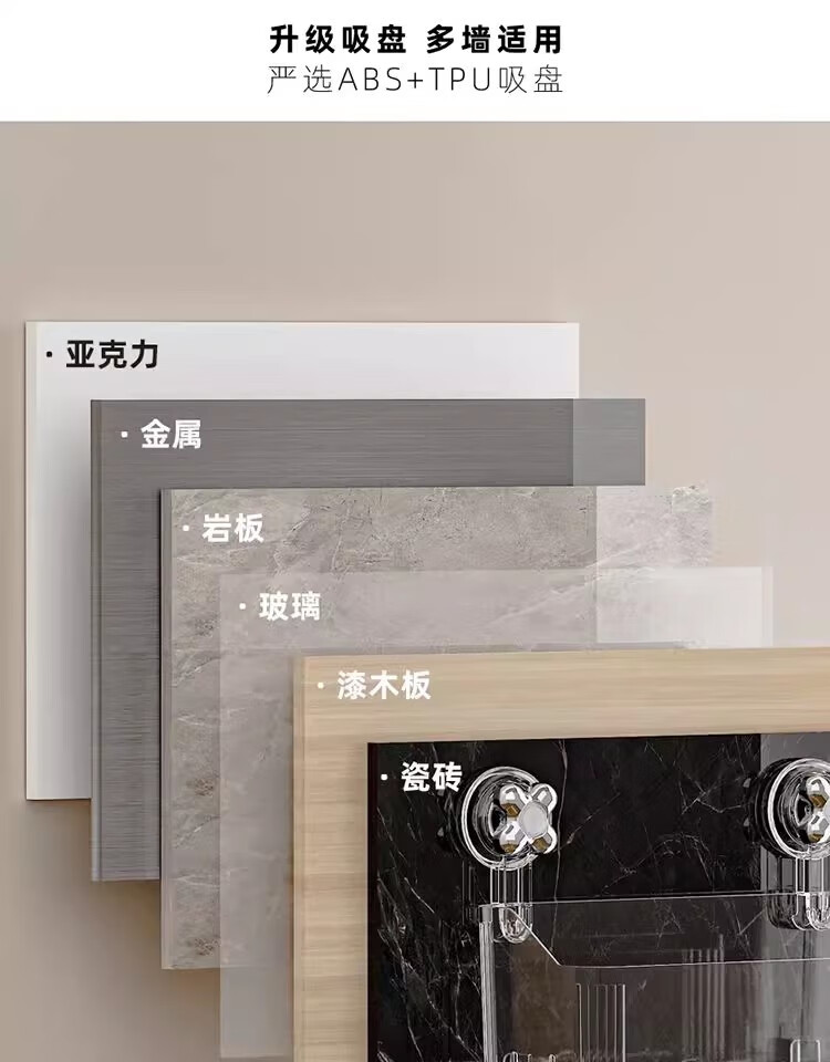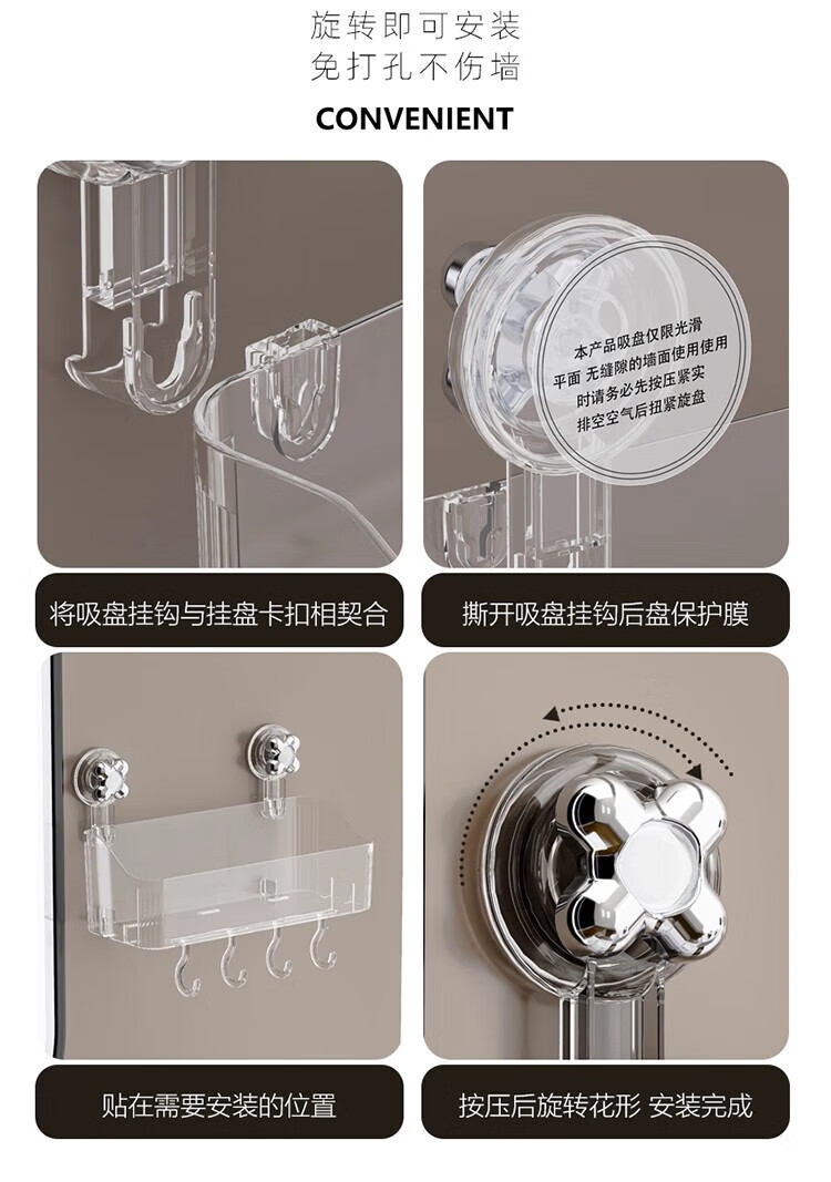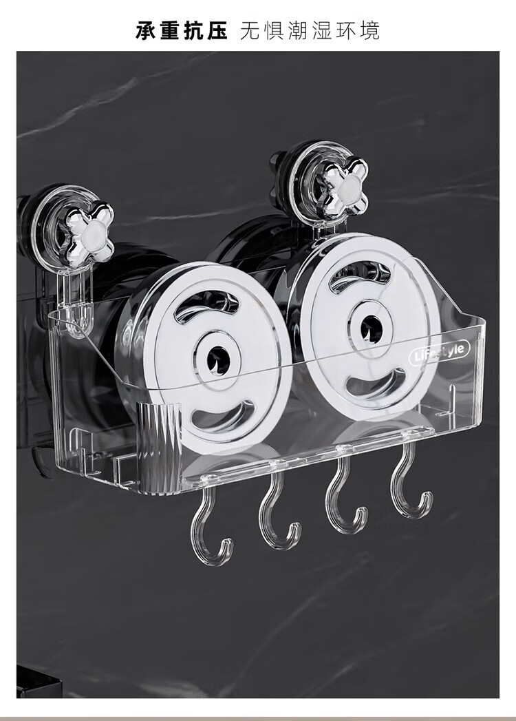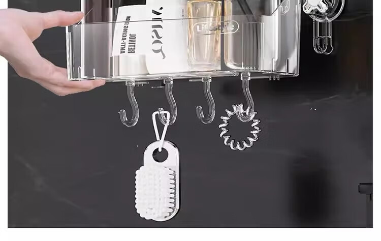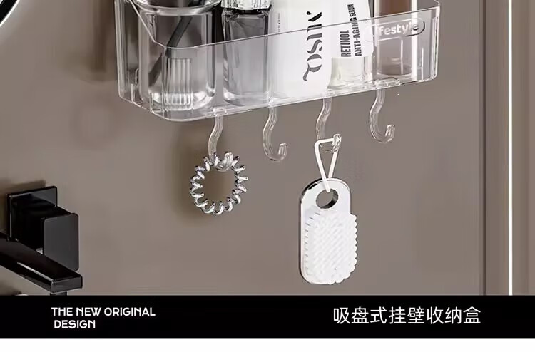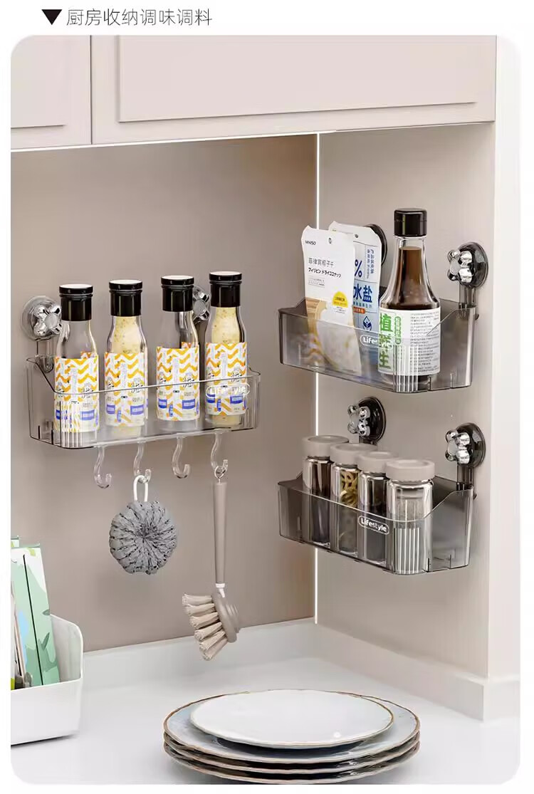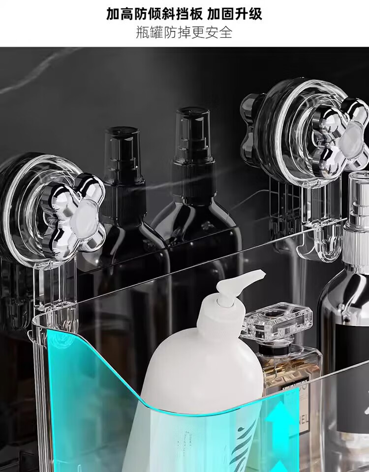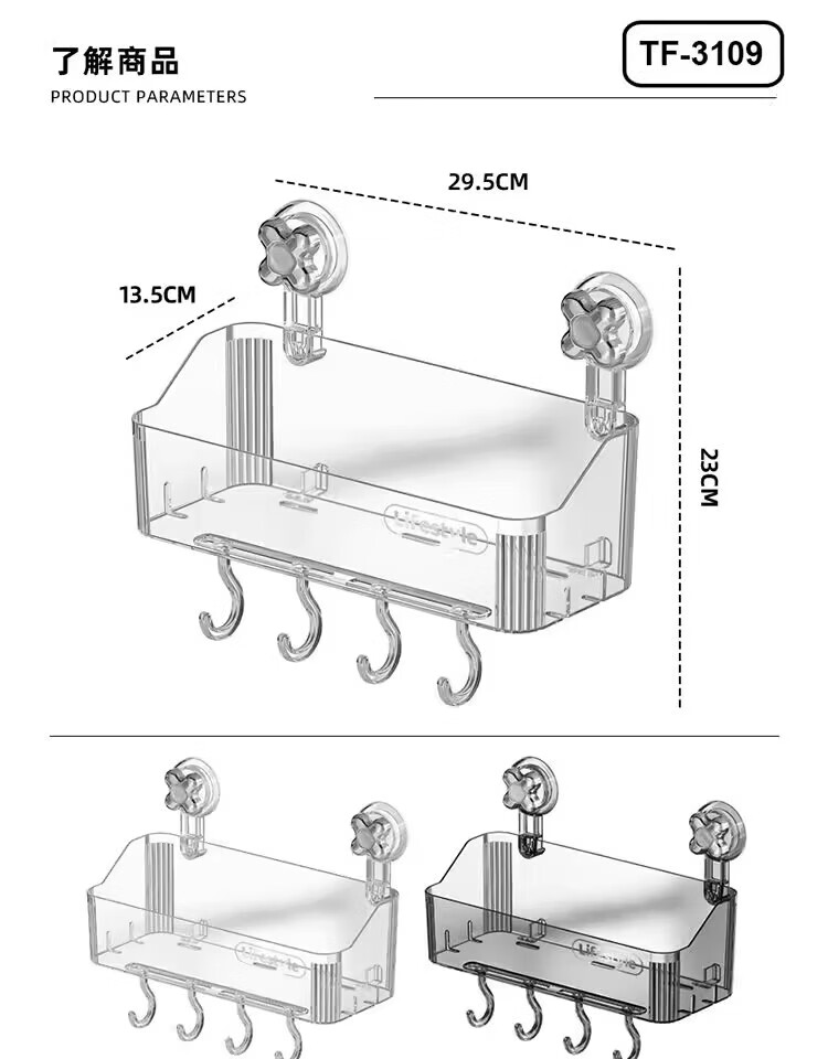 木格格卫生间浴室置物架 吸盘置物架卫生间浴室厨房免打孔洗漱台收纳盒 透明白