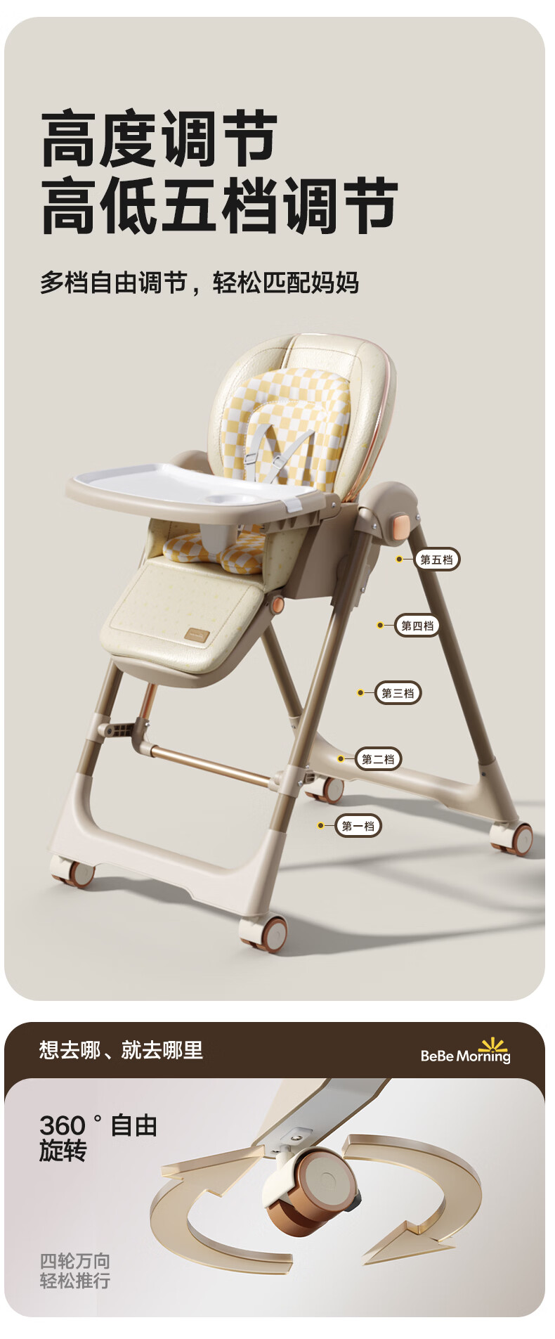 小主早安(BeBeMorning)宝宝餐椅婴儿吃饭椅子可坐躺折叠餐桌椅家用轻便椅子