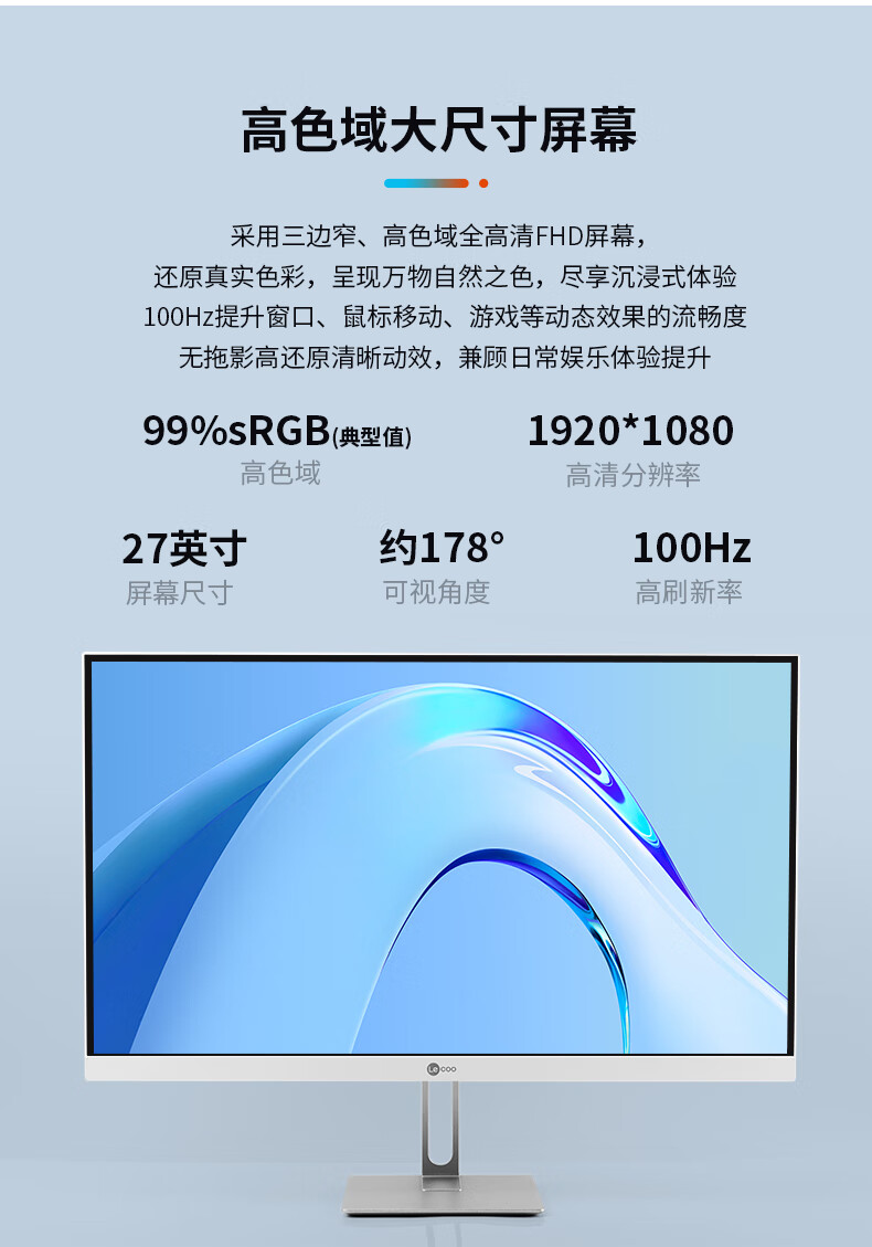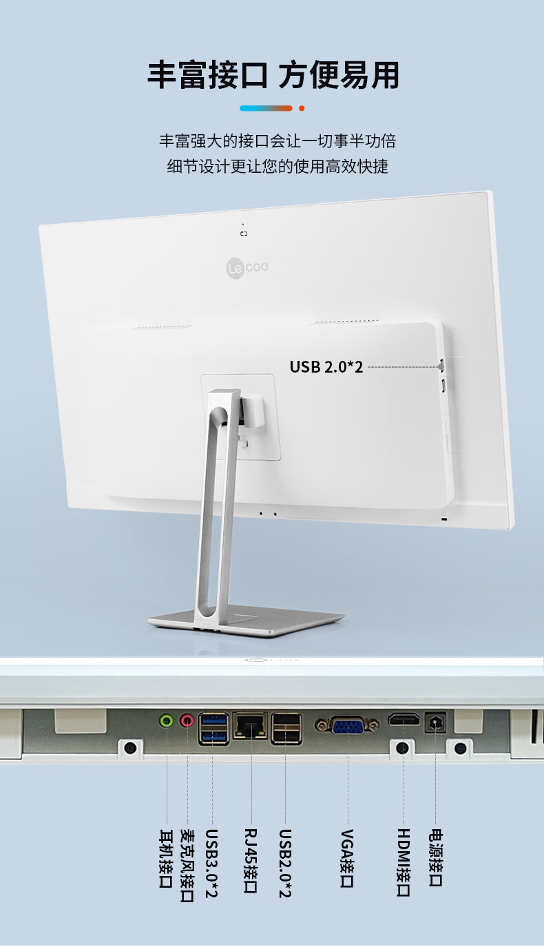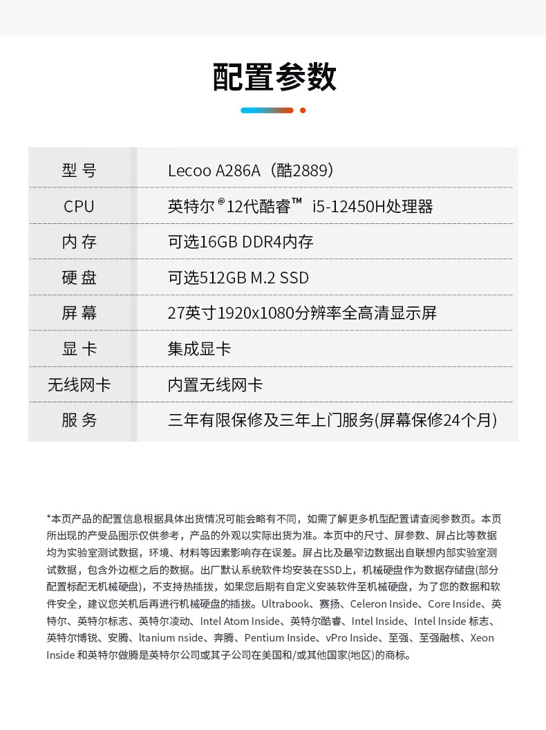 来酷(Lecoo)Lecoo联想国家补贴一体台式机电脑27英寸(酷睿12代i5-12450H 16G 512G WIFI 无线键鼠 )白