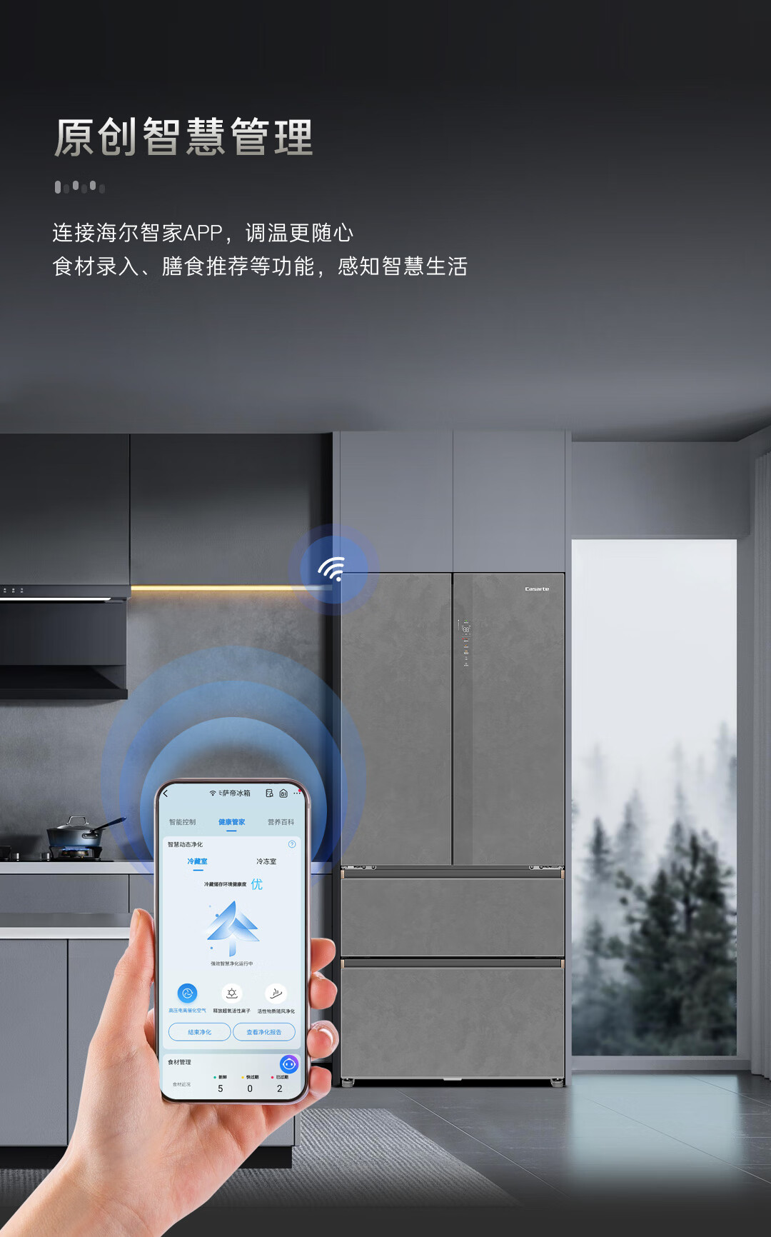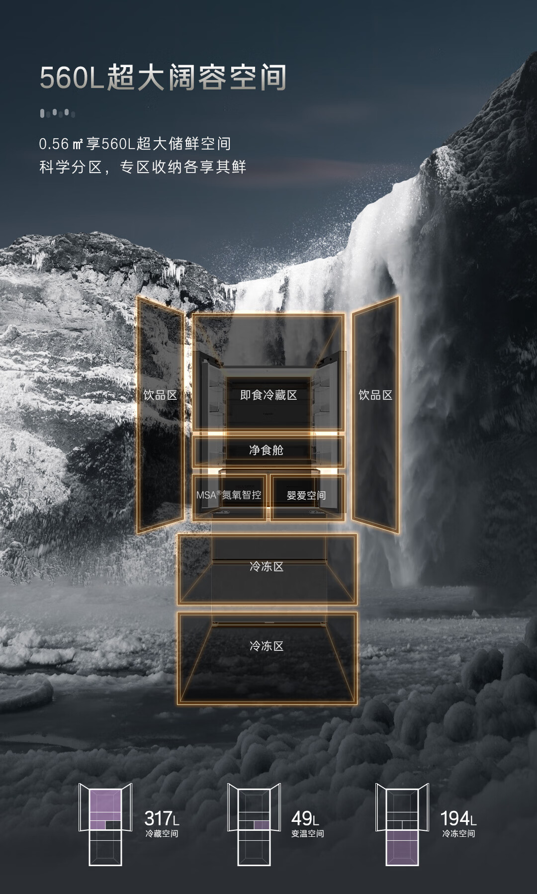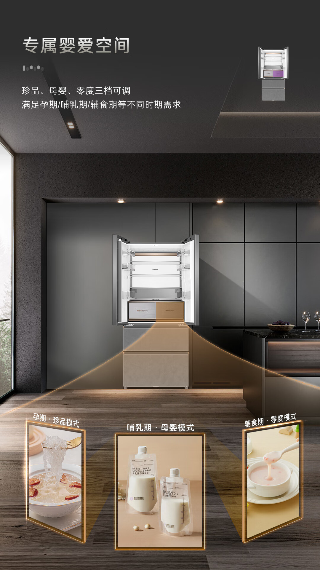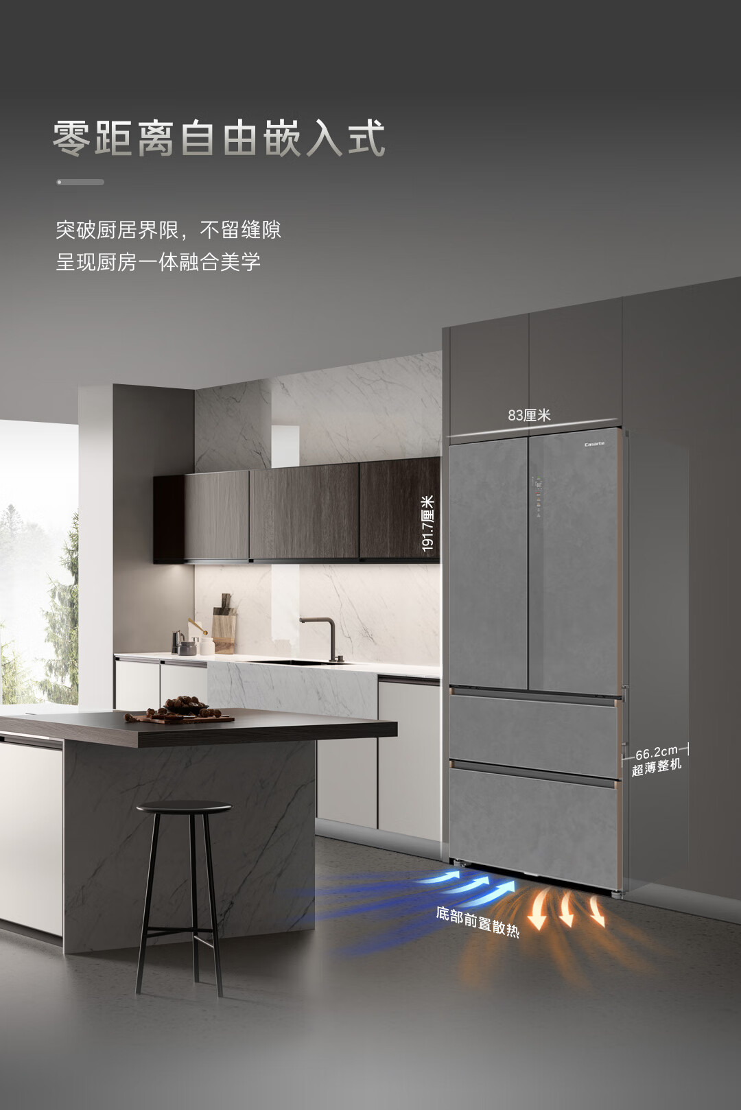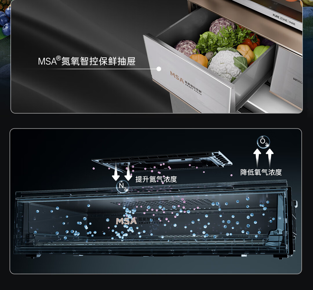卡萨帝(Casarte)原石560L法式多门冰箱MSA氮氧智控保鲜一级能效双系统主动除菌 BCD-560WGCFDA4GUU1国家补贴