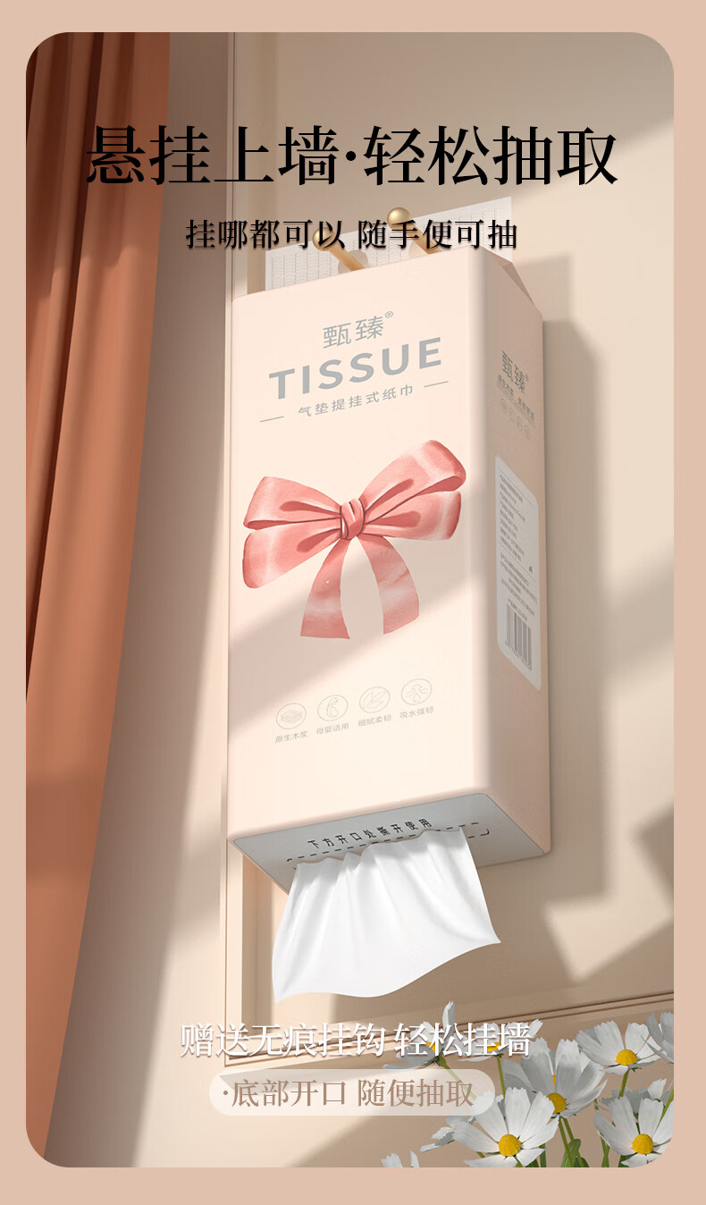 天微【甄选直发】12提悬挂式抽纸家用卫生纸木浆纸抽底部抽取式纸巾厕 2层 250抽*1提