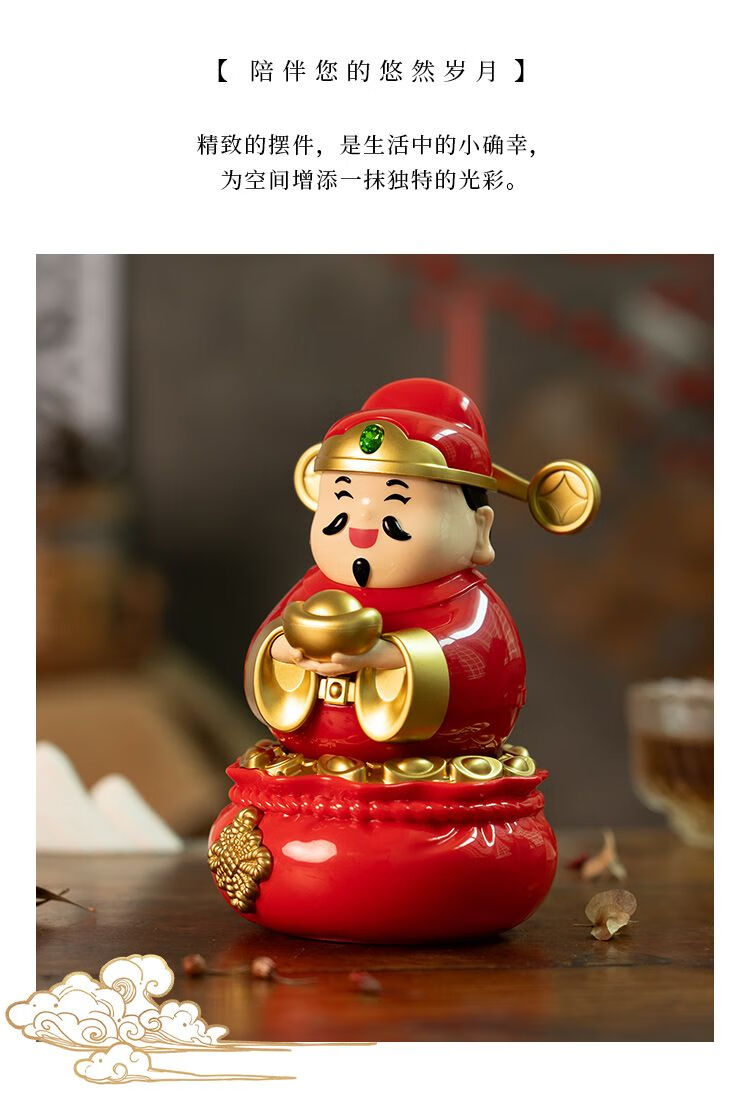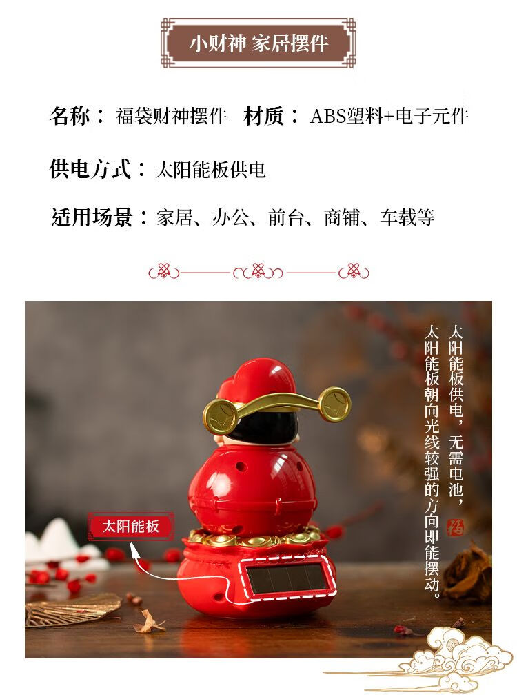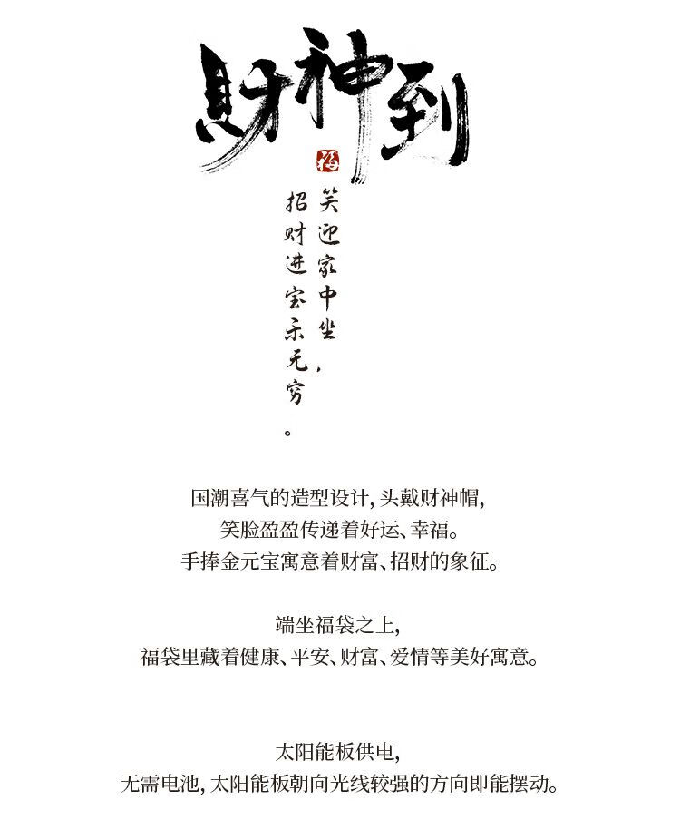 云智星财神摆件2026新款摇摆财神爷太阳能驱动办公桌摆件招财手办摆件 财神摆件摆动 大号见光就动